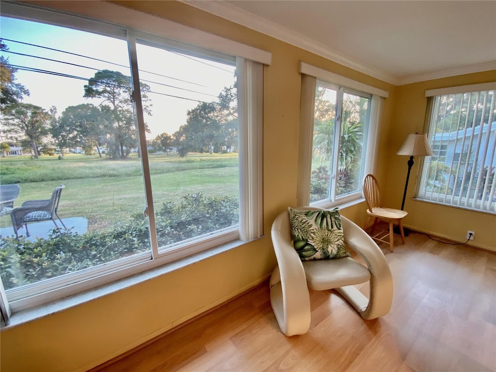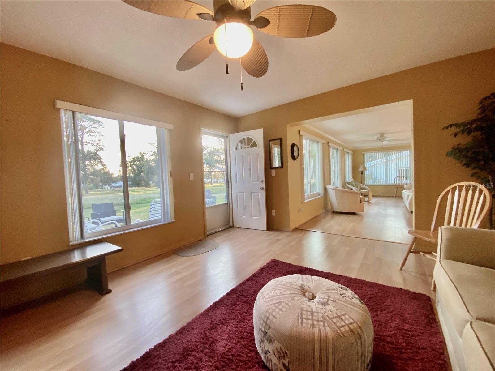 Discover EASY, LOW-MAINTENANCE LIVING in this delightful 2-bedroom, 2-bath home with a VERSATILE BONUS ROOM that could serve as a THIRD BEDROOM, office, or hobby space - this is a modified SKIPPER MODEL. LOCATION! Located DIRECTLY ACROSS FROM THE CLUBHOUSE, you'll have convenient access to the community activities, social events, shuffleboard, and the HEATED POOL. LOCATION, LOCATION - Enjoy PEACEFUL GREEN SPACE WITH NO REAR NEIGHBORS, offering a serene backyard retreat. The $263 a month HOA fee covers ROOF and HOUSE PAINTING every 9 years, along with WATER, SEWER, TRASH, and LAWN CARE, making homeownership truly HASSLE-FREE. This home features a RARE EAT-IN KITCHEN with lots of cabinets and counter space perfect for casual dining. Recent updates include a New electrical Panel, Dishwasher, and HVAC within the last 2 years. The Barrel Tile Roof, installed in 2010, has years of remaining life left. The One-car garage has an attic spacious enough to stand up, providing excellent storage options along with the built-in cabinets. The FURNITURE IS OPTIONAL, allowing for a Move-in-ready experience or a space to make your own. LOCATED just minutes from the beaches, yet NO FLOOD INSURANCE IS REQUIRED. LOCATED in an extremely Active 55 community makes this an ideal opportunity for your primary residence or your lock-and-go second home. Probate is now completed, and it's ready for its new owner.