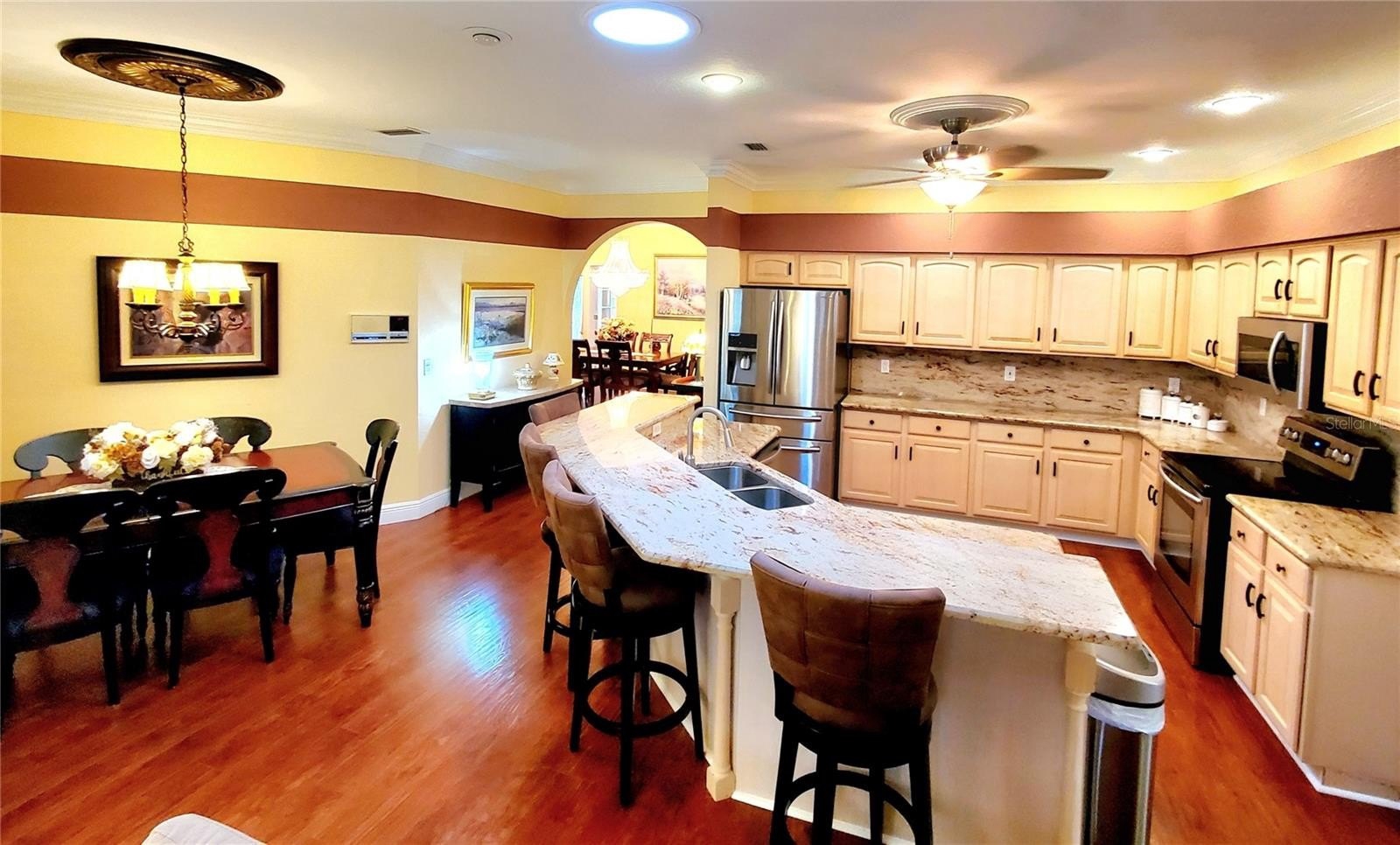**LARGE TRINITY HOME!** Searching for a spacious house at an affordable price? Here it is! Never be left in the dark again, fully functioning gas generator! Welcoming covered front entry! This home features a traditional floor plan plus a bonus room perfect for a game room, man cave, or sunroom. The Sunroom is individually temperature controlled and is filled with natural light thanks to a wall of windows that bring the outdoors in. Step out back to a large screened patio—ideal for outdoor entertaining or relaxing. This home offers 4 true bedrooms plus a dedicated home office/library. Cherry wood floors and crown molding runs throughout the home! Enjoy separate living and family rooms, with the family room boasting a cozy fireplace. Elegant formal dining room with stunning chandelier! The kitchen includes a large island with ample bar seating, wood cabinets with new hardware, granite countertops, and stainless-steel appliances. A guest suite is tucked away in the back with convenient patio bathroom access. The master suite is spacious, featuring his-and-her walk-in closets and a luxurious bathroom. Large walk-in closet with custom built-ins for easy organizing & storage! The laundry room comes equipped with a washer/dryer, utility sink, and extra storage cabinets. The 3-car garage has an epoxy floor, storage cabinets, and shelving for all your needs. Fenced in yard for pets & play! New roof in 2015! Sprinkler system on well! Nestled on an oak-lined street in scenic Trinity Oaks, this home is within a short walk to all three A-rated Trinity schools! Neighborhood park & playground is just a short walk down the street!