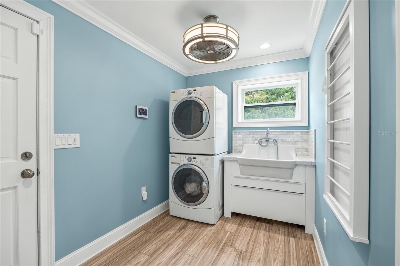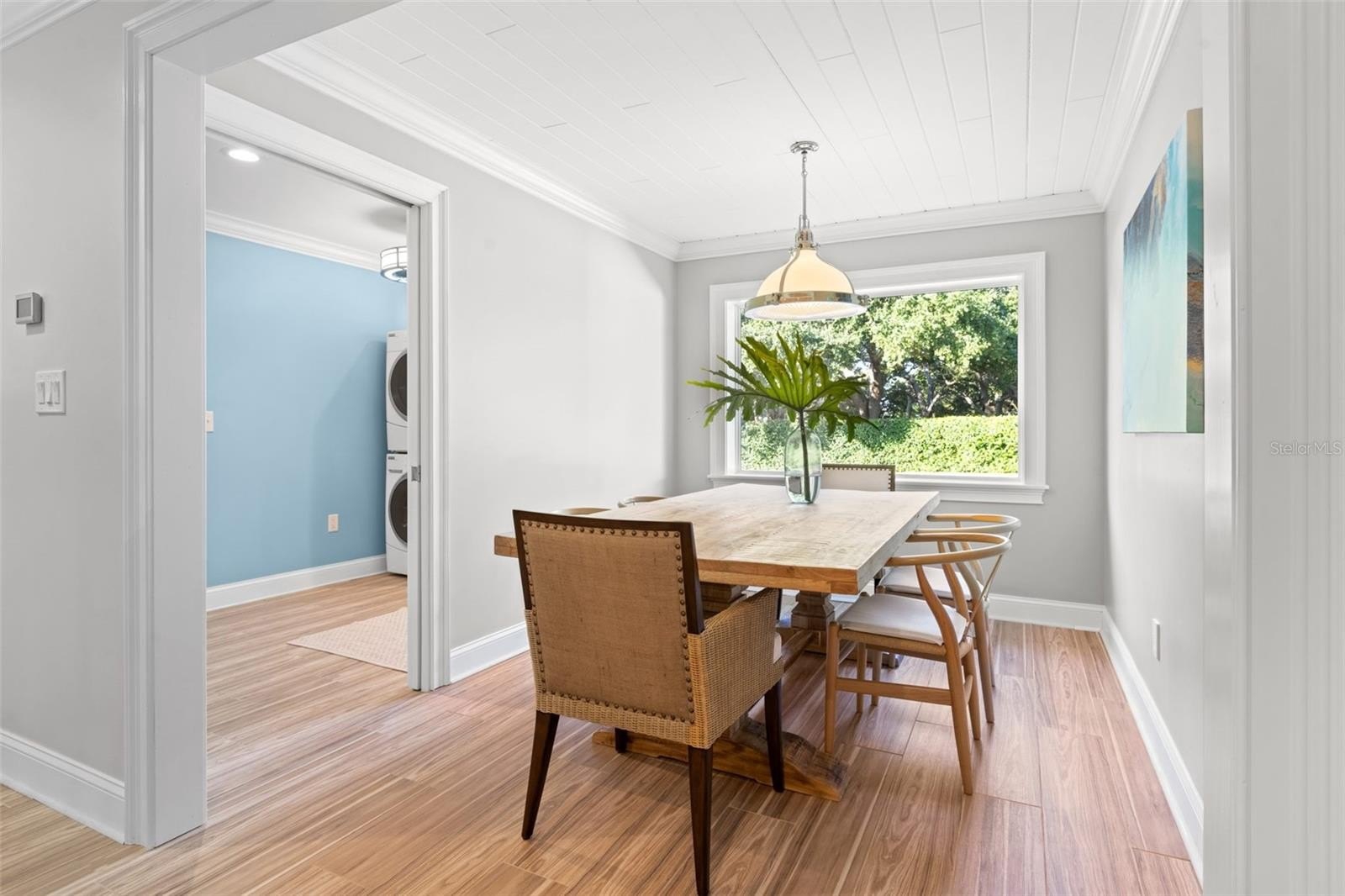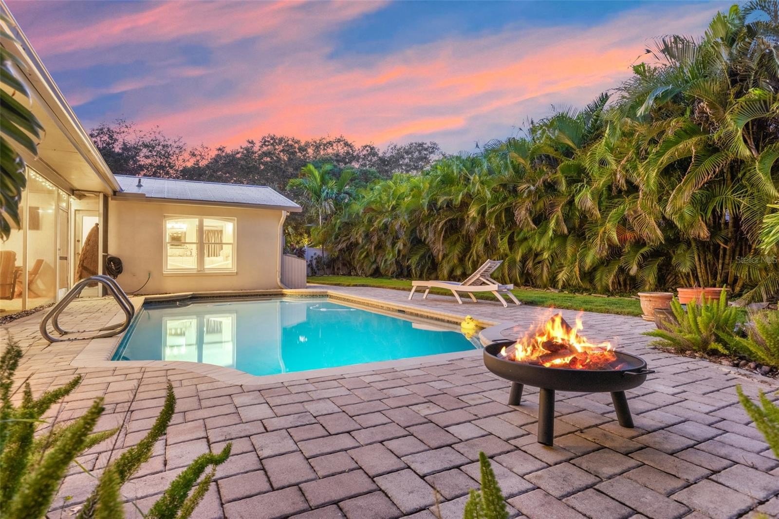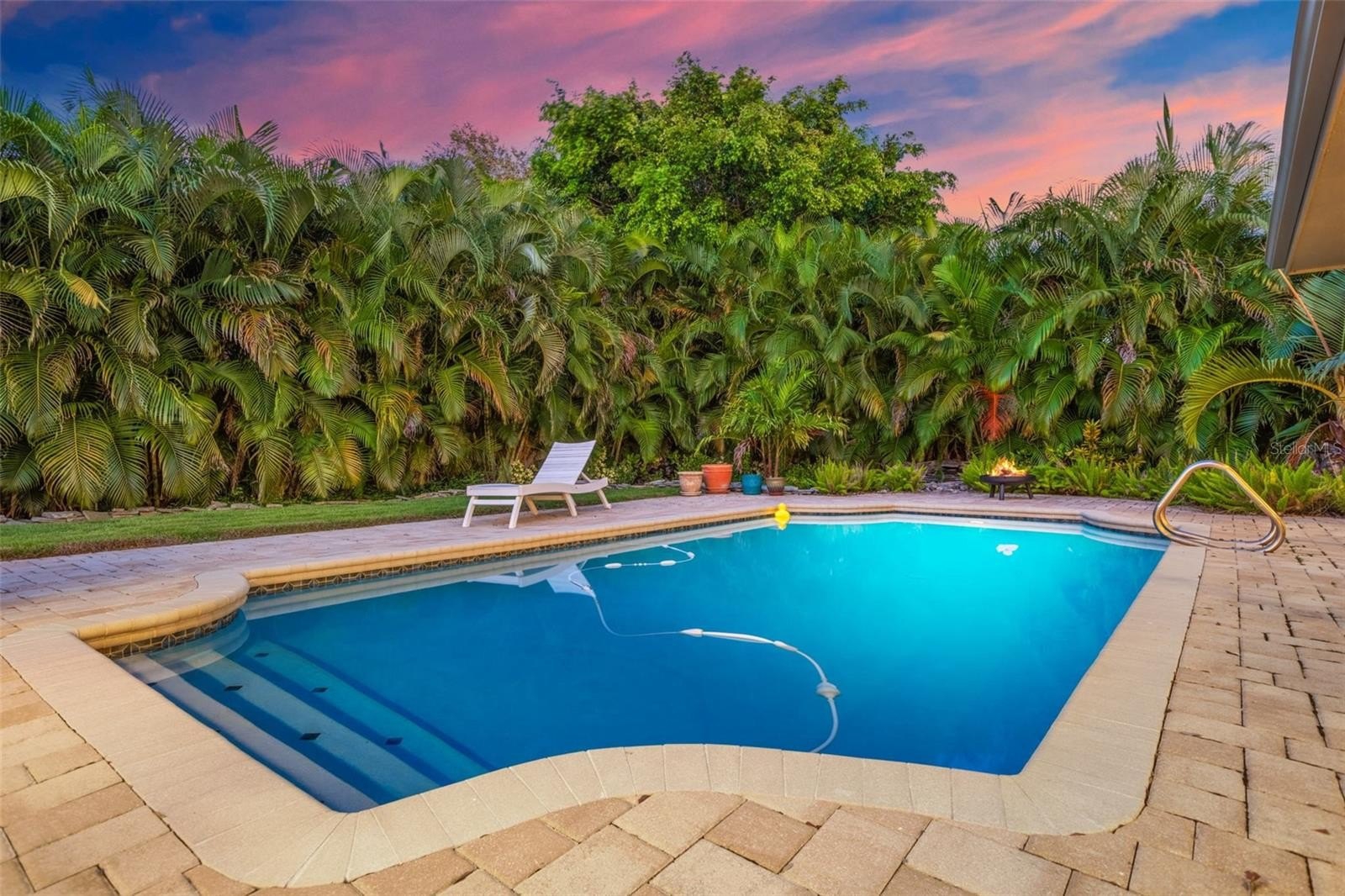 Enjoy glimpses of Boca Ciega Bay from the dining area and the primary suite and prepare for sunsets that will take your breath away. Arrive through the garage to a charming laundry/mudroom with a custom farmhouse sink. Outdoors, Florida living shines: a large screened porch (accessed by a sliding pocket door) overlooks the sparkling pool and fully fenced, private backyard, complete with a Meyer lemon tree.