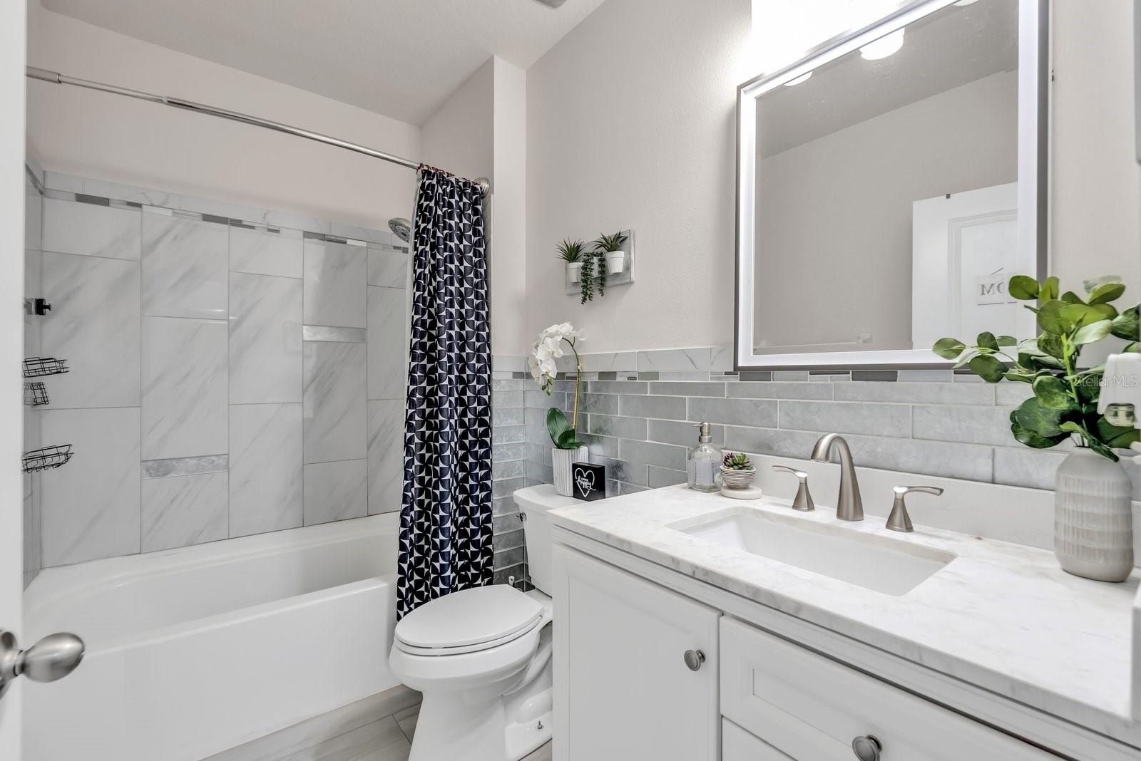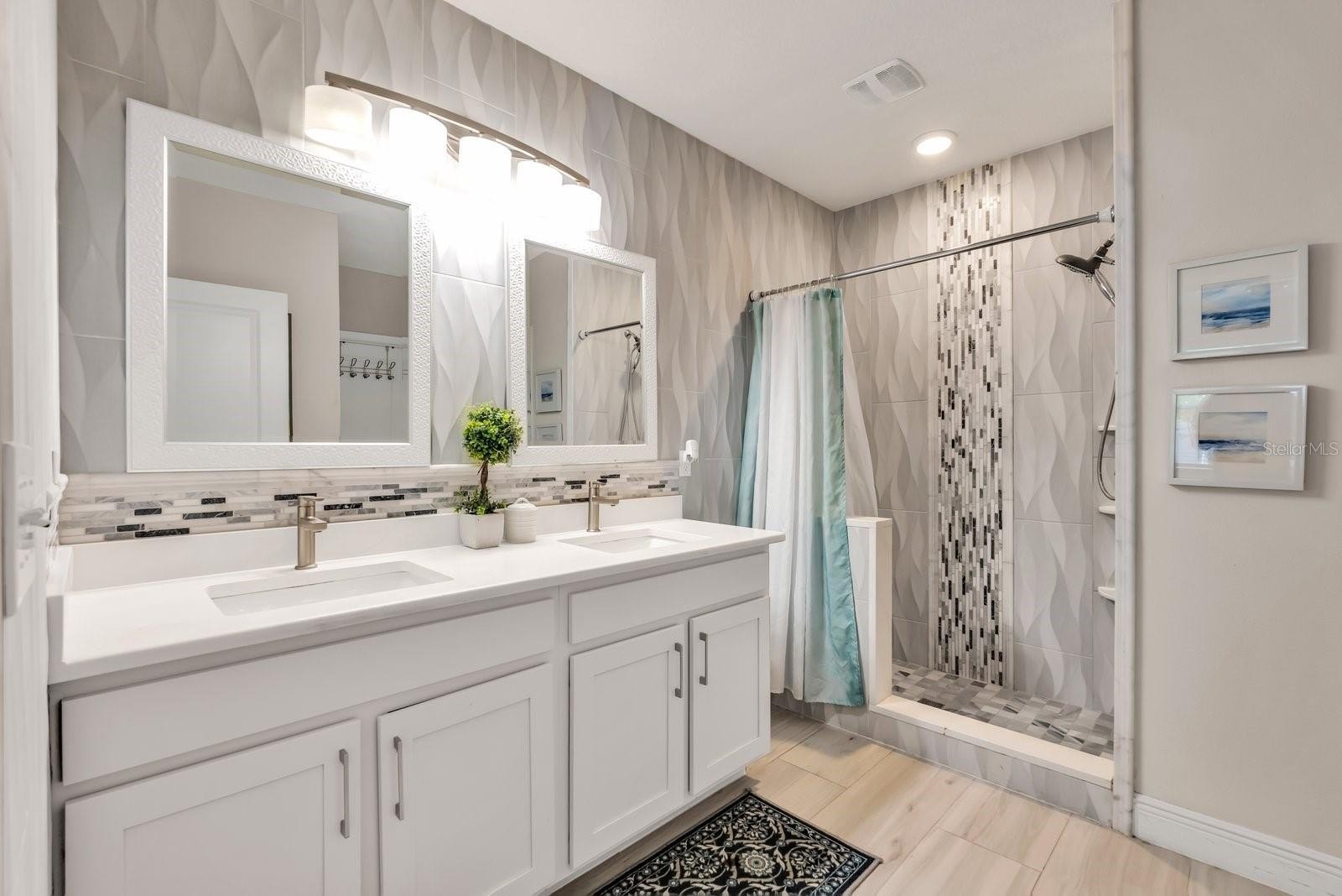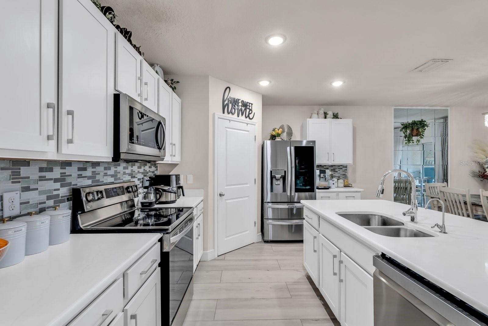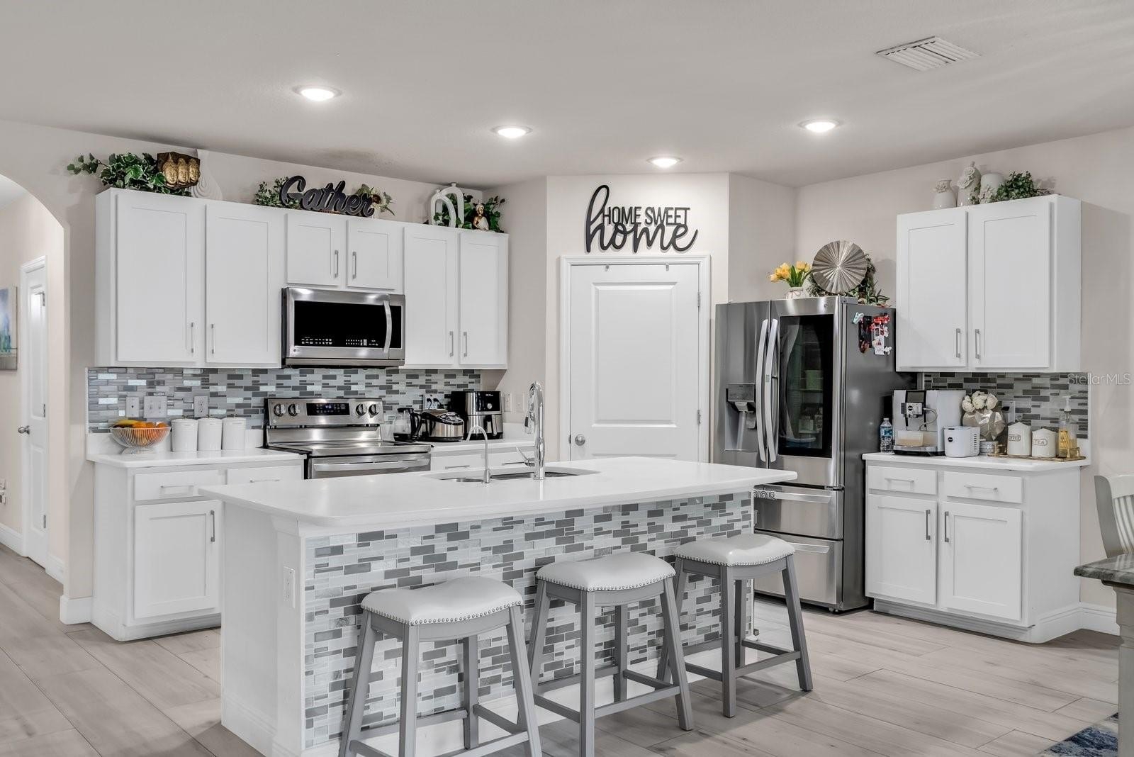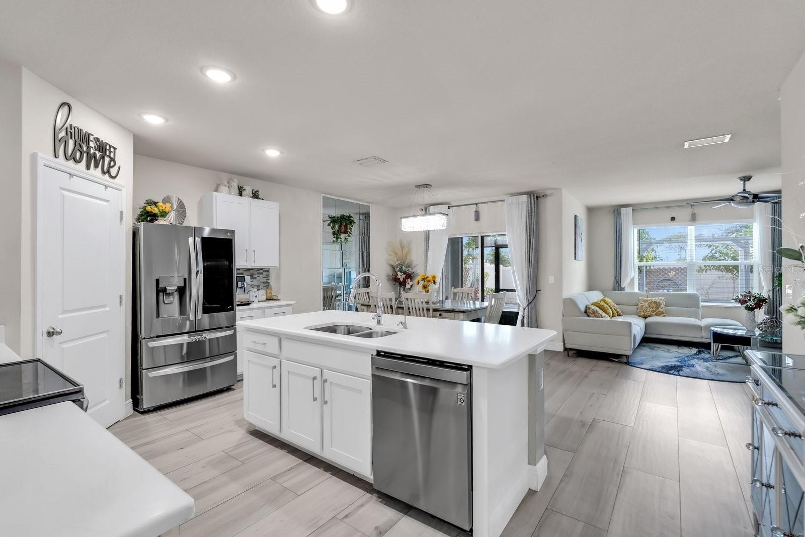 This stunning home is as good as new — if not better! Built in 2019, this beautifully improved 4-bedroom, 2-bath home is move-in ready and full of upgrades. The split floor plan offers open, light-filled living spaces and no carpet throughout. The kitchen is the heart of the home with sleek quartz countertops, a large stainless steel sink, updated appliances, a walk-in pantry, and a gorgeous backsplash. Both bathrooms have been tastefully updated, including the spacious primary suite, which features a walk-in shower, double sinks, and a large walk-in closet. Enjoy outdoor living on the screened lanai and easy-care backyard, paved for entertaining. The community offers pools, a fitness center, a clubhouse, a dog park, open spaces, and access to the scenic Suncoast Trail — a perfect place to enjoy nature, walks, and so much more. Conveniently located near shopping, dining, and area attractions. Hurry — this home is ready for you!
