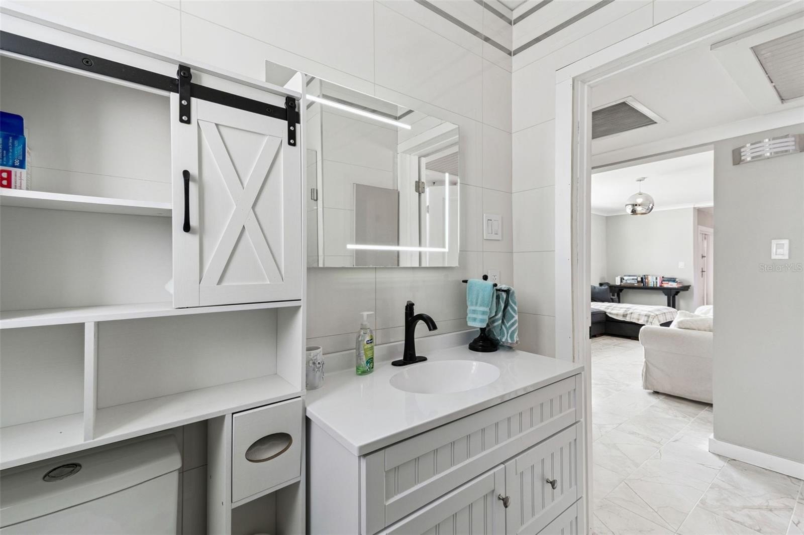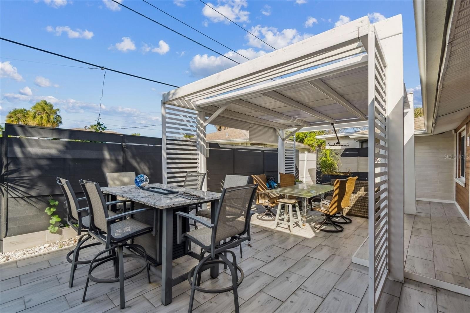 Outdoors, you’ll find a professionally landscaped private oasis perfect for entertaining or relaxing in total privacy. The expansive rear patio includes a swim spa, outdoor shower, barbecue area, and mounted widescreen TV, all surrounded by lush tropical landscaping. A hidden courtyard garden offers a peaceful retreat for meditation or quiet reflection.