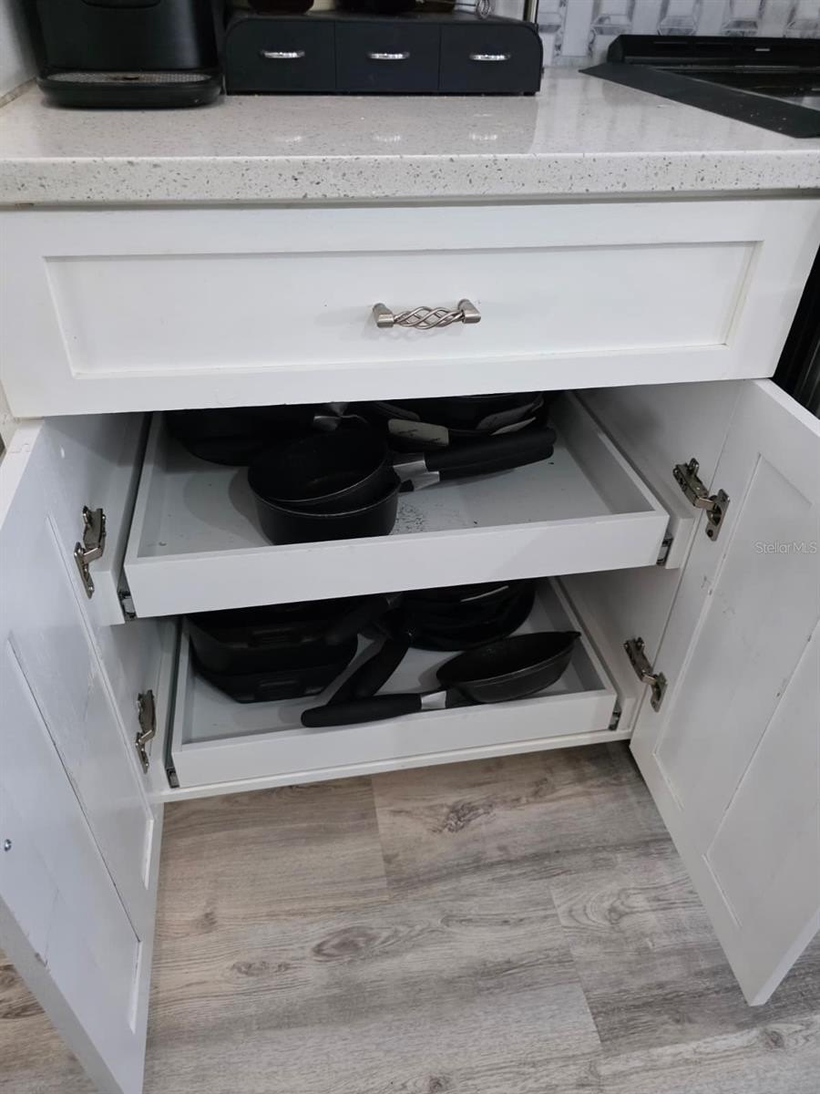 Step inside to discover a bright, open floor plan with cathedral ceilings and an open-concept kitchen that will impress any chef. The kitchen is equipped with high-end LG smart appliances, including a double oven range and an oversized French-door refrigerator with craft ice feature—both connected to the home’s smart system. The custom cabinetry with pull-out drawers, stunning white quartz island, and convenient pot filler add both function and elegance.
