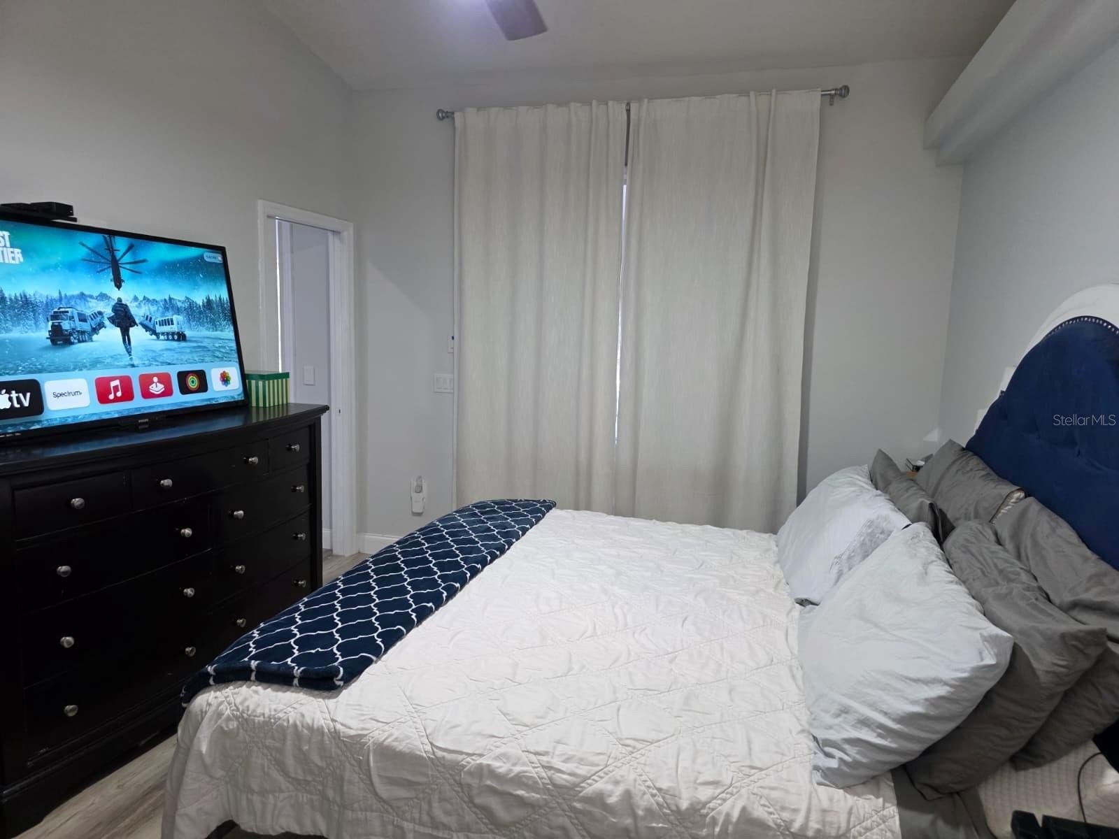 The primary suite is a serene retreat featuring 8-ft sliding glass doors that open to a view of the sparkling pool and jacuzzi. The spa-inspired bathroom offers a soaking tub perfect for unwinding at the end of the day.