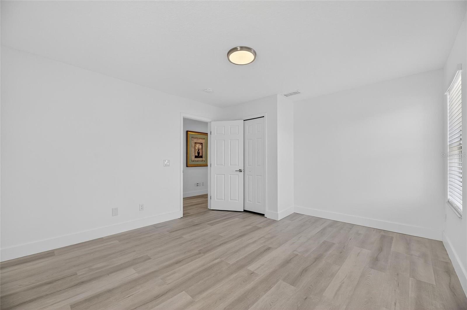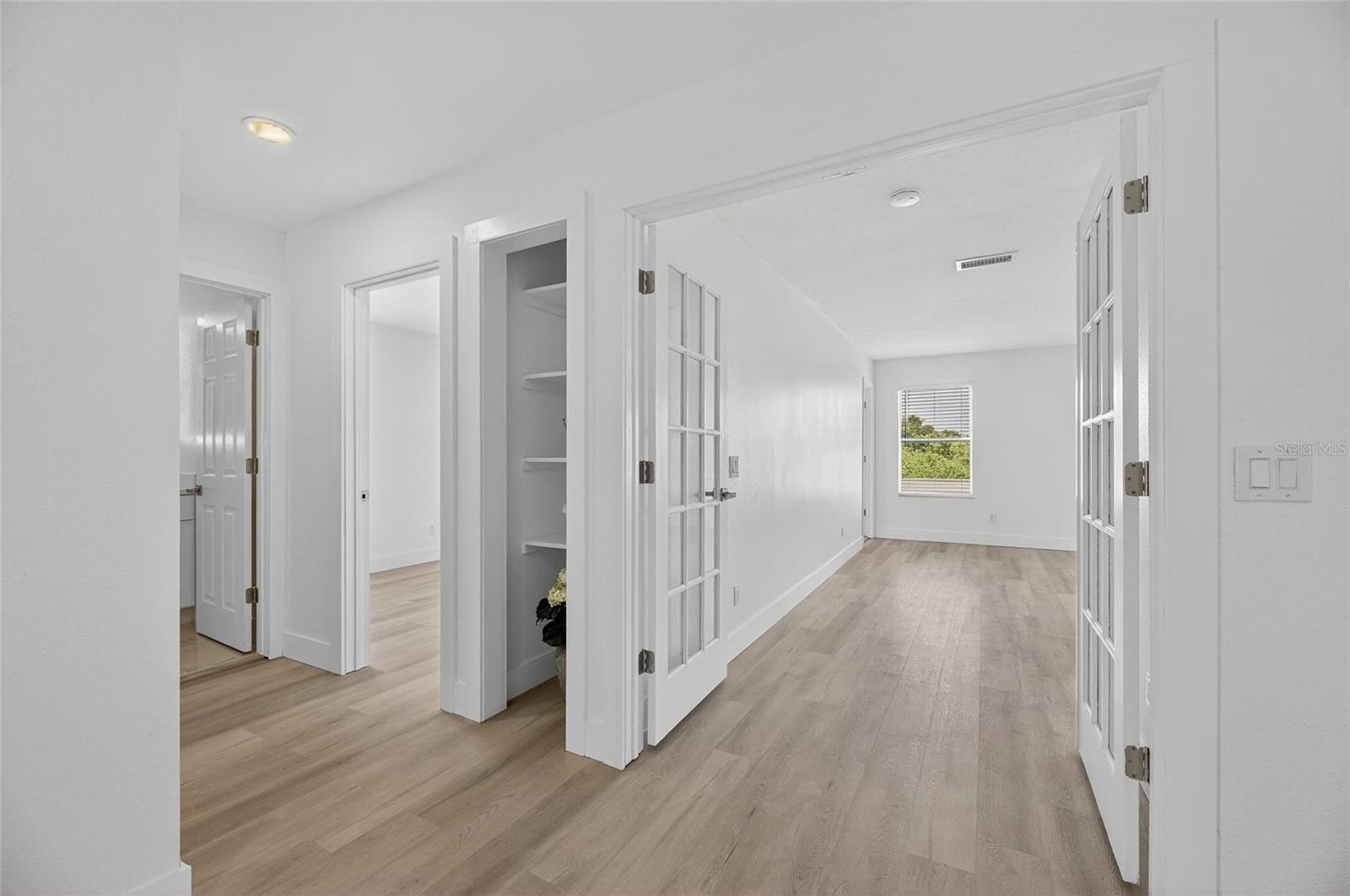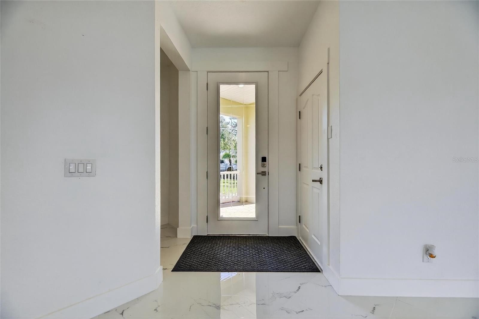 From the kitchen, step outside to the screened-in pool and spa, where you’ll enjoy tranquil views of the lake and surrounding conservation area—an inviting space to unwind or entertain year-round. A convenient storage closet is tucked beneath the staircase on the main floor.