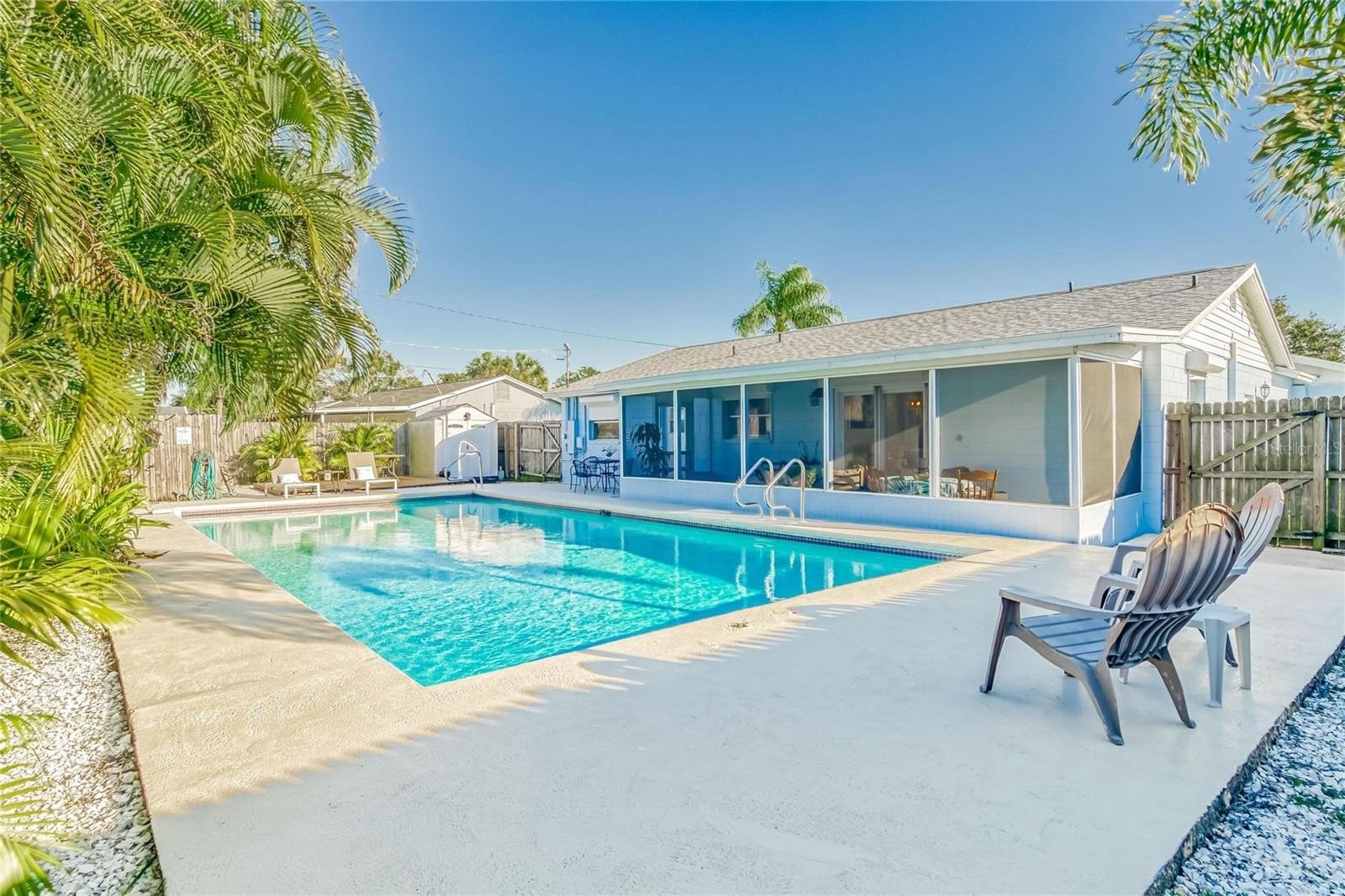 Step outside to your backyard retreat. A giant pool is surrounded by mature coastal landscaping, while the large privacy fence ensures seclusion. The oversized patio deck and screened back porch provide plenty of room for entertaining or relaxing. A full sprinkler system keeps the landscaping lush and vibrant.