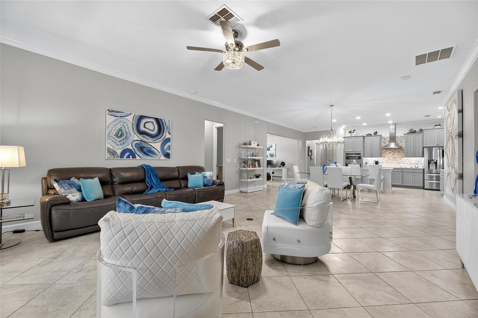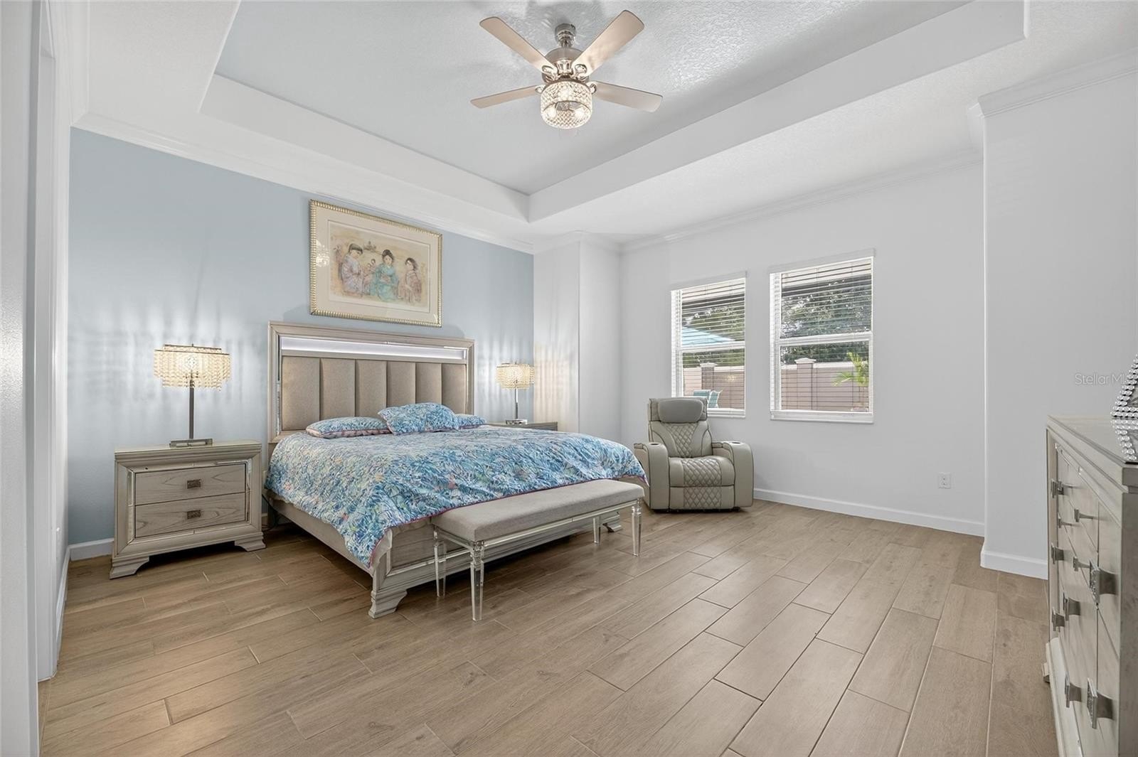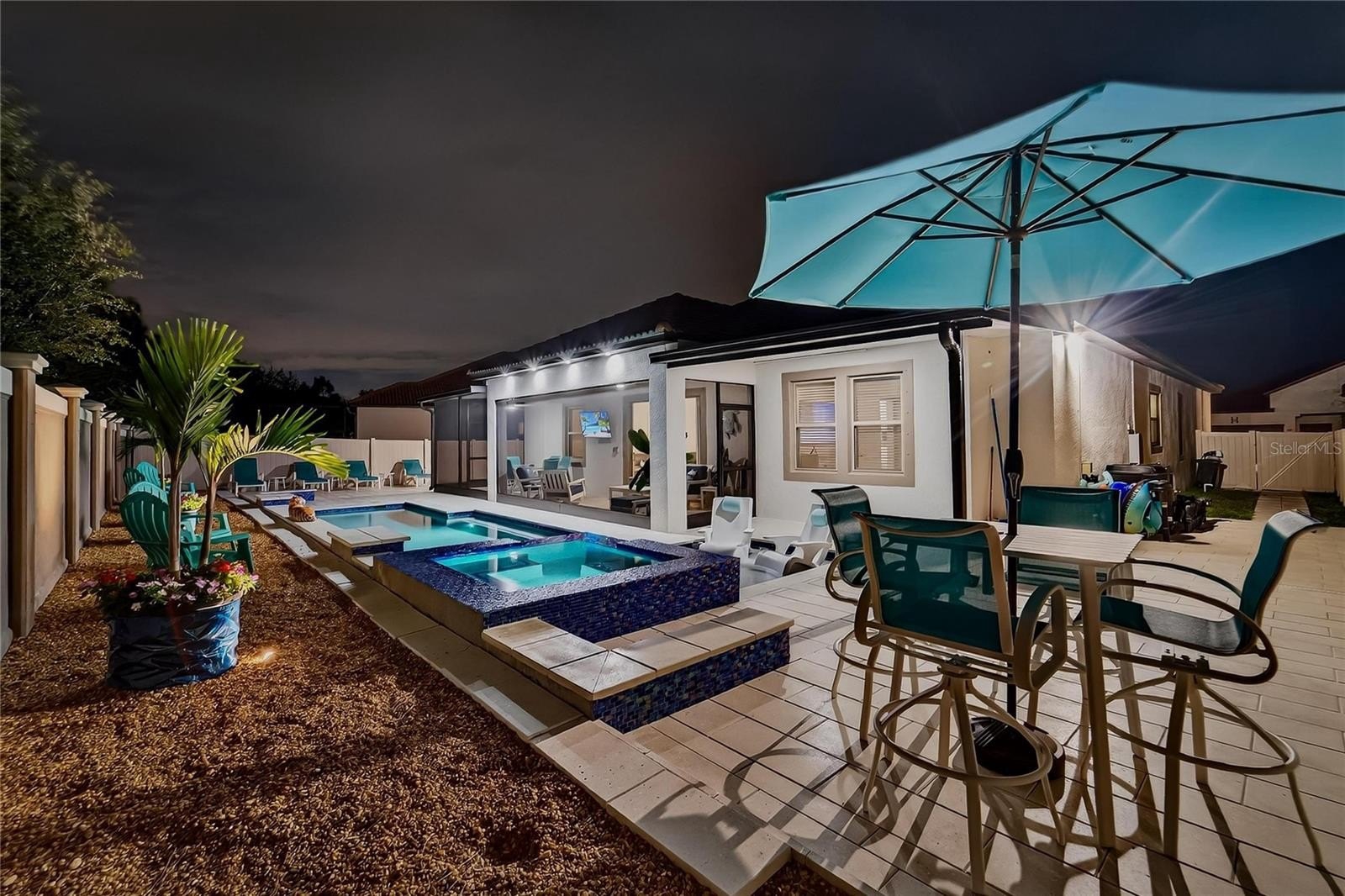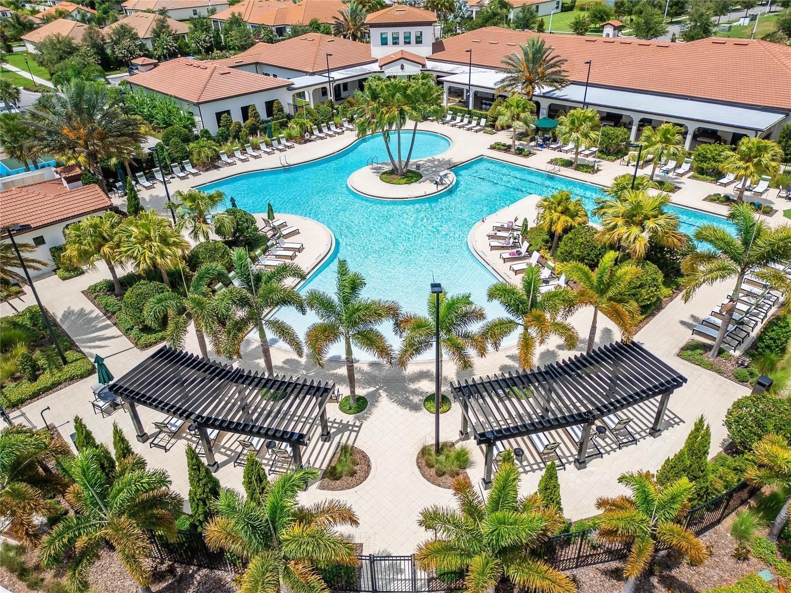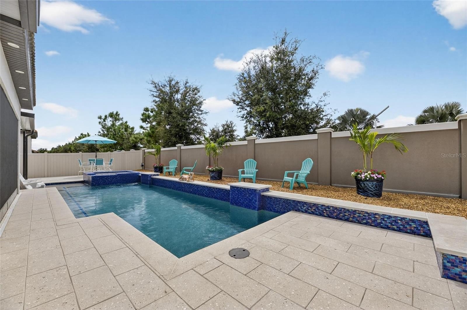 WELCOME TO YOUR FLORIDA DREAM PRIVATE POOL HOME! CUSTOM ONE YEAR NEW, HEATED, CHILLED, SPECTACULAR POOL FEATURING A RAISED SPA PLUS AN OVERSIZED BUBBLING SUNSHELF ISLAND. FINE DETAILS SUCH AS A SHEER DESCENT WATERFALL, COLOR CHANGING LIGHTS AND AN EXTENDED LOUNGING BENCH WENT INTO MAKING THIS HUGE (37 FT LONG) POOL A TROPICAL OASIS! THE EXTENDED PATIO IS WELL LIT AND VERY SPACIOUS. ENJOY THE OVERSIZED POOL DECK WITH ITS GORGEOUS 24 X 12 CUSTOM SHELL LOCK PAVERS. FULLY FENCED BACK YARD FOR COMPLETE PRIVACY! INSIDE YOU WILL FIND A WONDERFUL, WIDE OPEN FLOOR PLAN! STUNNING LIGHT FIXTURES AND CEILING FANS THROUGHOUT. THE KITCHEN HAS GORGEOUS WHITE QUARTZ COUNTER TOPS WITH SPARKLING CRYSTALS (INSTALLED LAST YEAR), EXTENSIVE RECESSED LIGHTING, CUSTOM BACK SPLASH AND STAINLESS STEEL APPLIANCES. REFRIGERATOR, DISHWASHER, WASHER AND DRYER ARE HIGHLY UPGRADED. THE FLEX ROOM MAKES AN EXCELLENT HOME OFFICE, HOME THEATER, OR 4TH BEDROOM WITH AN EASY CONVERVSION. CROWN MOLDING IN MAIN LIVING AREAS. THE PRIMARY SUITE IS A BEAUTIFUL, PEACEFUL RETREAT WHICH FLOWS TO A DRAMATIC ENSUITE BOASTING AN ENORMOUS WALK IN SHOWER, GARDEN TUB FOR TWO, CUSTOM BUILT IN CABINETRY AND CUSTOM WALK IN CLOSET WITH PLENTY OF SPACE! SAY GOOD MORNING TO YOUR NEIGHBORS FROM YOUR CHARMING COVERED FRONT PORCH! TONS OF STORAGE IN THE 3 CAR GARAGE PLUS AN UPSTAIRS STORAGE ROOM. THIS MODERN, NEUTRAL HOME CAN BE SOLD FURNISHED OR UNFURNISHED. CONTEMPORARY STYLING, LUXURIOUS FINISHES, AND A GREAT COMMUNITY MAKE THIS A HOME YOUR FAMILY WILL WANT TO VISIT OFTEN! MEDLEY AT SOUTHSHORE BAY IS A PRIVATE, GATED, 55+ FANTASTIC COMMUNITY WHERE YOU CAN DO AS MUCH OR AS LITTLE AS YOU WANT. THE RESORT STYLE CLUBHOUSE FEATURES A BALLROOM, GYM, CARD ROOMS, SHOWS AND ENTERTAINMENT. LIVE MUSIC, DJ AND KARAOKE PARTIES, PICKLE BALL, BOCCE BALL, A TROPICAL BEACH ENTRY POOL, INDOOR AND OUTDOOR DINING AND FULL BAR SERVICE! YOU CAN ALSO PARTICIPATE IN MANY CLUBS AND OUTINGS WITH YOUR NEIGHBORS. AS AN OWNER IN MEDLEY YOU ALSO ENJOY FULL MEMBERSHIP AT THE 5+ ACRE SOUTHSHORE BAY CRYSTAL LAGOON! IN ADDITION TO THE TOT SPLASH PAD, OBSTACLE COURSES AND SWIMMING, YOUR WHOLE FAMILY WILL HAVE A BLAST AT THE MOVIE NIGHTS, POKER NIGHTS, CIGAR NIGHTS, DANCE PARTIES, FULL BAR, SWIM UP BAR, FOOD TRUCKS, FIREWORKS DISPLAYS, HOLIDAY CELEBRATIONS AND GOLF CART PARADES! ISN'T THIS WHY YOU MOVED TO FLORIDA? ALL DIMENSIONS APPROXIMATE. ALL INFORMATION CONTAINED HEREIN DEEMED ACCURATE BUT SUBJECT TO BUYER VERIFICATION. ONE TIME $2150 CAPITAL CONTRIBUTION DUE FROM BUYER AT CLOSING. OWNER IS LISTING AGENT.