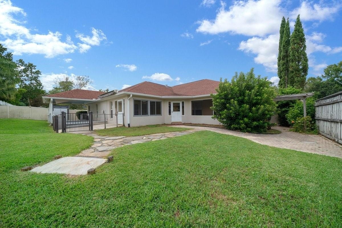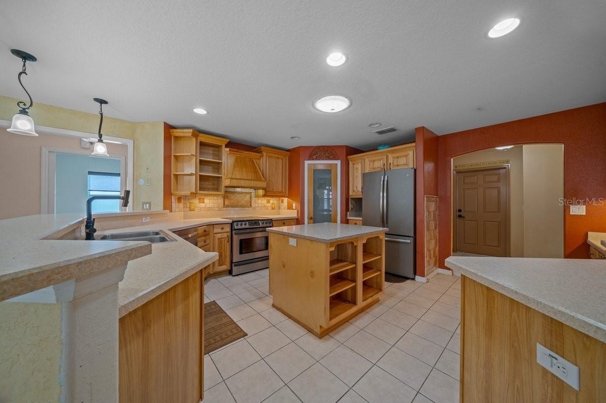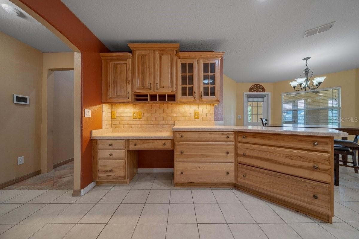 This beautifully maintained home is tucked away in the treasured gated community of Woodland Estates. Located in a prime SE Ocala community just minutes from shopping, dining and medical facilities, making everyday conveniences a breeze. From the moment you arrive at this 3 bedroom, 2 bathroom home, you will appreciate the beautifully landscaped yard. Inside you'll find a large formal living room, office, spacious open concept family room, dining and kitchen that boasts of real hickory cabinets, a walk in pantry and an island meant for multi-tasking with vegetable bins, a spice rack and plenty of countertop space for the chef in the family. In the back of the house you will find 40 feet of half screened and half storm windowed tiled patio under roof, an awning covered grill area and pet retreat. Inside upgrades include a 3-thermostat variable heating & air-conditioning system (installed 2018), a whole-home alarm system, an