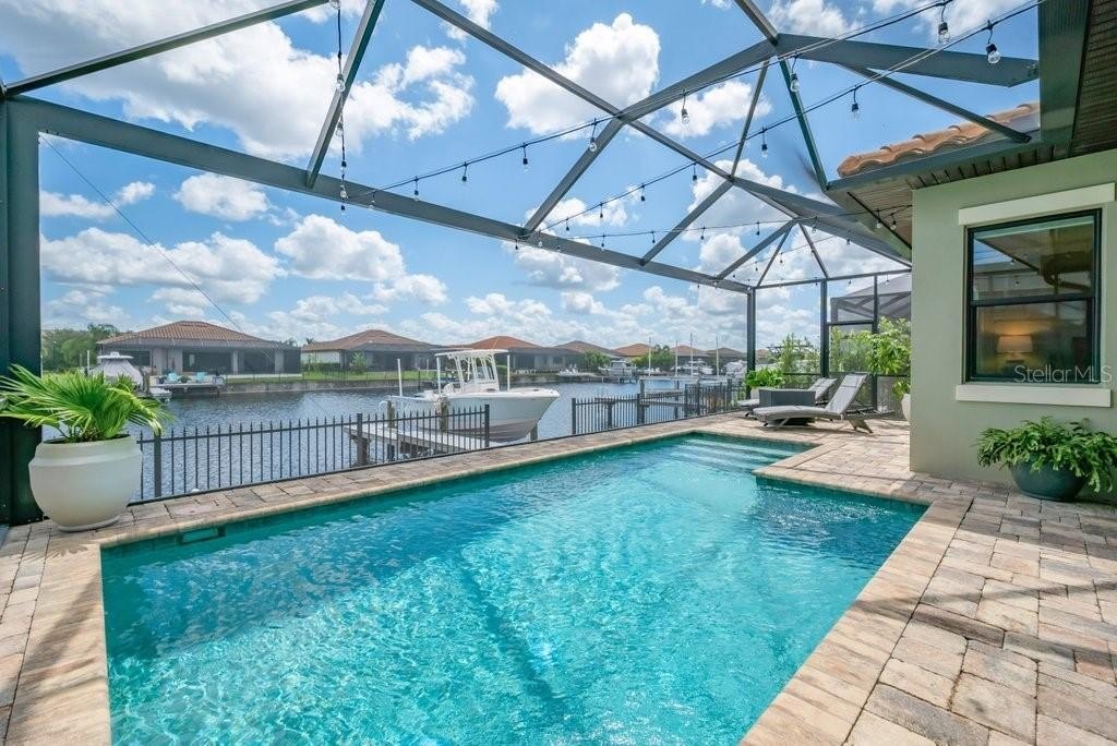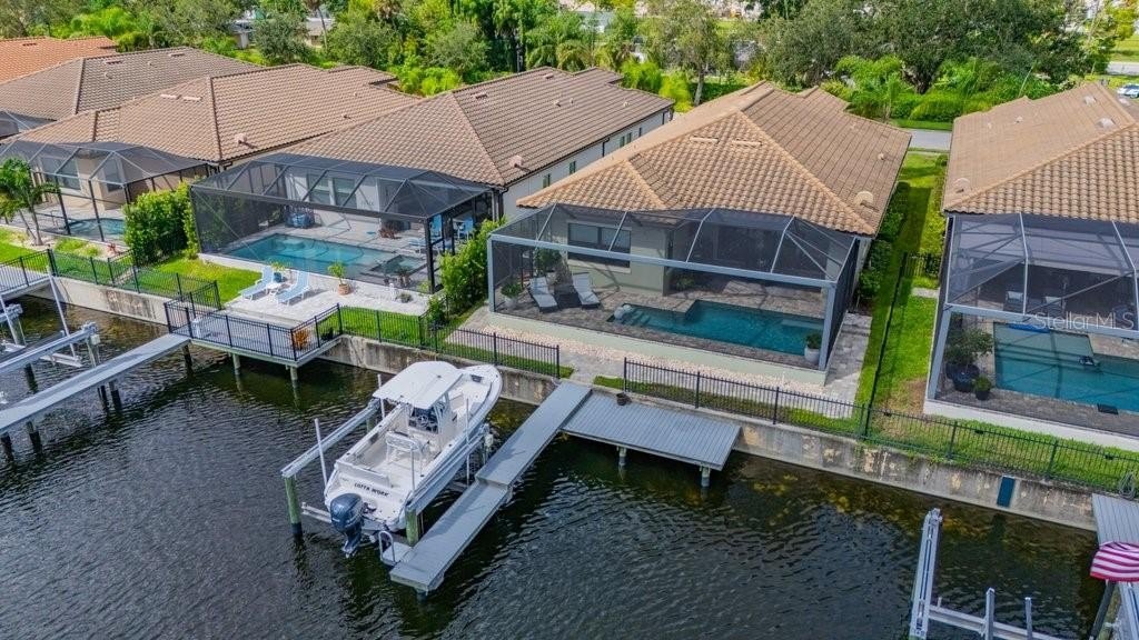 LIVE ON THE WATER!! GATED WATERFRONT HOME W/ POOL & DOCK in a RESORT STYLE COMMUNITY - ON THE MANATEE RIVER! >> FLOOD INSURANCE NOT REQUIRED << + >> and LAWN CARE INCLUDED IN THE HOA! Come See this FABULOUS POOL HOME complete with a Private Dock and Boat Lift! Dreams Do Come True! Welcome to Sanctuary Cove offering the ultimate Florida lifestyle. Enjoy Maintenance Free living in a vibrant gated coastal community on the Manatee River with rich amenities and attractions. This Home shows like a Model! An open concept, the San Remo plan offers 3 generously sized bedrooms, + HOME OFFICE, 2.5 full baths, an OUTDOOR / SUMMER KITCHEN, INVITING POOL, PRIVATE DOCK and an Oversized 2 car garage. Upon arrival you are greeted by a meticulously manicured courtyard and a handsome Florida style elevation. Step inside and you will immediately Fall in Love with this home’s appointments and picturesque backdrop! As you continue back you will discover a gourmet kitchen boasting double ovens, gas cooktop, built in refrigerator, quartz counters, spacious center island, upgraded cabinets, and more. The kitchen opens to a large great room with a plethora of natural light and spectacular views of your pool and the water. A magnificent split floor plan design with high ceilings is ideal for entertaining. The Owner’s Suite offers a walk-in closet, luxurious bathroom with frameless glass shower, double sinks and water views. The secondary bedrooms are located on the opposite side of the home. Breathe easier and live healthier with an upgraded A/C system— with natural air ventilation and UV lights that eliminate allergens for a fresher home environment. Some of the Special features include hurricane rated impact resistant Low-E windows and doors, tankless water heater, Smart Home features, exquisite lighting throughout, oversized tile floors, ceiling fans, Plantation Shutters, Motorized Blinds, and a majestic back yard. Explore the outdoors and walk out on to an amazing patio space! Complete with an outdoor kitchen, expansive sitting area, a sparkling pool and panoramic views of your boat dock and the water. The composite boat dock features a 10,000lb lift, also fitted with electric, water, lighting and a large sitting area where you can enjoy the sunsets! The Gated Sanctuary Cove community is a Golf Cart friendly Resort Style community with with a Private Sugar Sand Beach, an 8600 sqft clubhouse that includes a waterfront community pool with lap lanes and a hot tub, fitness center, billiard room, ping pong, family/TV room, kitchen, bathrooms, heated pool with lap lanes and a hot tub! Riverfront Park and beach on the Manatee River with a riverside kayak launch, kayak storage area and golf cart parking available. Only minutes by boat or car to restaurants and shopping, including Ellenton Outlets, the Bradenton Yacht Club, Whiskey Joes, Woody’s River Roo and so much more. Detwiler’s Market is right across the street. Conveniently located to Downtown Bradenton, Lakewood Ranch, River Walk, I-75 and I-275, Anna Maria Island, Bradenton/Holmes Beach, Longboat Key, Sarasota, St Pete and Tampa Bay. This convenient location allows you easy access to the Manatee River, Gulf of Mexico, Terra Ceia Bay and Tampa Bay from your very own dock. Boat to Downtown Bradenton and approximately a 15 minute boat ride to Holmes Beach on Anna Maria Island. Call and Schedule a Private Showing TODAY!