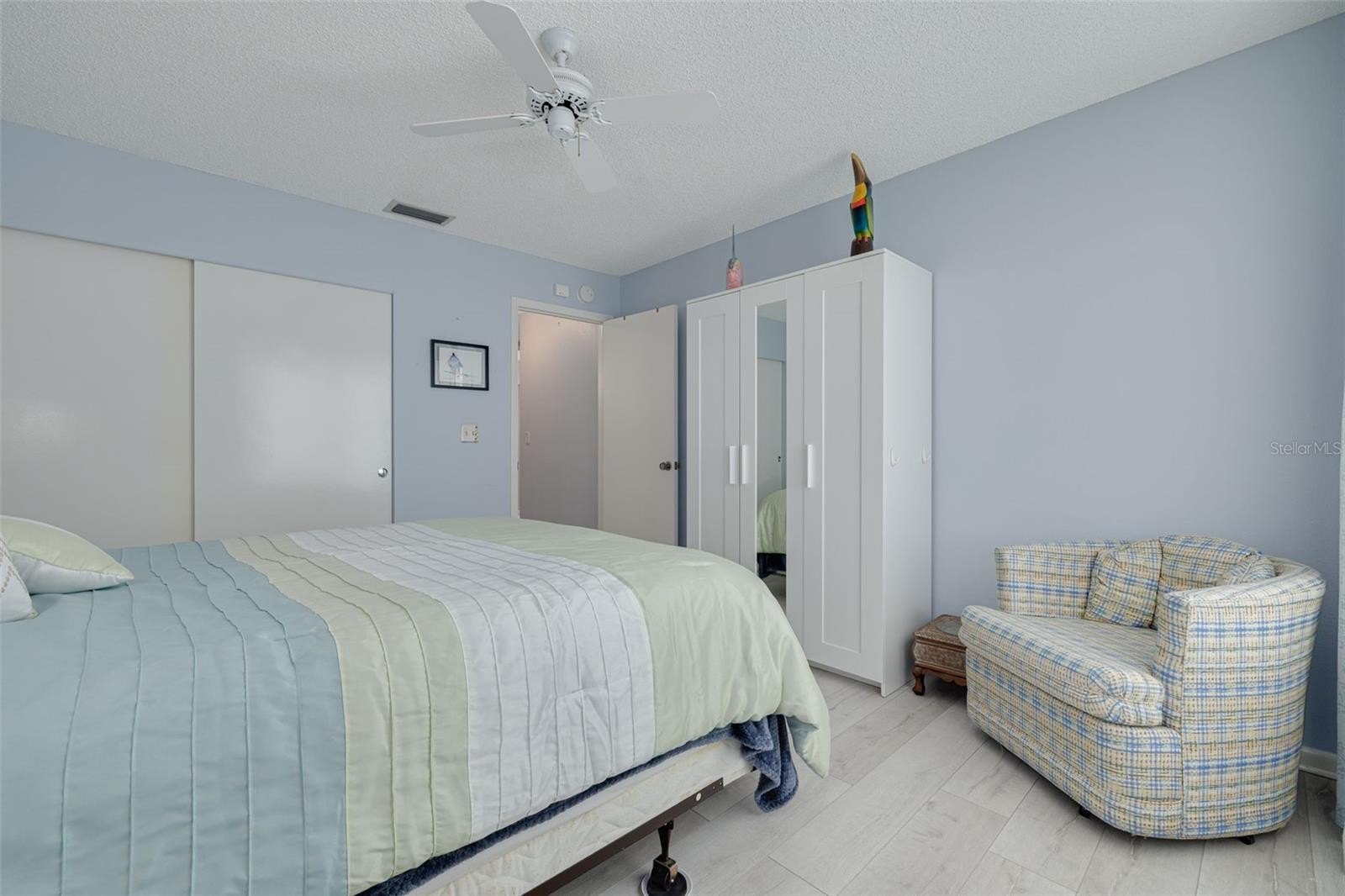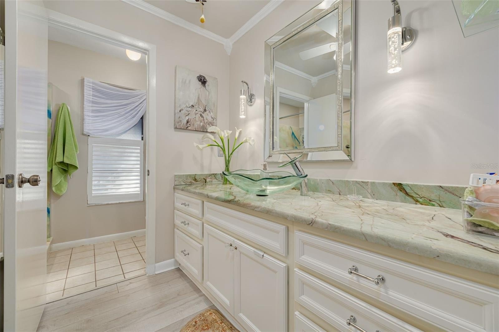 Step inside to an inviting open floor plan that flows effortlessly from the spacious living area to the dining and kitchen spaces. Abundant natural light shines through the all-new impact windows, with hurricane shutters, complemented by upgraded electric shades for easy comfort at the touch of a button. Lower insurance + peace of mind thanks to newer systems/impact glass. The split bedroom layout provides privacy for guests, while the large primary suite offers plenty of room to relax with a generous bath and ample closet space. Enjoy the updated primary suite bath that includes quartz countertops, vanity with soft close draws, the shower is "maintenance free" with epoxy finish, no need to use chemicals, simply rinse the walls and wipe down with a towel.