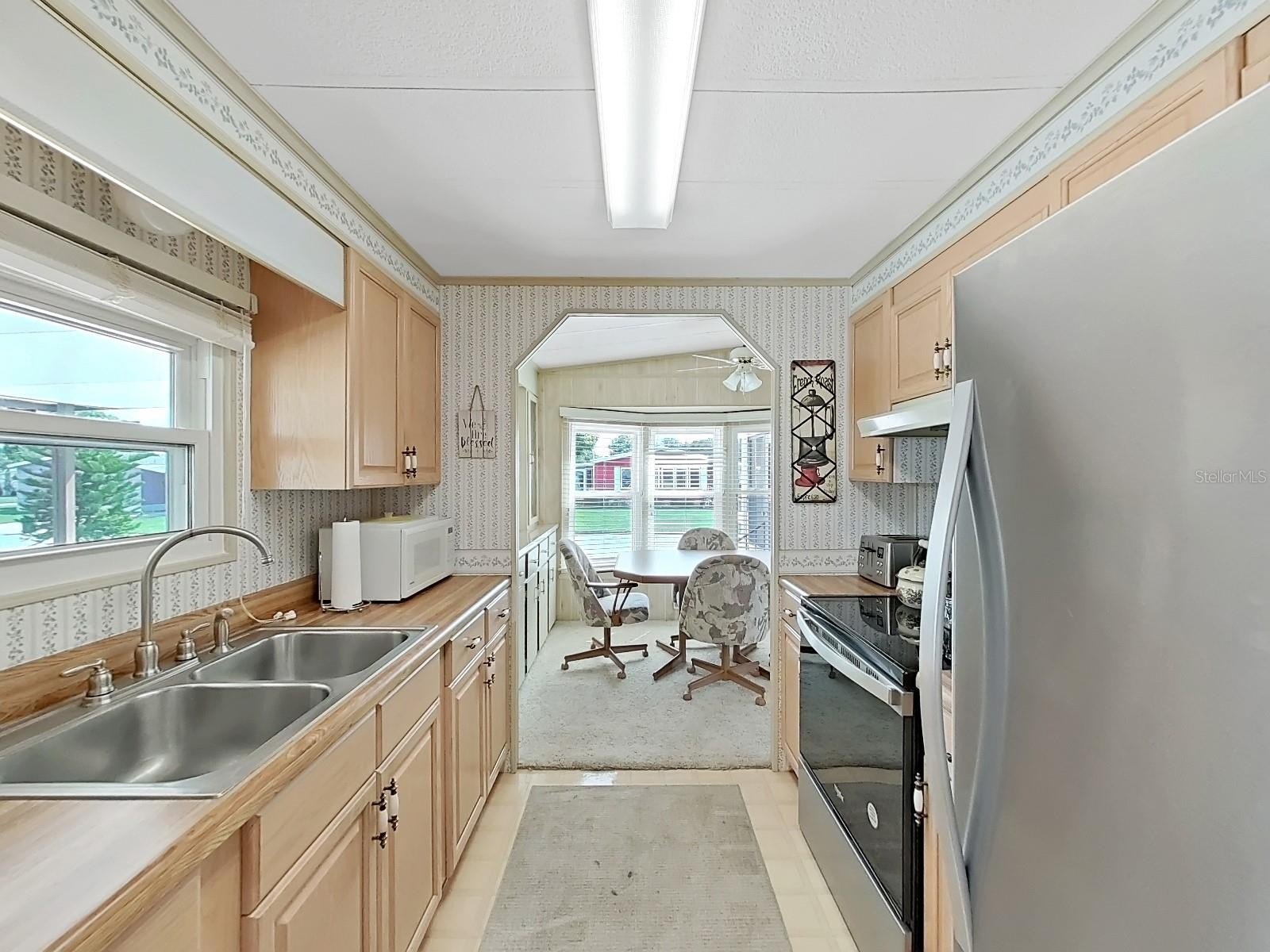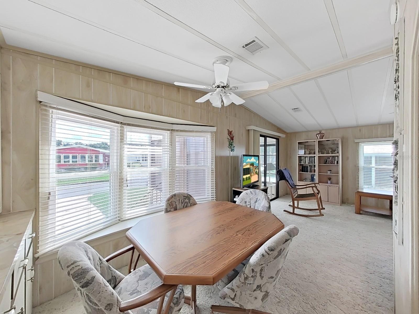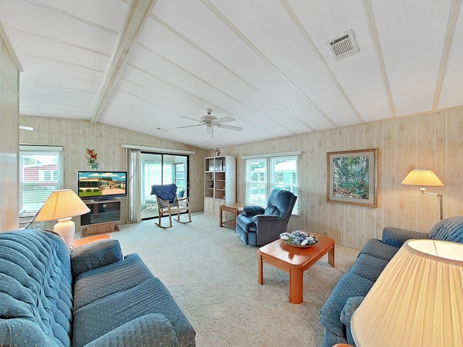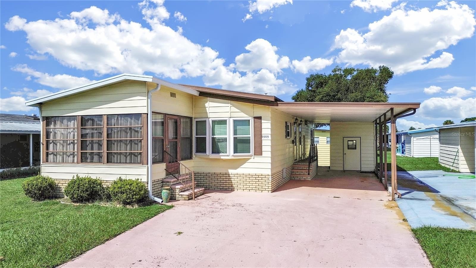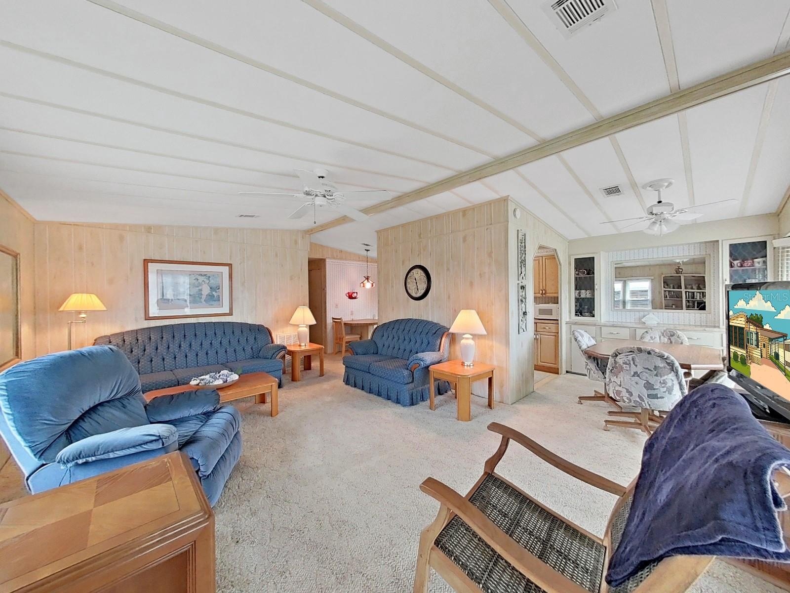 PRICE REDUCTION!! Don't miss this VERY WELL MAINTAINED, FULLY FURNISHED 2 Bedroom, 2 Bathroom home in 55+ Foxwood Lake Estates where you OWN THE LAND!! Many updates on this home include: replaced the AC in 2019, Water Heater 2019, Windows 2017, Washer 2014, Dryer 2016, new Stainless steel Refrigerator 2025, new stove 2025, metal roof-over, just pack your suitcase and move in!! There are wood cabinets in the kitchen, stainless steel sink and faucet, water filtration system under the kitchen sink, dining room has a built-in hutch, spacious living room, updated sink and cabinet in guest bath, all tools in the shed go with the home and much more! Lots of storage and the master closet is so large, you can fit a desk and a chair inside!! Enjoy your morning coffee in the Florida room with a one-of-a-kind hand-painted floor! Take advantage of the very low HOA dues with community features that include a large clubhouse, game room, billiards room, sauna, fitness center, library, large heated pool, hot tub, pickle ball courts, shuffle board courts, bocce ball courts, basketball hoop, paved walking path around the lake and so much more!! Schedule your showing today and join this wonderful community!