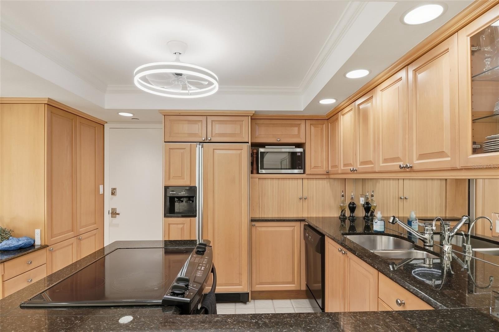 features Kitchen-Aid appliances and ample cabinetry, perfectly suited for both casual