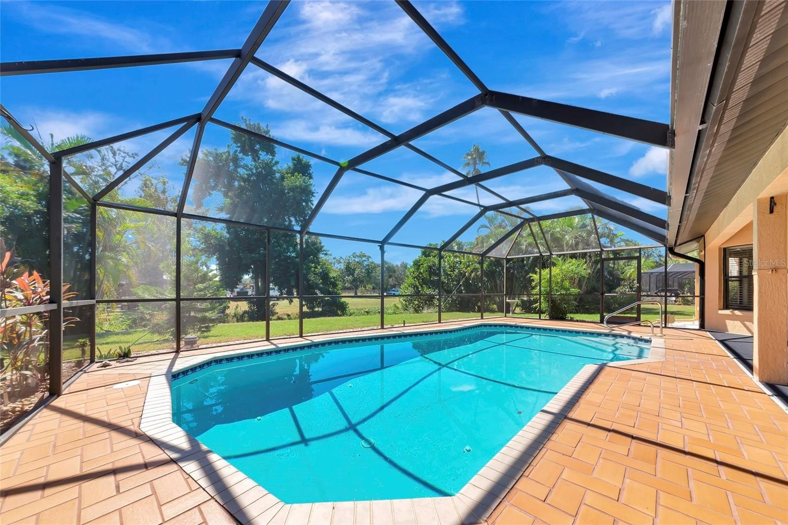 The large primary suite is a true retreat, featuring a spacious bathroom with a garden tub, separate shower, dual sinks, and a generous walk-in closet. Out back, unwind or entertain family and friends on the oversized covered lanai overlooking your private, sparkling pool—ideal for enjoying Florida’s year-round sunshine.