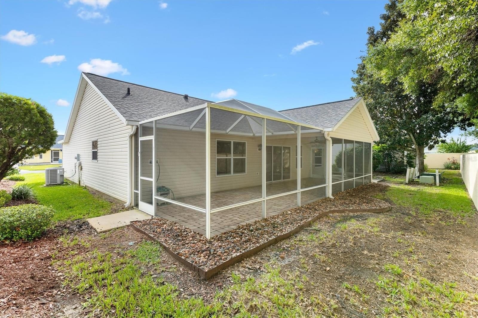 One or more photo(s) has been virtually staged. BOND PAID! NEW ROOF 2021! Looking for a Home with a Privacy Wall Behind - Here it is for You! This home is located in The Villages Florida! The home is located in the Village of Santiago near the Savannah Center plus lots of recreation centers, swimming pools, golf courses, shopping, restaurants and medical facilities. The floorplan name is a Wisteria and has 3 bedrooms, 2 bathrooms and 2 car garage plus an interior laundry room. The inside of the home has been recently painted a Natural Tan Color throughout the home. Luxury Vinyl Plank has been recently added to the home in most areas of the home - Kitchen / Dinette has ceramic tile. The Living Room has room for a HUGE TV on one of the walls plus room for your other living room furniture. The Kitchen offers lots of cabinets / countertops with natural gas range (electric range plug is available if desired). The Primary Bedroom has a large WALK-IN CLOSET. The laundry room is located right off of the Primary Bathroom where you can go into the garage from the laundry room. You can also come straight into the kitchen area from the garage. The home has a privacy wall behind the home with a large screened lanai plus a large birdcage. This outdoor area is perfect to enjoy your favorite drink and book. The front of the home has Sunbrella Awnings that were installed in 2016. The home is close to everything including Lake Sumter Landing and Spanish Springs Town Squares! Remember the BOND PAID which saves you a ton of money!