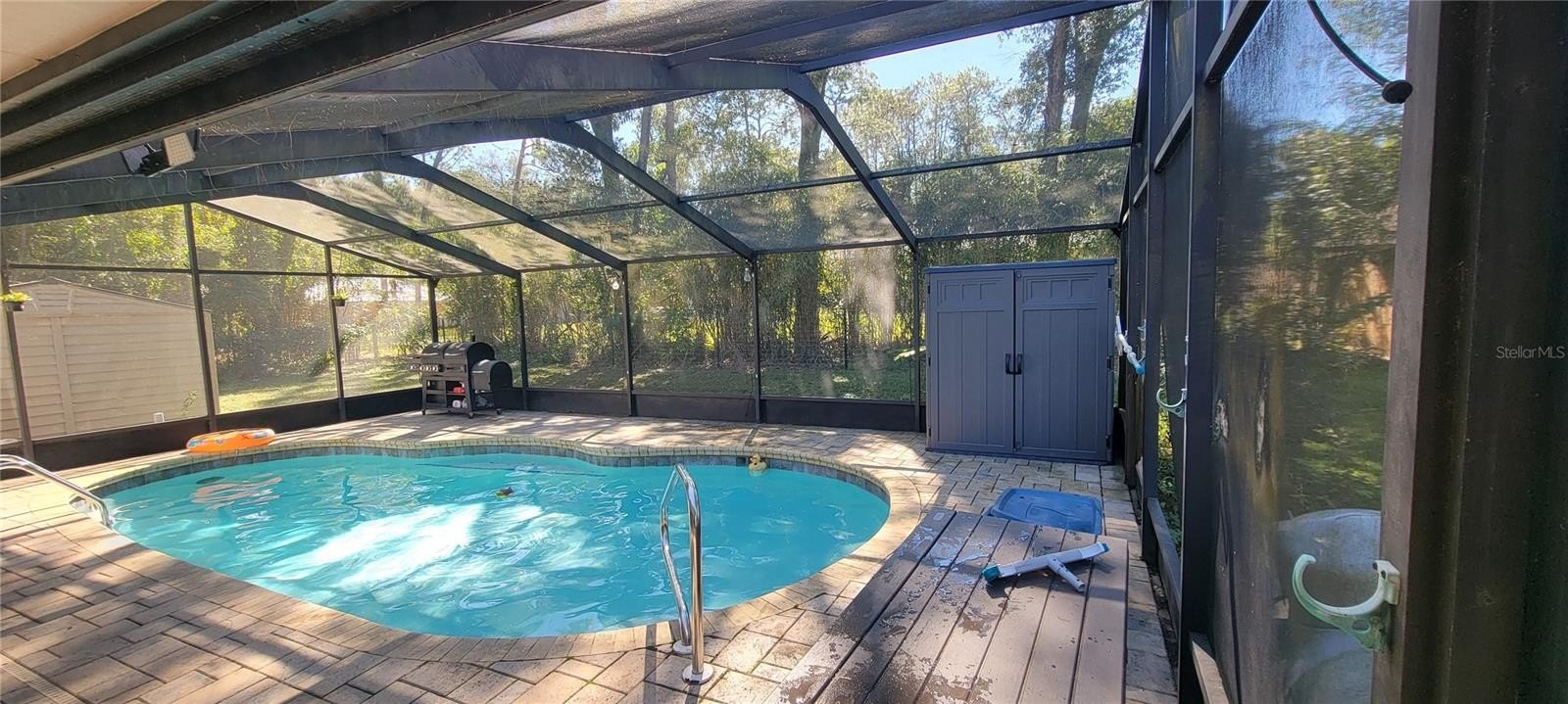 Welcome to this beautifully maintained 3-4 bedroom in ground Pool home in Inverness, FL. This residence features two bathrooms and a variety of desirable amenities. The backyard includes an enclosed in-ground pool with a bird cage, perfect for outdoor relaxation and entertainment. Inside, you'll find a cozy corner built-in fireplace, adding warmth and charm to the living space. The gourmet-style kitchen is equipped with granite countertops, a coffee bar, and all appliances included, making it ideal for home cooking and gatherings. The main bedroom offers a private en suite bathroom, providing comfort and convenience. The guest bedrooms share a well-appointed guest bathroom. The open floor plan seamlessly connects the dining and living areas, creating an inviting atmosphere. The versatile fourth bedroom, currently used as a TV, gaming, and additional sleeping area (converted from the old garage), features a large walk-in closet. Additional storage options include a shed for lawn equipment and a rear-side garage currently used as a storage/workshop with an overhead door. The home is constructed with durable block and stucco. Located close to all Inverness has, including lakes, trails, theaters, golf courses, and local dining options such as [insert local restaurants names]. For outdoor recreation, enjoy nearby lakes and river access at Lake Inverness, with options for fishing, kayaking, and canoeing. Explore natural springs at nearby Rainbow Springs State Park or the Withlacoochee River for additional outdoor adventures. This property offers a welcoming community and convenient amenities in a great location.