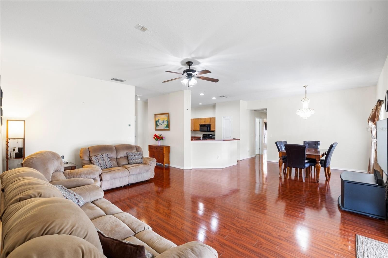 Very charming home in desirable Buckhorn Groves community. This very spacious home has 2468 sq ft of living space with four bedrooms, three full bathrooms, formal living and dining area and a very large family room, great for entertaining. The front bedroom is tucked away in its own quarters with a full bathroom, a walk in closet and privacy making it a great area for an in-law suite. The kitchen is off the family room and has plenty of space for more than one cook. You will find a closet pantry, a built in desk area and a gas stove which always makes the food taste better. Other great features you will find in the home include inside laundry room with a utility sink, separate dinette area, blinds and ceiling fans throughout the home, sliding glass door that leads onto the oversized screened in lanai, a two car garage, rain gutters and an irrigation system. Roof and AC were replaced within the past 4 years. Call for your private showing today