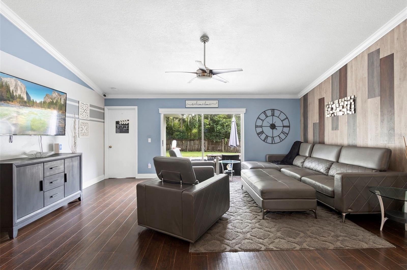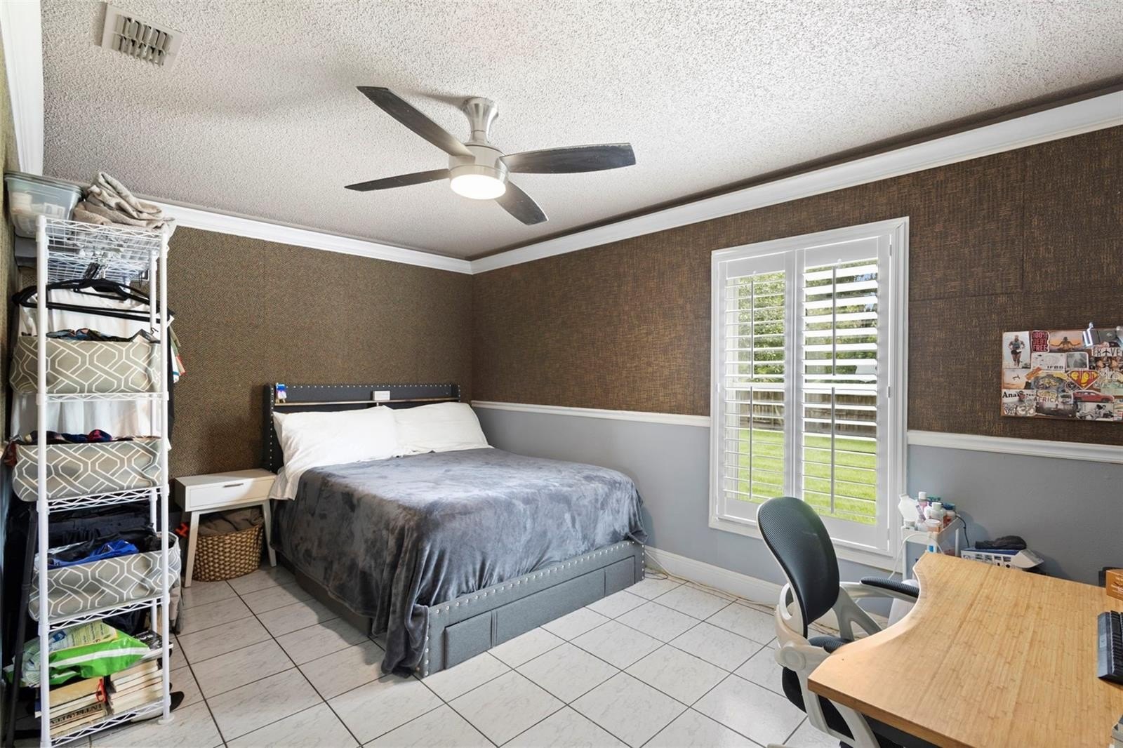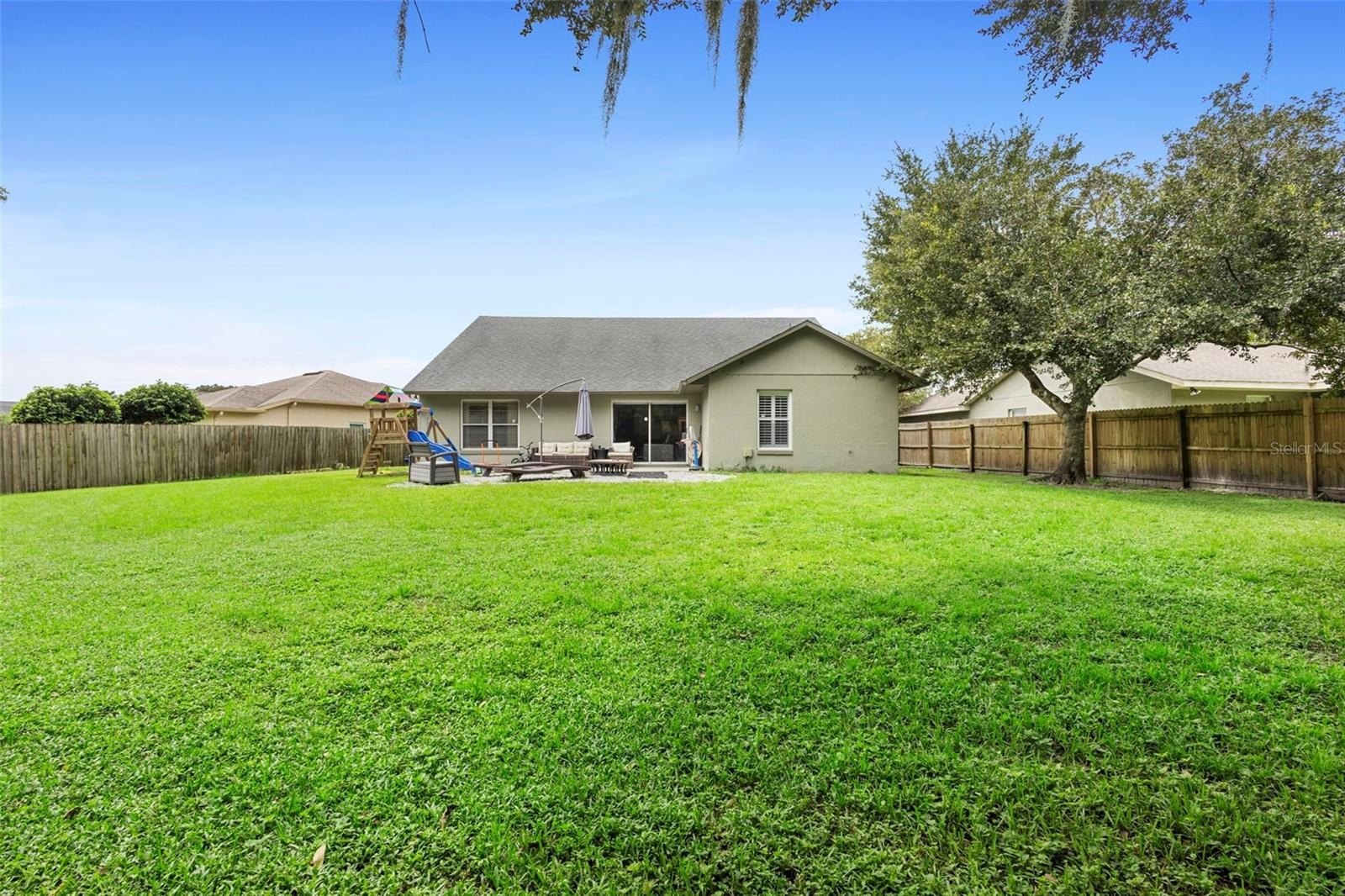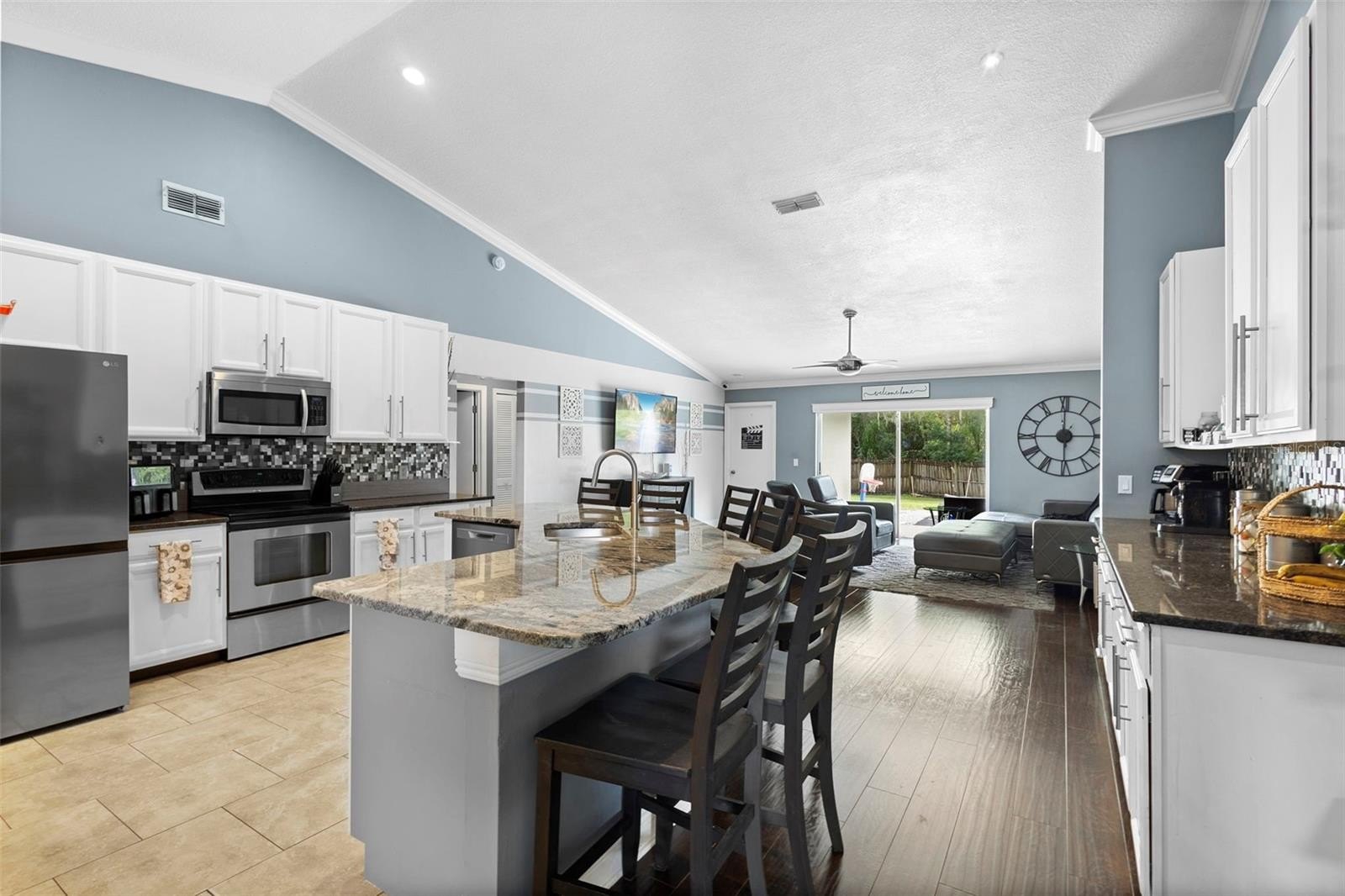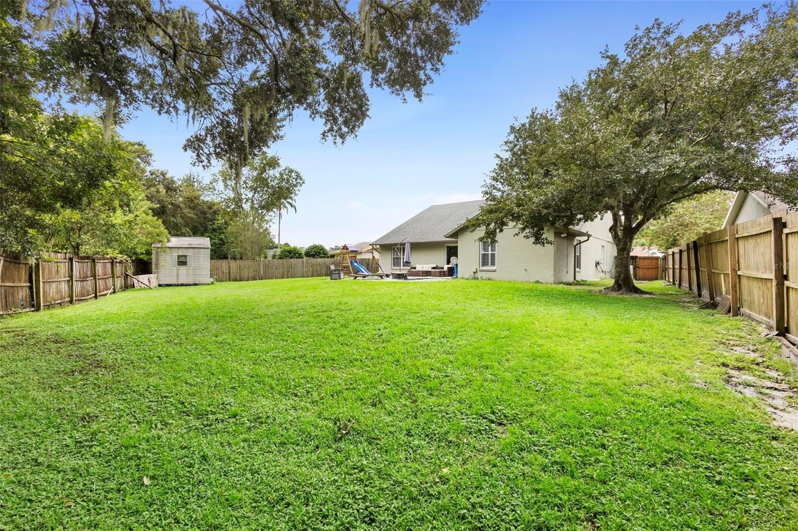 Welcome to this beautifully updated four-bedroom, two-bathroom home offering both style and comfort. With no rear neighbors and a large, privacy-fenced backyard, you’ll enjoy a peaceful setting framed by mature trees. Inside, the home features a versatile floor plan beginning with formal living and dining areas, currently enjoyed as a lounge and game room. The updated kitchen is a true centerpiece, showcasing a spacious island with breakfast bar, granite countertops, and a stylish tile backsplash. Open to the generous family room, this inviting space is perfect for everyday living and entertaining. For added comfort, the family room is equipped with room-darkening power blinds—ideal for movie nights at home. The primary suite provides a relaxing retreat with a walk-in closet and a spa-inspired bathroom complete with dual vanities, a jetted tub, and an oversized walk-in shower. A split bedroom layout ensures privacy, with two bedrooms and a full bath on one side of the home and a fourth bedroom tucked away at the back of the home. Step outside to enjoy the expansive backyard, offering plenty of room for gatherings, play, and relaxation. A 13x9 shed adds valuable storage space. Conveniently located near downtown Orlando, Lake Nona, major theme parks, and Orlando International Airport—with easy access to Brightline—this home combines tranquility with accessibility. Schedule your private showing today and experience all this home has to offer.