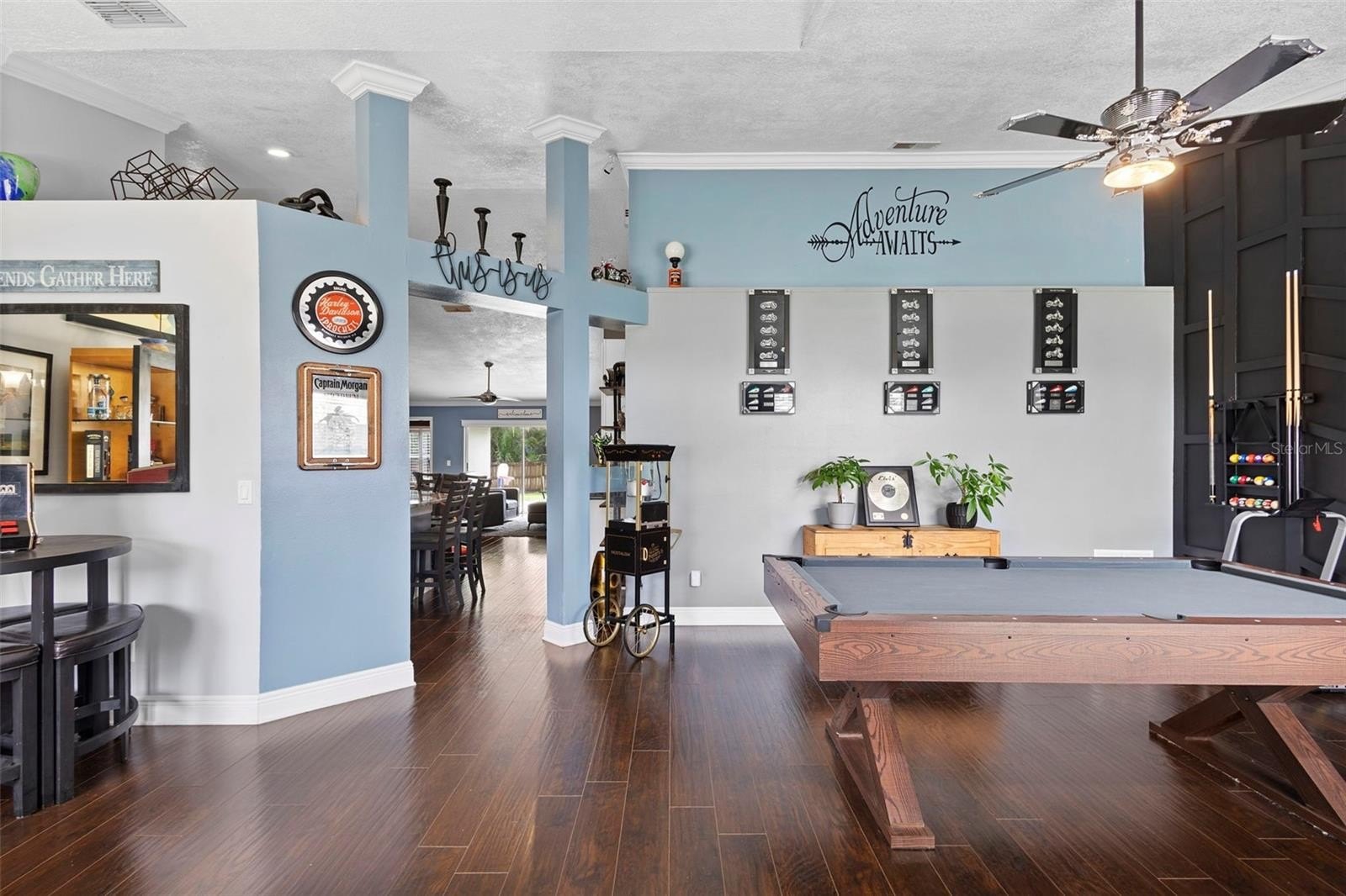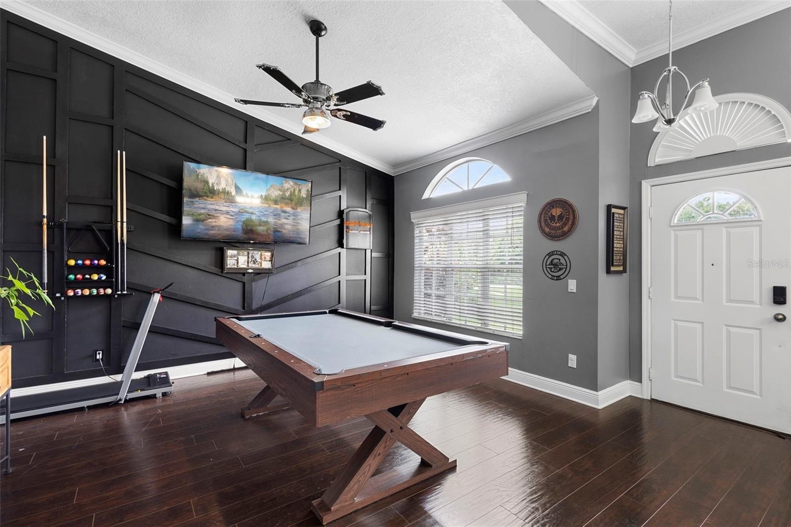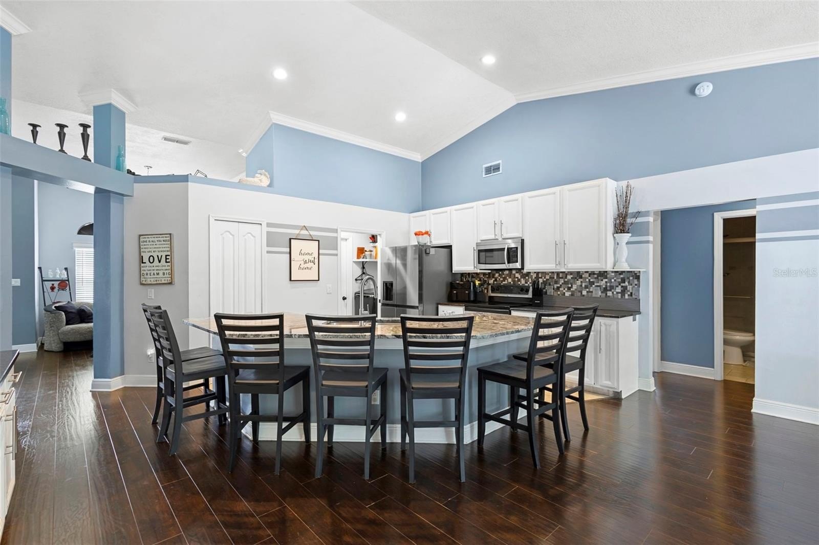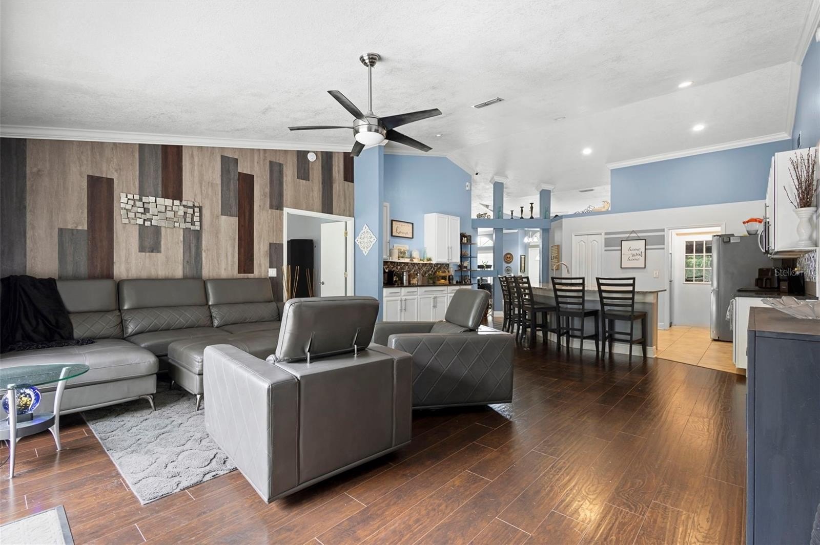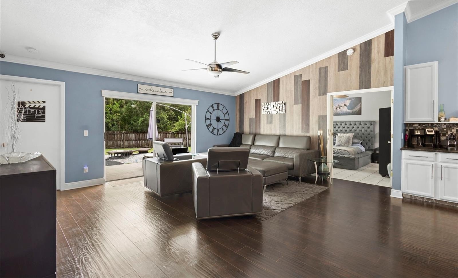 Welcome to this beautifully updated four-bedroom, two-bathroom home offering both style and comfort. With no rear neighbors and a large, privacy-fenced backyard, you’ll enjoy a peaceful setting framed by mature trees. Inside, the home features a versatile floor plan beginning with formal living and dining areas, currently enjoyed as a lounge and game room. The updated kitchen is a true centerpiece, showcasing a spacious island with breakfast bar, granite countertops, and a stylish tile backsplash. Open to the generous family room, this inviting space is perfect for everyday living and entertaining. For added comfort, the family room is equipped with room-darkening power blinds—ideal for movie nights at home. The primary suite provides a relaxing retreat with a walk-in closet and a spa-inspired bathroom complete with dual vanities, a jetted tub, and an oversized walk-in shower. A split bedroom layout ensures privacy, with two bedrooms and a full bath on one side of the home and a fourth bedroom tucked away at the back of the home. Step outside to enjoy the expansive backyard, offering plenty of room for gatherings, play, and relaxation. A 13x9 shed adds valuable storage space. Conveniently located near downtown Orlando, Lake Nona, major theme parks, and Orlando International Airport—with easy access to Brightline—this home combines tranquility with accessibility. Schedule your private showing today and experience all this home has to offer.