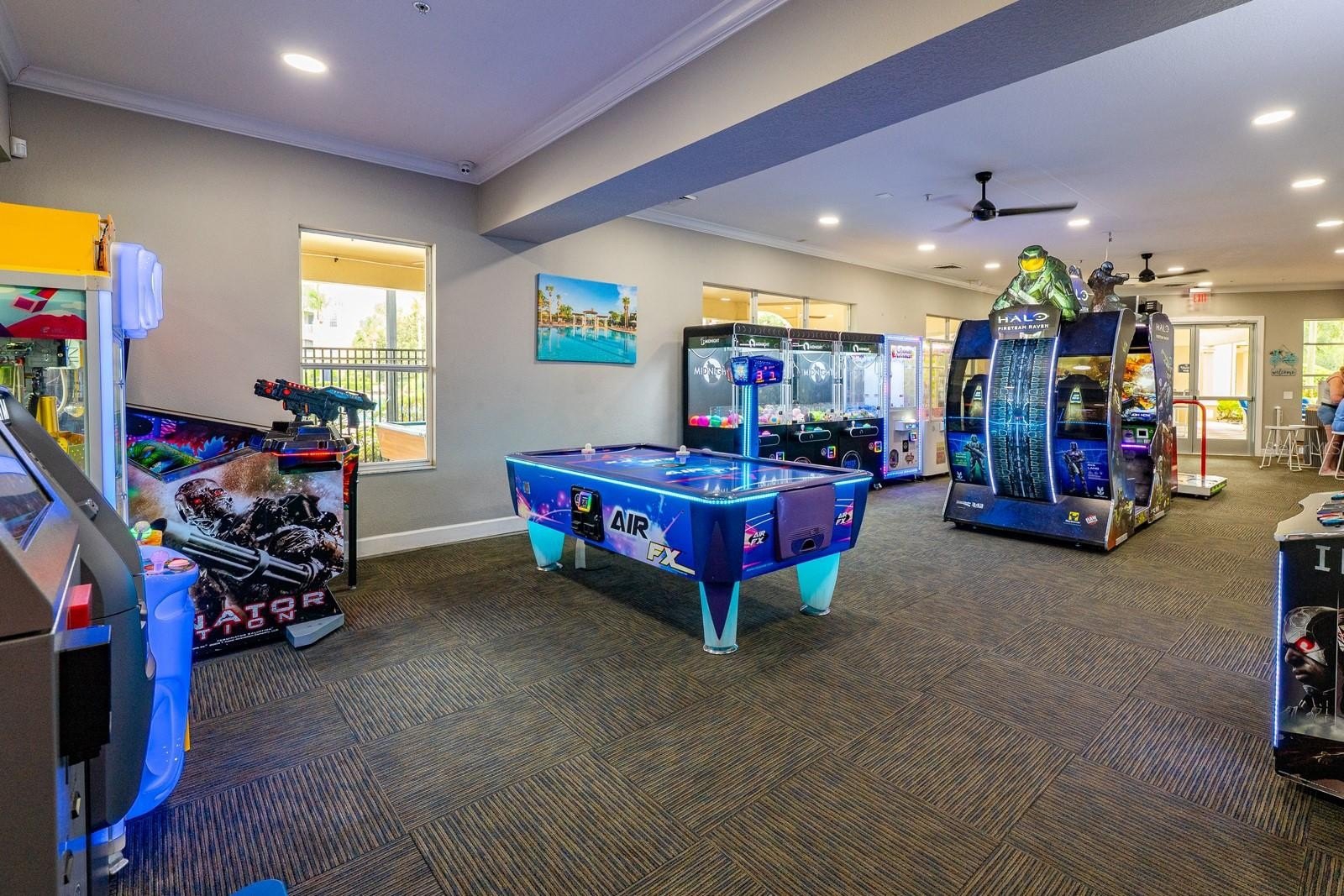 Welcome to Ventura at Windsor Hills, where RESORT-STYLE LIVING and unbeatable convenience come together! This first-floor, 3-bedroom, 2-bath condo is in excellent condition and comes FULLY FURNISHED, making it truly turnkey for use as a vacation rental, investment property, or personal retreat. With SHORT-TERM RENTALS ALLOWED, this is a fantastic opportunity in one of Central Florida’s most desirable resort communities. Inside, the condo’s architectural design shines with ELEGANT ARCHED DOORWAYS and decorative cutouts that add character and charm. The OPEN FLOOR CONCEPT features ceramic tile in the main areas and laminate flooring in the bedrooms for a clean and low-maintenance style. The primary suite offers an en suite bath and privacy from the other two bedrooms thanks to a SPLIT-BEDROOM DESIGN. A private, covered, screened patio provides a quiet spot to relax after a day of fun. Windsor Hills is a 24-HOUR GUARD-GATED community packed with FABULOUS FAMILY-FRIENDLY amenities that make it feel like a destination all its own. Residents and guests enjoy a resort-style pool, waterslides, splash pad, hot tub, fitness center, arcade, movie theater, sports courts, playgrounds, and clubhouse, along with on-site dining and convenience options. With its UNBEATABLE LOCATION, you're just 2 miles from Walt Disney World, and close to Universal Orlando, SeaWorld, Margaritaville Resort, golf courses, shopping, and dining along US-192, as well as QUICK ACCESS to I-4 and SR-429 for easy trips to Orlando International Airport and all of Central Florida’s attractions. Whether you’re looking for a fully furnished vacation condo, an income-producing short-term rental, or your own getaway near the parks, this WINDSOR HILLS GEM is ready for you.