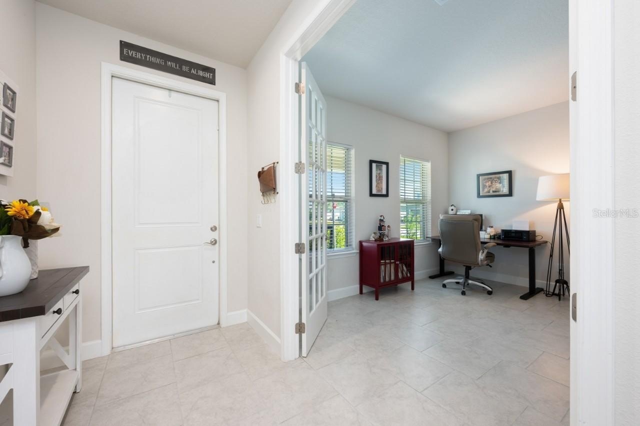 One or more photo(s) has been virtually staged. Seller may consider buyer concessions if made in an offer ~ Welcome to Kensington Reserve, a beautiful GATED COMMUNITY in the heart of Sanford offering fantastic AMENITIES - like a zero-entry pool, playground, and green space — and this spacious 2021 BUILT HOME that has everything you could want and more (including SOLAR!). Inside, a thoughtfully designed interior and OPEN FLOOR PLAN await with TILE FLOORING throughout the main level, a dedicated office (or 5th bedroom!), and a convenient half bath for guests. The spacious kitchen is a true showstopper – featuring shaker-style cabinetry, QUARTZ COUNTERTOPS, a large ISLAND with bar seating, STAINLESS STEEL APPLIANCES, recessed and pendant lighting, and a WALK-IN PANTRY. The kitchen is open to the living and dining areas and natural light fills every corner, creating a bright, welcoming vibe! The second floor is where you will find four comfortable bedrooms, the laundry room, and a large FLEX/BONUS/LOFT area perfect for a media room, playroom, or second living space. The PRIMARY SUITE is generously sized with excellent closet space (WALK-IN!) and a relaxing private bath. Enjoy Florida living outdoors with a large SCREENED LANAI, PRIVACY FENCED YARD, and plenty of space to play – complete with a LEMON TREE. The CORNER LOT adds to the sense of space, and the tandem 3-CAR GARAGE provides ample parking and storage. Thoughtful upgrades and systems include: a whole-home **SOLAR SYSTEM (2022)** to help keep energy costs low, WATER SOFTENER & FILTRATION SYSTEM, entire-home SURGE PROTECTOR, and new luxury vinyl plank flooring (2024) in the guest bedroom. Additional highlights include: double-pane windows, paver driveway, covered front porch, and beautiful landscaping that enhances the CURB APPEAL. Located just South of E Lake Mary Blvd, you are just minutes from SR 417, shopping, dining, lakes, and parks – making this the ideal home for convenience and comfort. MOVE IN READY and feels like new! Call today to schedule a tour and experience the versatile floor plan, endless natural light, and every modern comfort already done and in place. Welcome to Kensington Reserve and your NEW HOME SWEET HOME!
