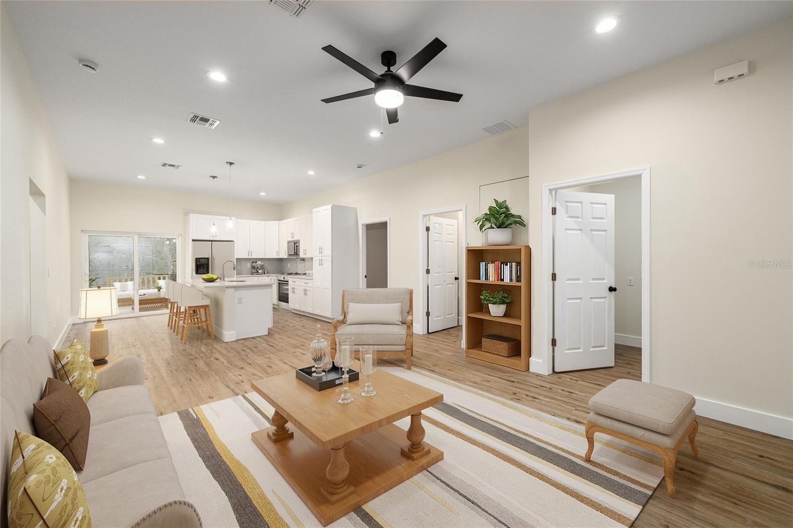 Outstanding NEW home available only minutes from everything! This 3bed/2.5bath new construction home in the pristine community of Ocklawaha is only minutes to The Villages, just south of Ocala and west to Belleview--offers luxury and closeness to shopping, schools & medical. The unique build is just waiting to be yours! From Whirlpool appliances to OVERSIZED garage, to 10' ceilings, ceiling-light fans in every room, quartz countertops, LVP flooring throughout, a spa-like primary shower with dual-sinks and amp walk-in closets, a stovetop pot-filler for easy pasta-night cooking! A large COVERED lanai for a nice Autumn evening cookout. (Lanai is wired an electrical box for a ceiling light/fan kit.) This home is loaded with premium finishes. From the oversized garage (EV charger) to whole-room generator hook-up, to spa-like features such as dual showerheads in the owner's suite--this home is a must see! Act quick! Available for VA, FHA, USDA, Conventional or Private Lending.