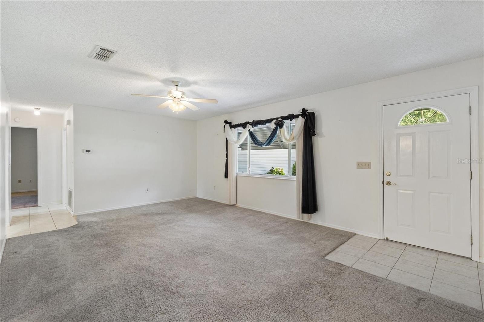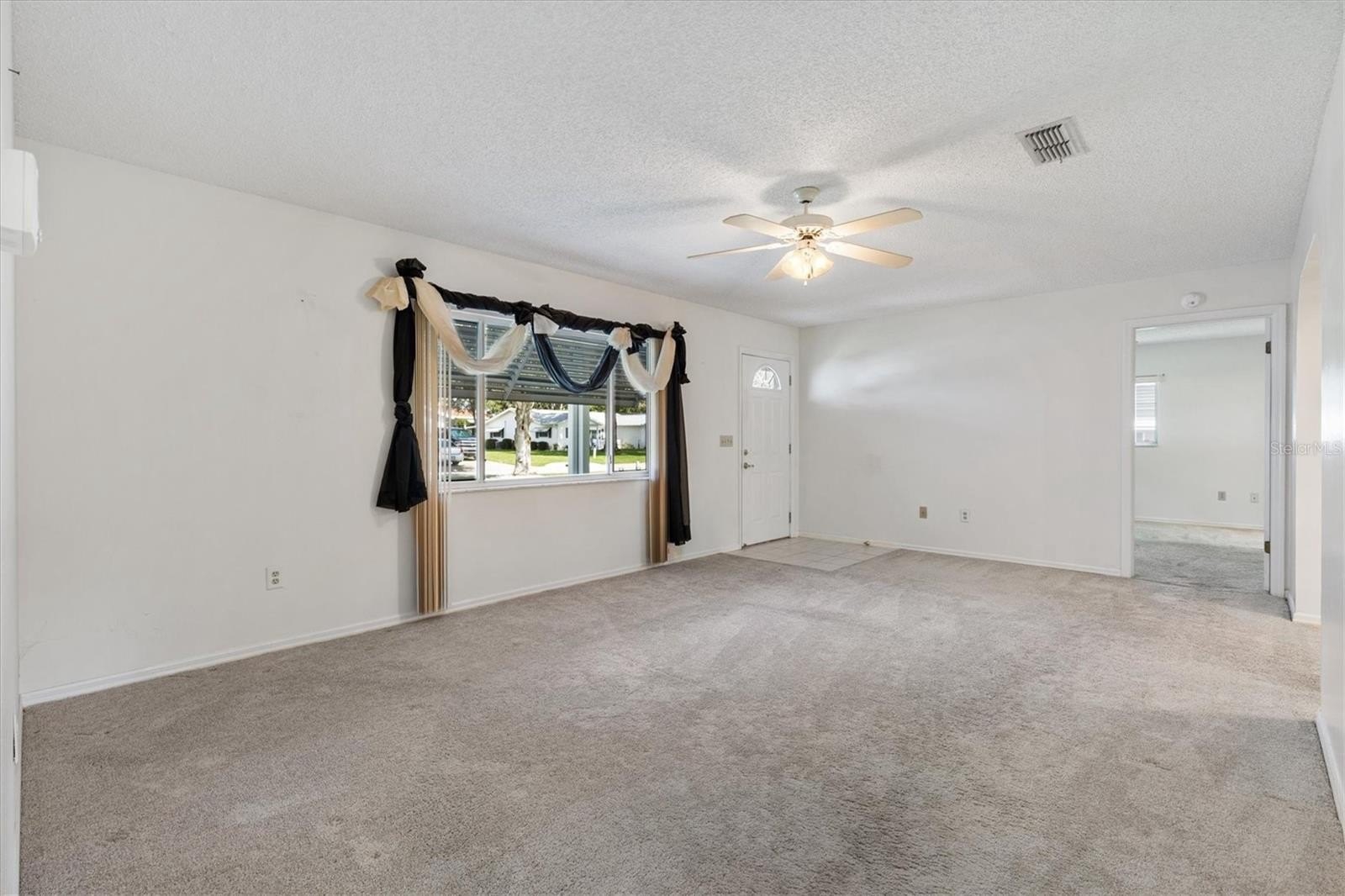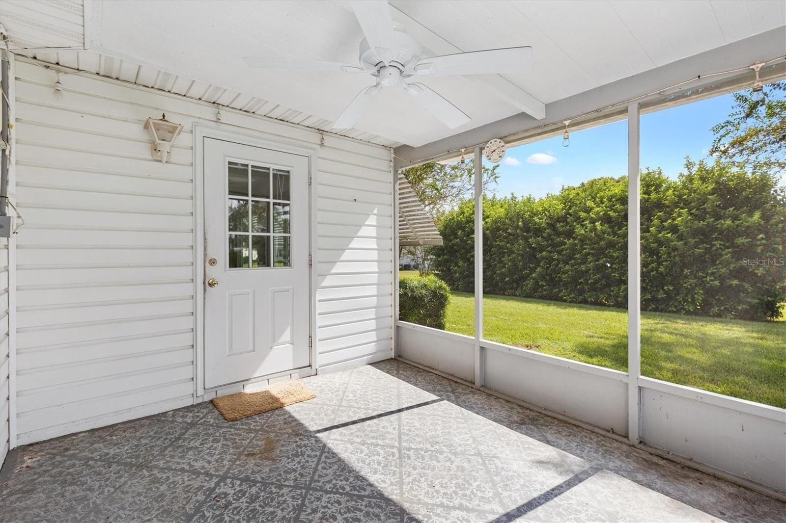 One or more photo(s) has been virtually staged. Spruce Creek South, 55+ Gated Golf Course Community just 2 miles north of The Villages. This 2 BR, 2 BA Chestnut floor plan with split bedrooms has 1,496 sq ft of indoor living space and a screened lanai. Situated on a spacious lot, .25 acres. Room to add a Golf Cart Garage, and space between your neighbors. The living room is spacious and leads to the dining room & Kitchen. The kitchen has updated cabinets, stainless appliances and ceramic tile floor. Beyond the dining room is the family/bonus room which leads to your screened lanai. What a great space for your morning coffee. The master bedroom is to the left of the living room and features a walk-in closet & an updated tiled shower with frameless glass doors & a matching tile floor. The cabinets have been updated and the large lighted mirror over the vanity is amazing. The 2nd bedroom is to the right of the living room which provides plenty of privacy for your guests and has a walk-in closet. The guest bath has an updated walk-in shower with frameless glass doors, updated cabinets and lighted mirror. There are 4 solar tubes in the home. The kitchen, master bath, guest bath and laundry area each have a solar tube which provides an abundance of natural light. And the two-car garage has a newer Carrier Mini-Split unit to keep you cool in the summer heat and warm in the winter. All the high dollar updates have been made for you. Come and make this your forever home! The seller is motivated, schedule your showing today! ROOF 2022; HVAC 2018; Carrier Mini Split 2023