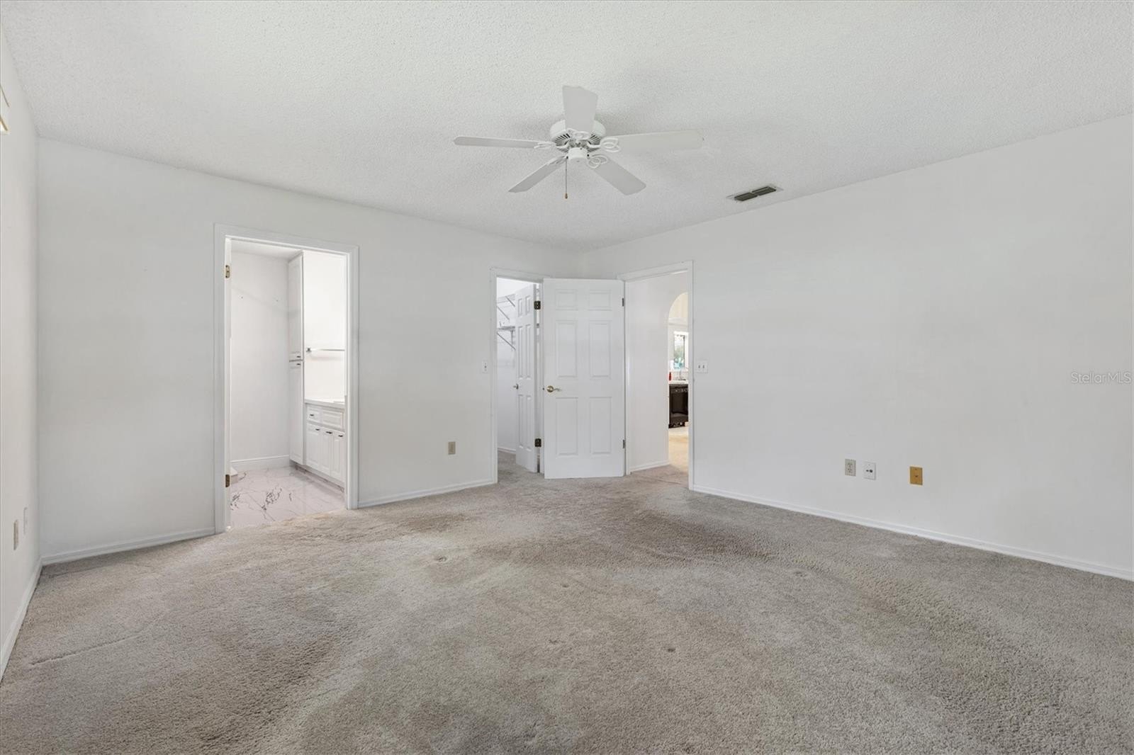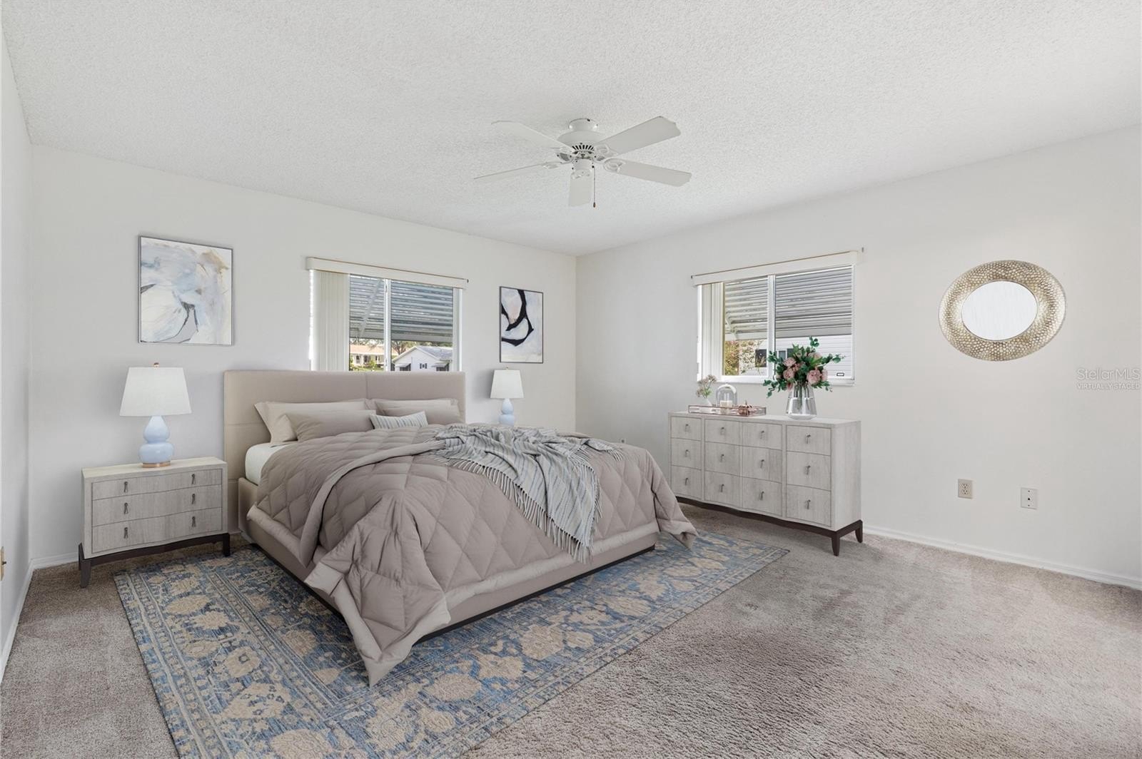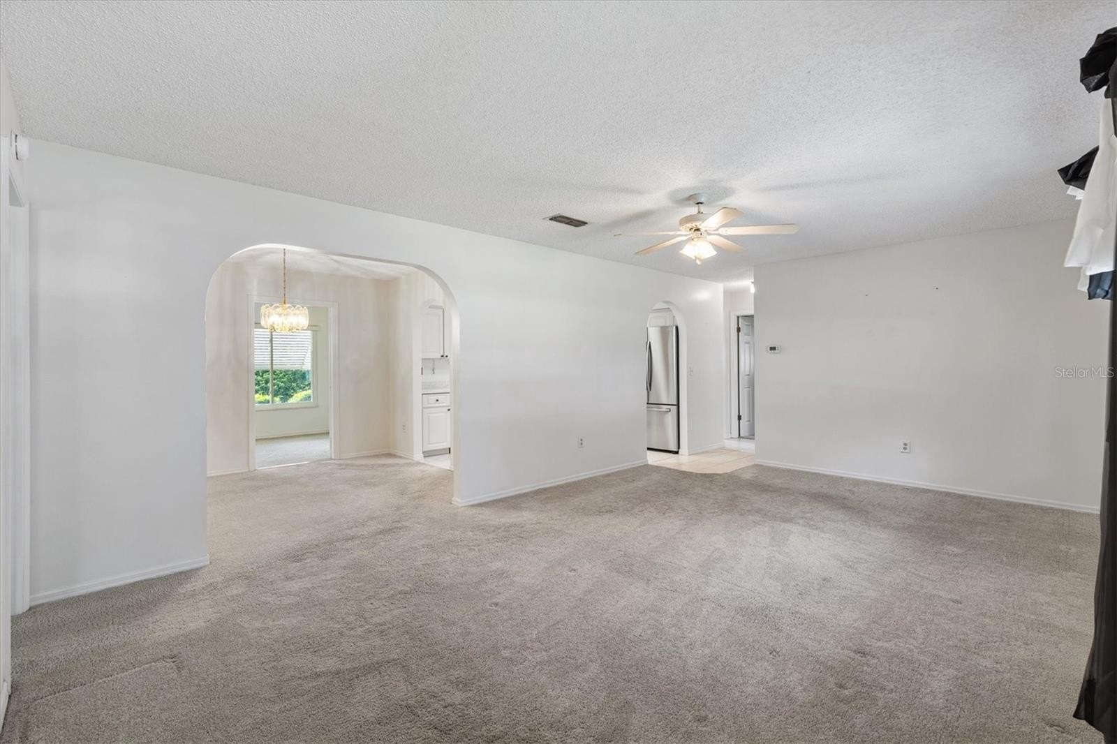 One or more photo(s) has been virtually staged. Spruce Creek South, 55+ Gated Golf Course Community just 2 miles north of The Villages. This 2 BR, 2 BA Chestnut floor plan with split bedrooms has 1,496 sq ft of indoor living space and a screened lanai. Situated on a spacious lot, .25 acres. Room to add a Golf Cart Garage, and space between your neighbors. The living room is spacious and leads to the dining room & Kitchen. The kitchen has updated cabinets, stainless appliances and ceramic tile floor. Beyond the dining room is the family/bonus room which leads to your screened lanai. What a great space for your morning coffee. The master bedroom is to the left of the living room and features a walk-in closet & an updated tiled shower with frameless glass doors & a matching tile floor. The cabinets have been updated and the large lighted mirror over the vanity is amazing. The 2nd bedroom is to the right of the living room which provides plenty of privacy for your guests and has a walk-in closet. The guest bath has an updated walk-in shower with frameless glass doors, updated cabinets and lighted mirror. There are 4 solar tubes in the home. The kitchen, master bath, guest bath and laundry area each have a solar tube which provides an abundance of natural light. And the two-car garage has a newer Carrier Mini-Split unit to keep you cool in the summer heat and warm in the winter. All the high dollar updates have been made for you. Come and make this your forever home! The seller is motivated, schedule your showing today! ROOF 2022; HVAC 2018; Carrier Mini Split 2023