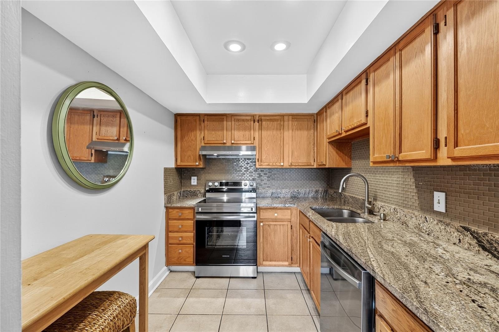 This beautifully updated 1-bedroom, 1-bath unit sits on the 3rd floor and features a comfortable living space with elevated views of downtown. The kitchen has been nicely refreshed with granite countertops, brand-new stainless steel appliances (range, refrigerator, hood vent, and dishwasher), and dual closets for pantry and overflow storage. The spacious primary bedroom boasts towering windows that fill the space with natural light and a large walk-in closet for added convenience. The bathroom has also been upgraded with granite counters, a tiled tub surround, and a tub/shower combination.