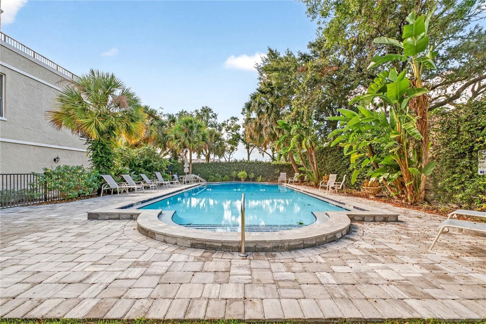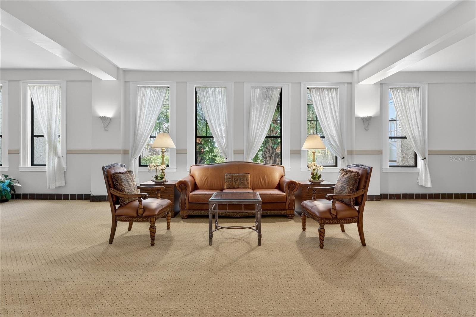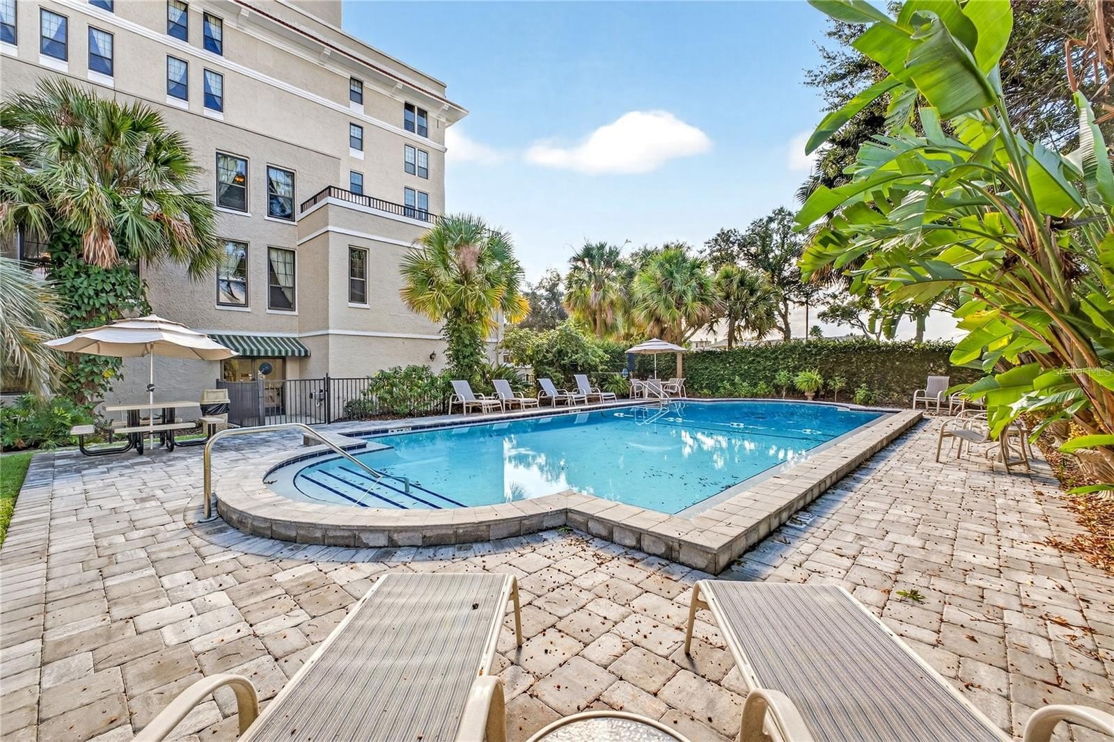Beyond your front door, The Haven offers secure electronic key-fob building access, elevators, a community pool, assigned parking, additional storerooms, and on-site laundry facilities. Residents also enjoy a grand historic lobby with original and updated details, a private pool courtyard that feels like a tranquil retreat—surrounded by lush landscaping, creeping fig walls, and stately palms—and convenient spaces like a mailroom plus cozy library/reading areas.