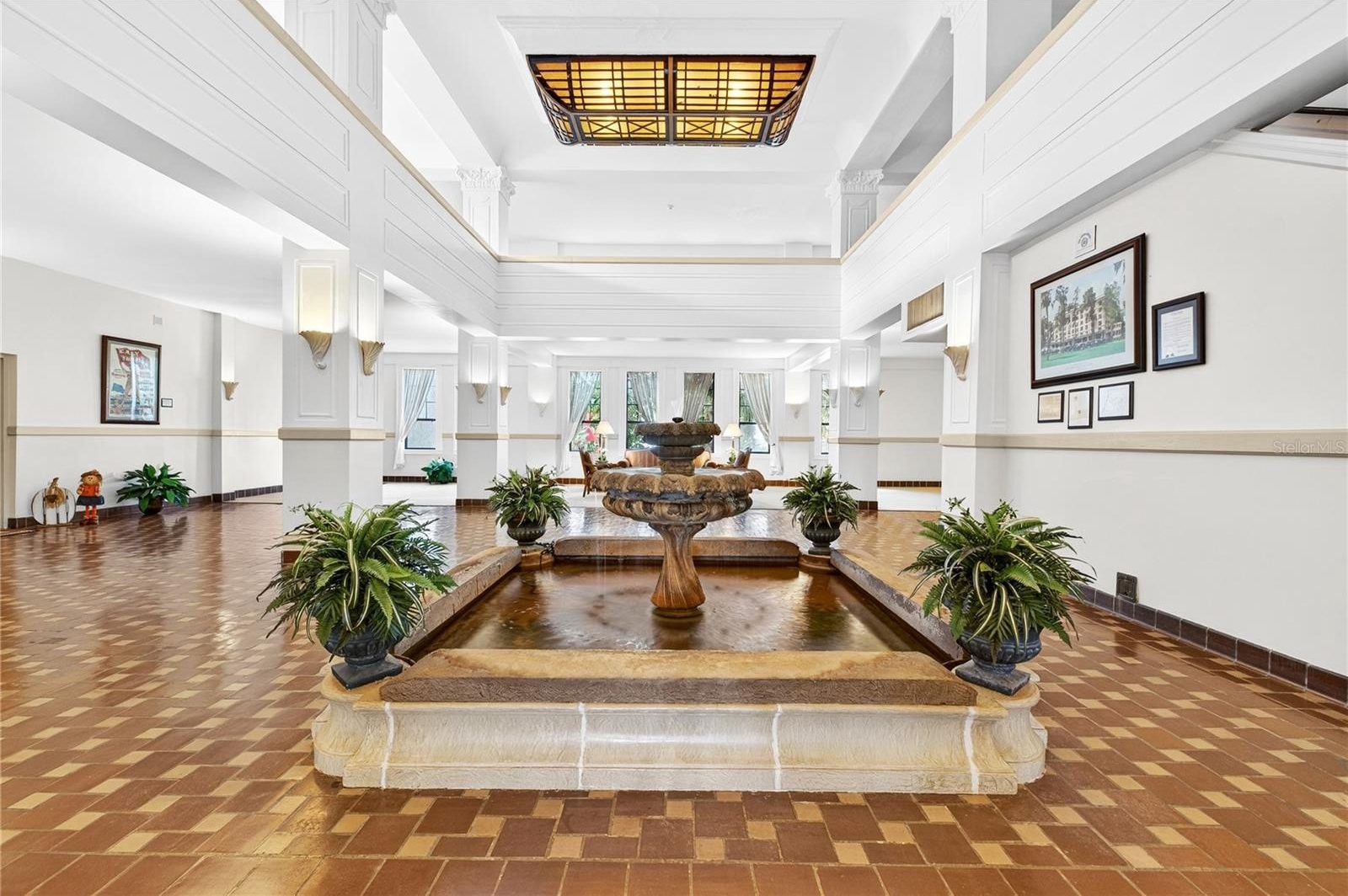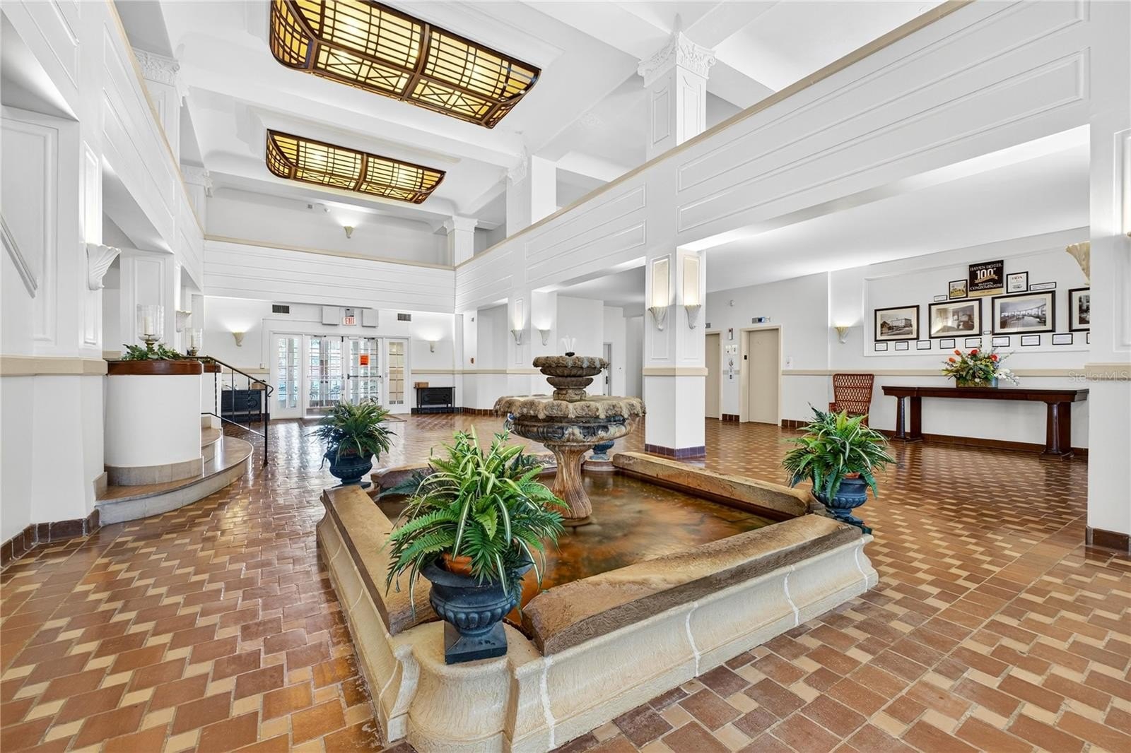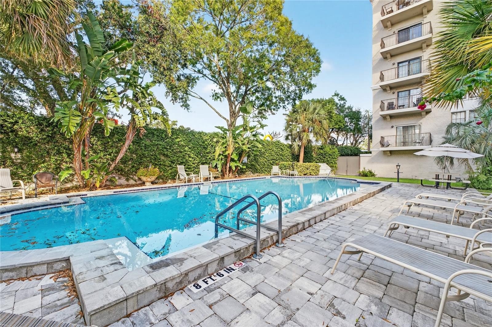 Beyond your front door, The Haven offers secure electronic key-fob building access, elevators, a community pool, assigned parking, additional storerooms, and on-site laundry facilities. Residents also enjoy a grand historic lobby with original and updated details, a private pool courtyard that feels like a tranquil retreat—surrounded by lush landscaping, creeping fig walls, and stately palms—and convenient spaces like a mailroom plus cozy library/reading areas.
