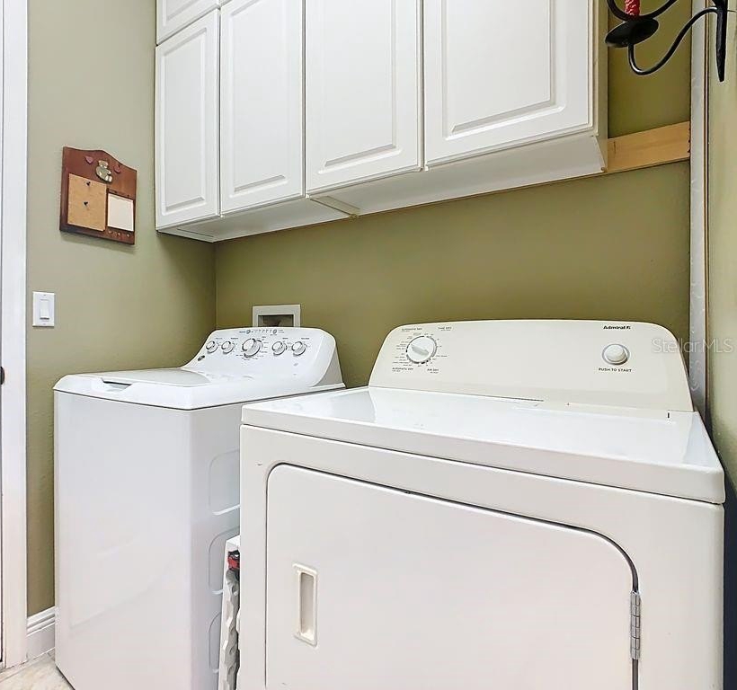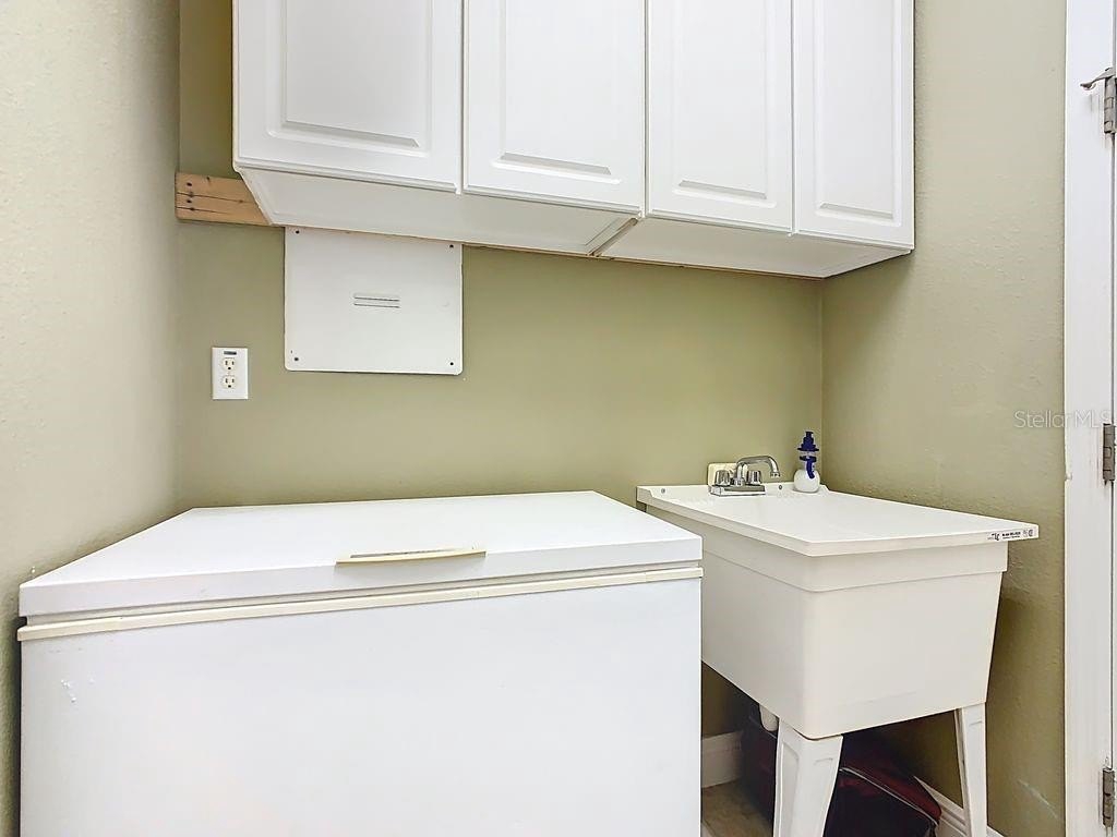 Laundry room includes the washer/dryer, and Freezer. It has plenty of over head cabinets and laundry sink.