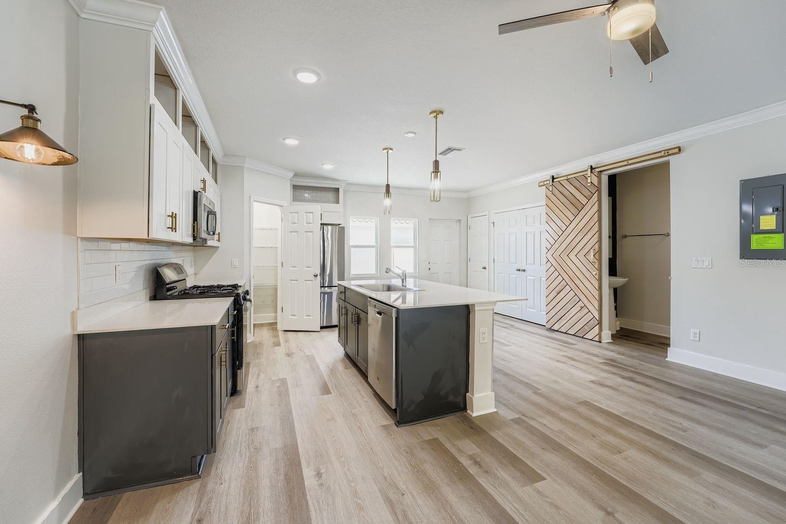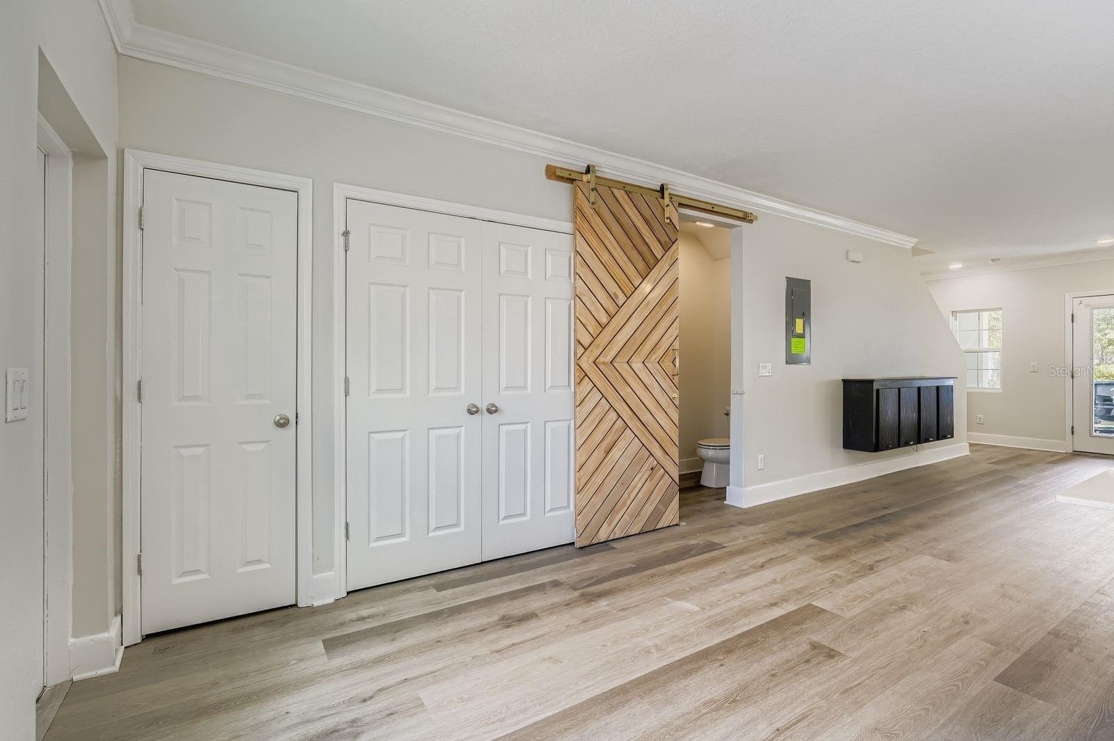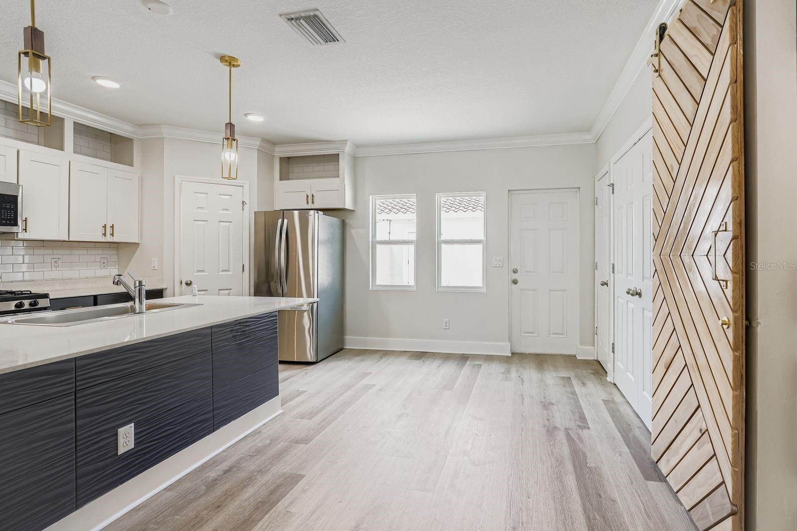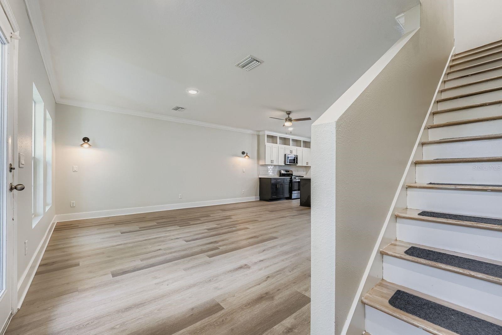 Located in one of Florida’s most desirable master-planned communities, this stunning residence is surrounded by million-dollar homes and world-class amenities—all at a fraction of the price. Step inside to discover a professionally redesigned interior that feels like a five-star retreat. Features include creamy Beachwood engineered flooring, crown molding, custom-built cabinetry, and a remodeled kitchen with quartz counters and pendant lighting. Every bathroom has been upgraded with floor-to-ceiling porcelain tile, LED mirrors, quartz counters, and spa-like finishes. Custom details such as a solid red oak barn door, resized 8-ft entryway, and handcrafted red oak stairs set this home apart from anything else in Starkey Ranch. Enjoy the outdoors in your private, paved courtyard—perfect for BBQs or quiet relaxation. Or take advantage of Starkey Ranch’s incredible amenities: resort-style pools, 12+ miles of scenic trails, community parks, dog parks, and a full calendar of social events. Just 6 miles away, the 42-mile Suncoast Trail offers even more opportunities for adventure. Whether you’re looking for an active lifestyle, a serene retreat, or the perfect place to gather with family and friends—this home delivers it all. Don’t miss your chance to own the most unique townhome in Starkey Ranch.