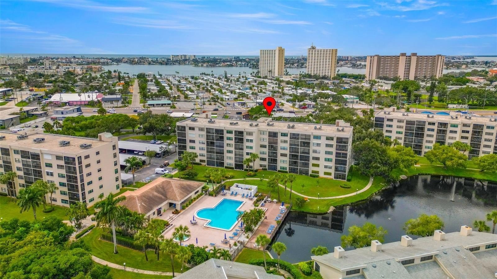 Welcome to Pasadena Cove, a highly sought-after gated, pet-friendly, and non-age-restricted community in St. Petersburg, Florida, known for its lush landscaping, resort-style amenities, and no upcoming special assessments thanks to recently passed milestone inspections. This spacious 2-bedroom, 2-bath waterfront condo for sale offers a desirable split-bedroom floor plan, with the owner’s suite and guest accommodations positioned on opposite sides of the living space for maximum privacy. The bright, open-concept design flows seamlessly to a screened balcony overlooking the beautifully manicured grounds and tranquil pond — the perfect spot to enjoy your morning coffee or unwind at sunset. The kitchen features granite countertops, stainless steel appliances (including a 2023 microwave), ample cabinetry, and a cozy breakfast nook with large bay windows. The owner’s suite showcases serene pool and pond views, private balcony access, and a walk-in closet with custom built-in shelving, providing both generous storage and thoughtful design. The en-suite bath offers comfort and privacy, while the guest bedroom and full bath are ideally located near the entry. Additional highlights include updated flooring in both bedrooms, an in-unit laundry closet, a newer 2021 HVAC and water heater, and a deeded parking space. Pasadena Cove residents enjoy a marina with boat slips, a heated pool and spa, a clubhouse with kitchen, fitness center, shuffleboard, billiards, a walking path and boardwalk along Boca Ciega Bay, and concierge service. Perfectly located in Pinellas County just minutes from St. Pete Beach, Treasure Island, Tyrone Square Mall, and very close to shopping and dining, this home combines comfort, convenience, and the best of the Florida coastal lifestyle.