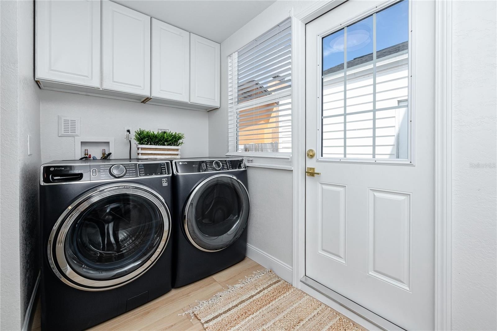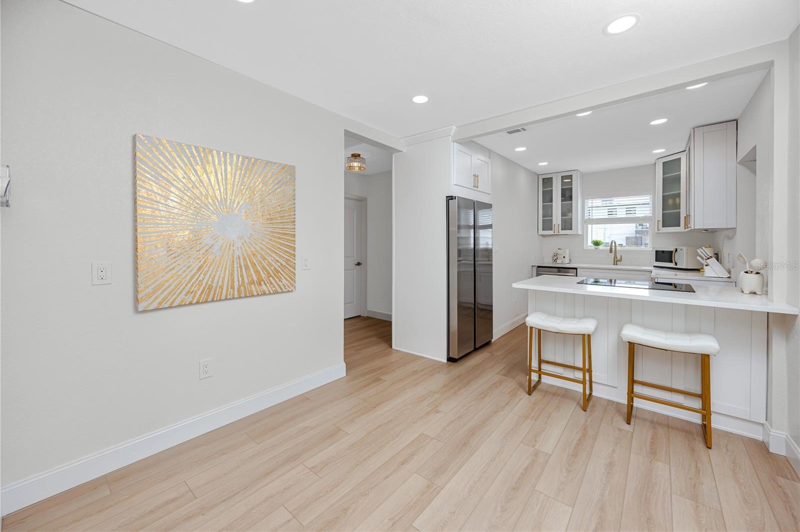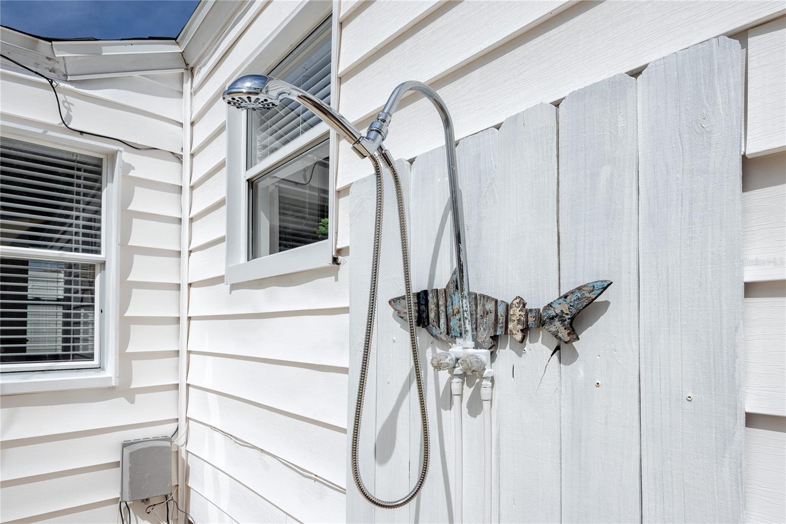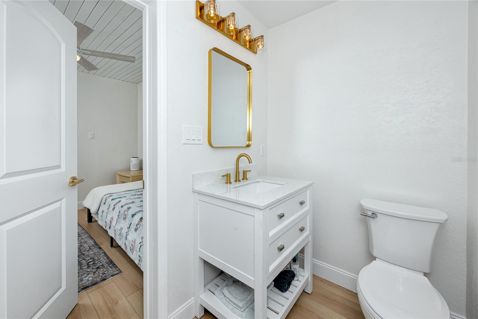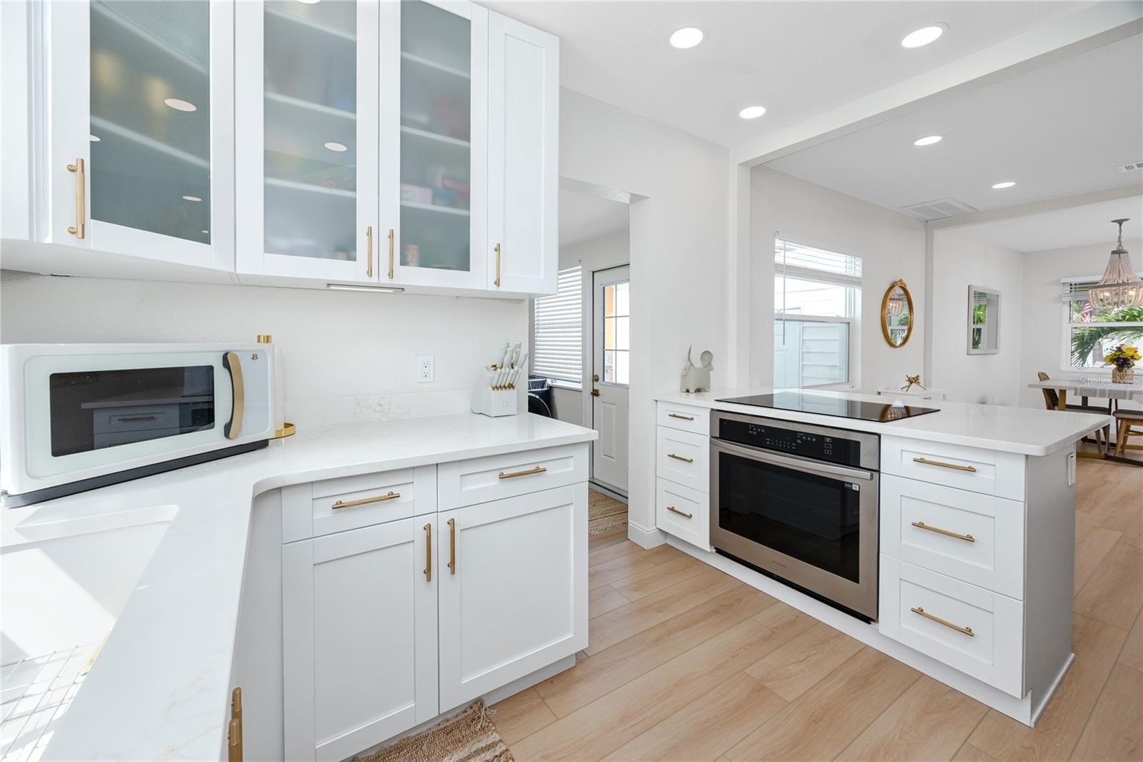 Better than new this beautifully renovated single-family home offers new electrical, plumbing, insulation, roof (2023), hurricane-rated windows, and luxury vinyl plank flooring. The open-concept floor plan features a bright living area with a modern stone fireplace and a coastal vibe. The kitchen stands out with quartz countertops, upgraded white cabinetry, a built-in oven, glass cooktop range, and a large island with breakfast bar seating. The rear bedrooms provide flexible options for today’s needs. One includes a barn door closet and private slider to the backyard, while the second can easily convert into a private-entry guest suite—ideal for multigenerational living, long-term guests, or rental potential. Both bathrooms feature fully updated tiled showers and modern vanities. Outdoor living is just as impressive, with a newly installed brick paver patio, landscaped private fenced yard, outdoor shower, and plenty of space to add a pool. The elevated HVAC condenser and built-in garage storage—perfect for bikes, paddleboards, or kayaks—add both functionality and peace of mind.