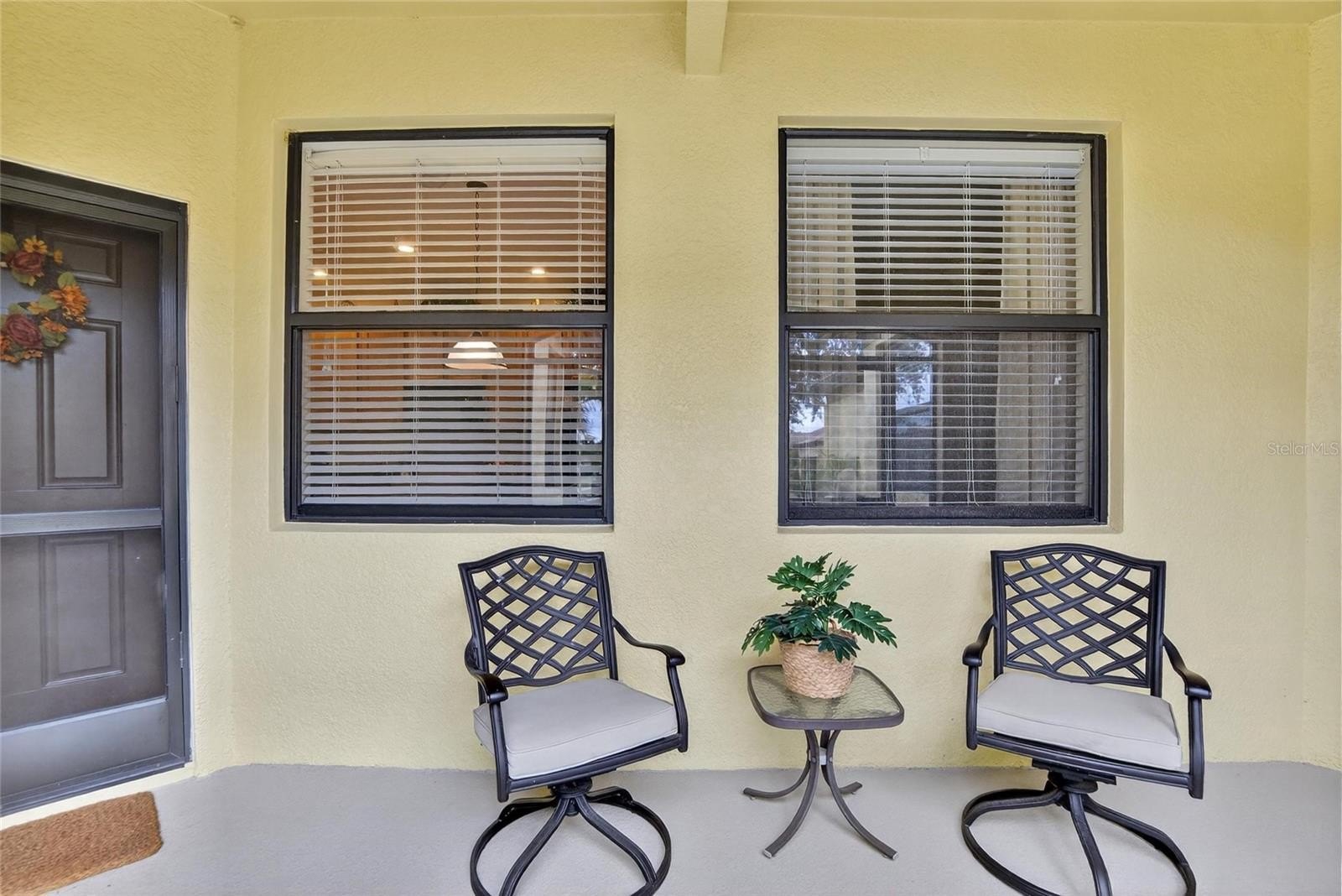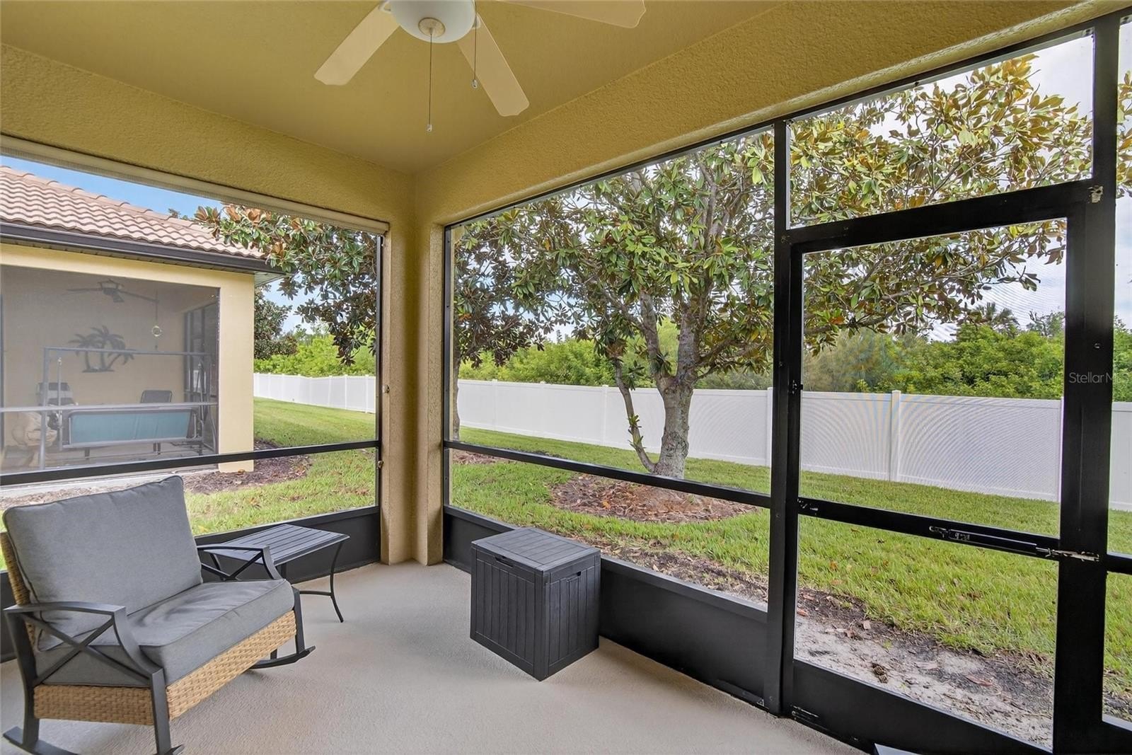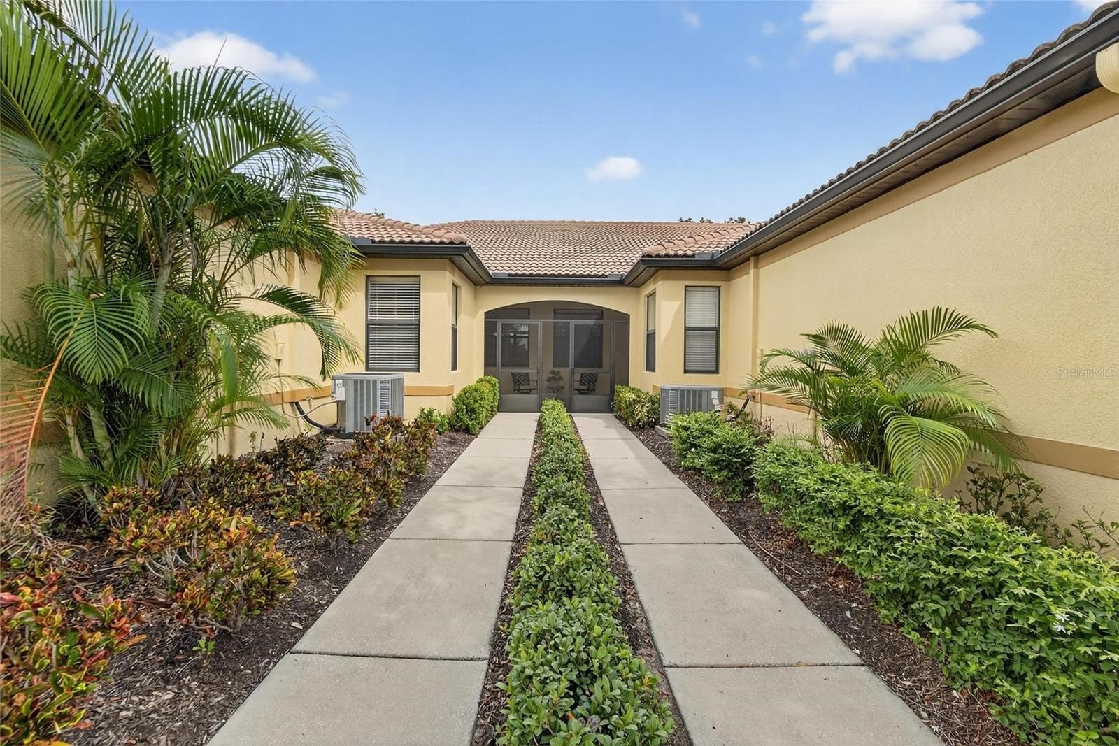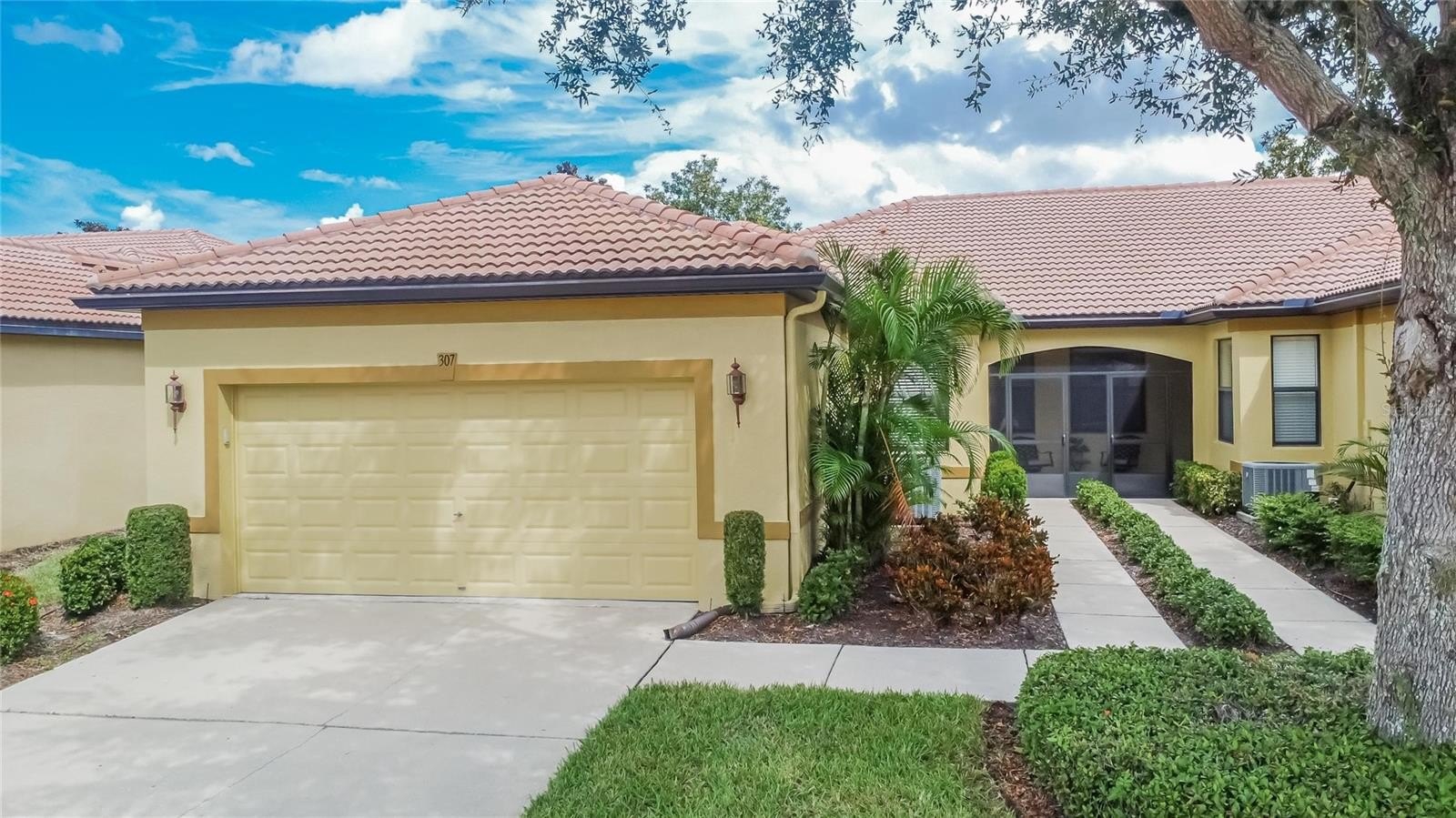 The layout also features a screened front entry, a private screened lanai with sunscreen/shade, and a 2-car garage with convenient interior laundry.