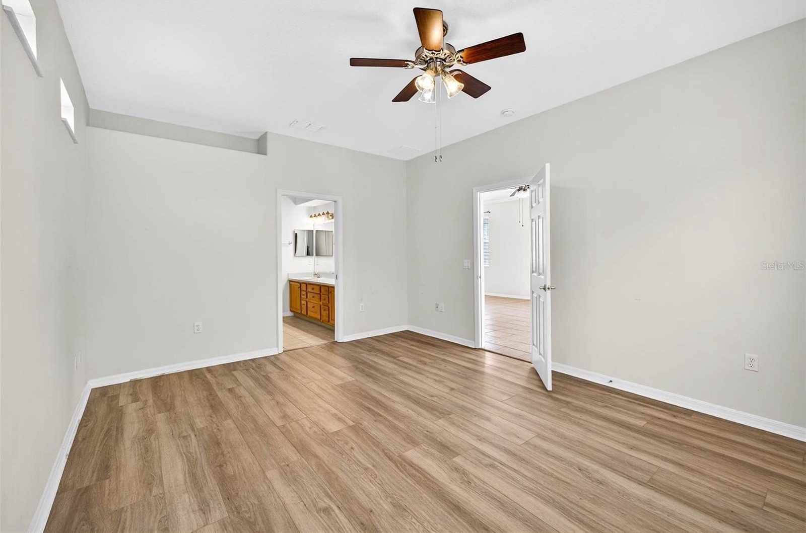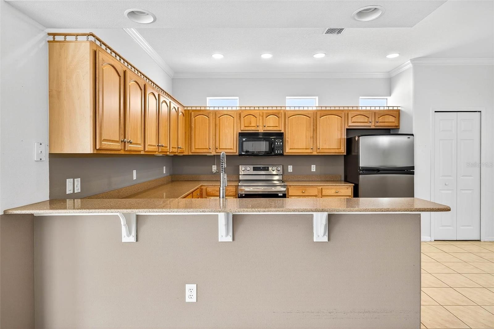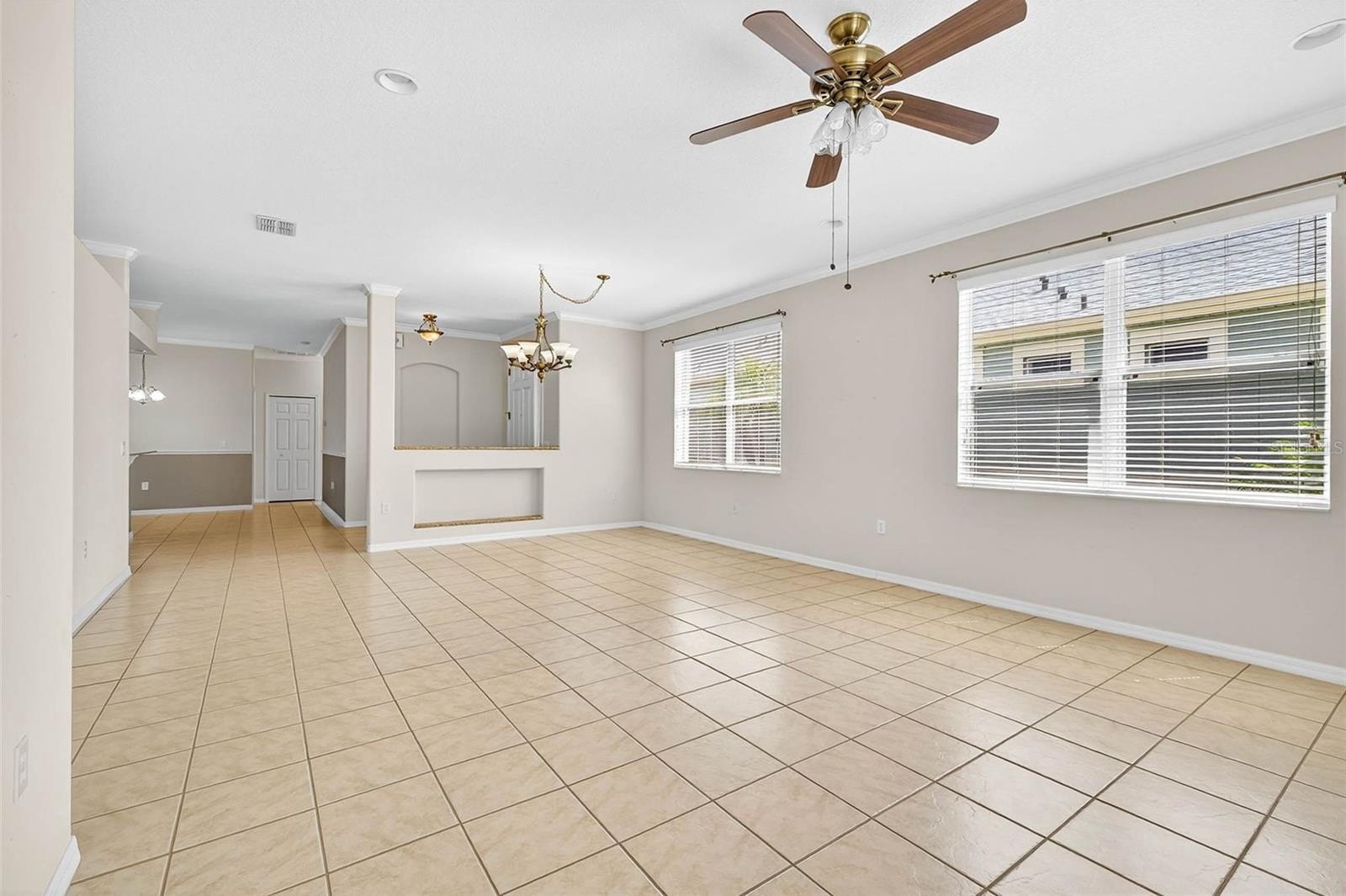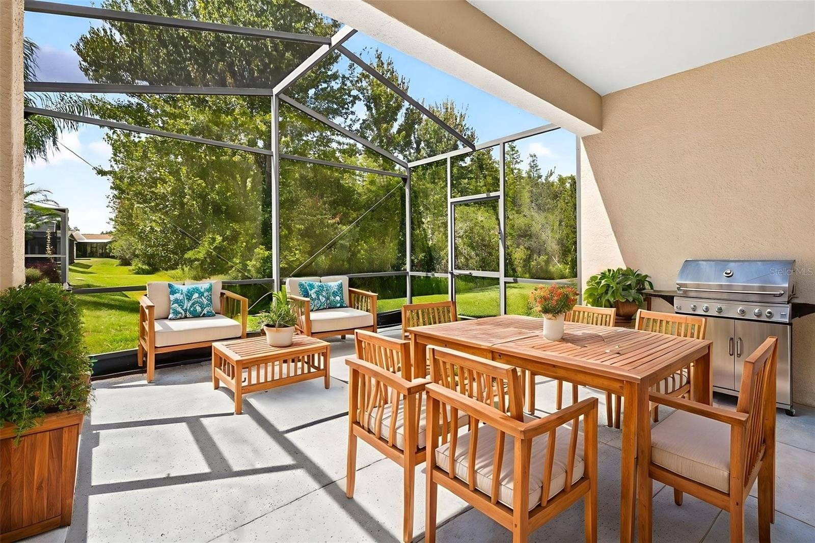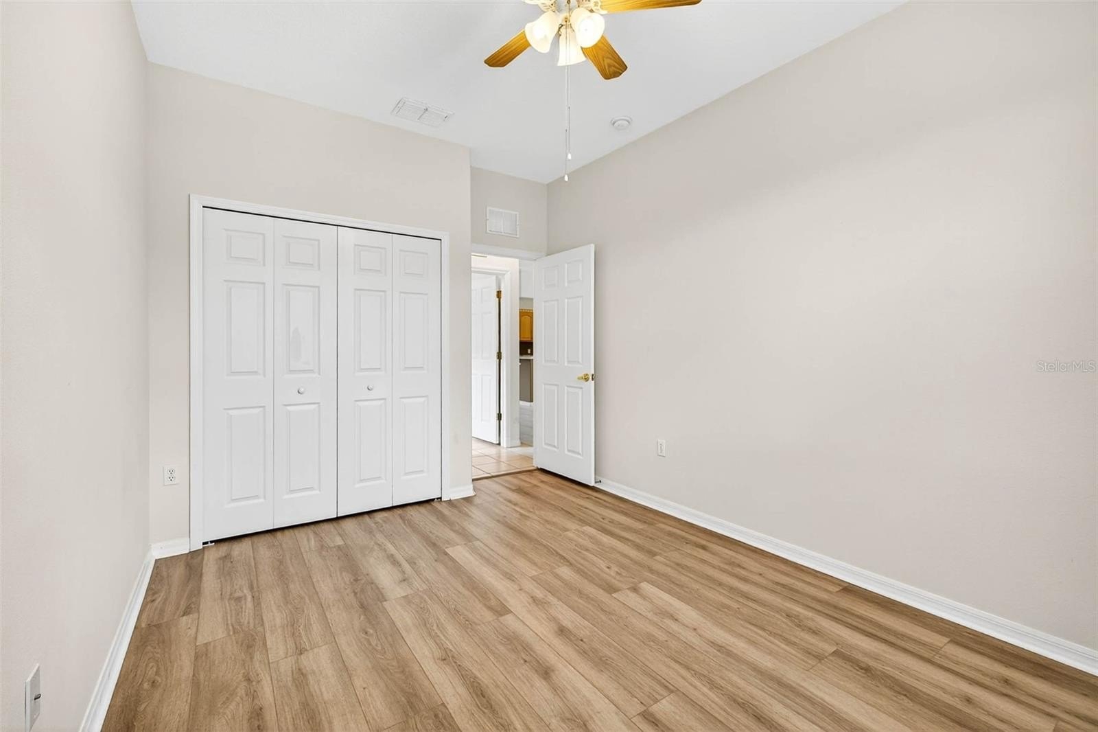 One or more photo(s) has been virtually staged. Welcome to this beautifully maintained, light-filled home in The Groves! This 3-bedroom, 2-bath residence features a spacious open floor plan with a living/dining area, large kitchen with eat-in space, and a screened lanai that extends your living outdoors. The primary bedroom offers serene conservation views, an en-suite bath with dual sinks and walk-in shower, plus an oversized walk-in closet. Highlights include quartz countertops, stainless appliances, indoor laundry, two-car garage with storage, a 2024 range, 2025 water heater, 2019 roof, ceiling fans in all bedrooms, tile flooring in main areas, and vinyl plank in bedrooms. The split-bedroom design ensures privacy for you and your guests. Situated on a quiet cul-de-sac with no through traffic. Homes can be leased for a minimum of 30 days, up to 4 times per year. HOA will begin painting home exteriors January 2026 - New owner can CHOOSE PAINT COLOR! The Groves is a premier gated 55+ golf course community with resort-style amenities: clubhouse, heated pool and spa, fitness center, restaurant and bar, 18-hole golf course with pro shop, plus tennis, pickleball, bocce, shuffleboard, and a dog park. Shops and restaurants are nearby—Publix is just a golf cart ride away. Call today to tour and start enjoying the best of Florida living!
