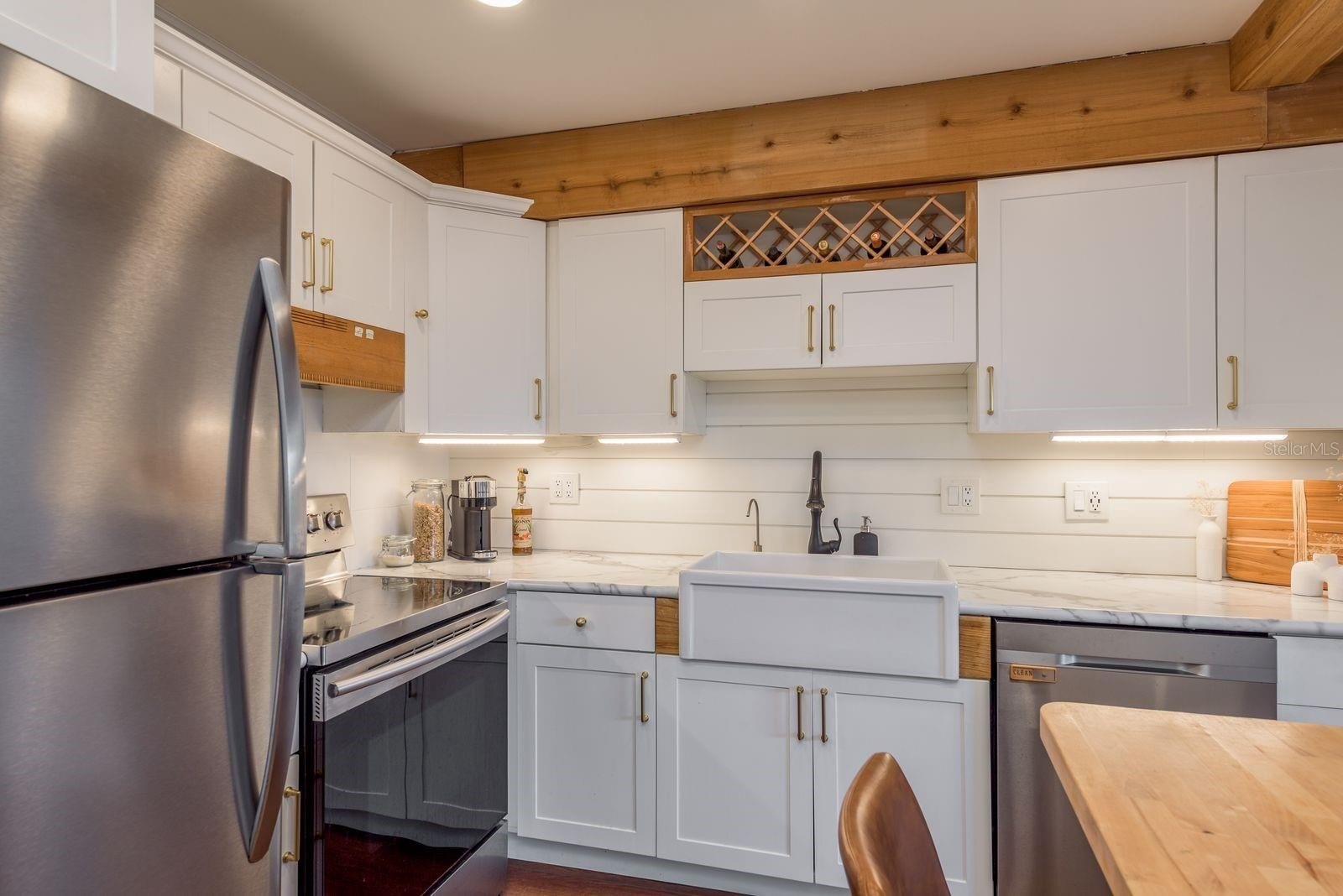 Recent upgrades and maintenance provide peace of mind: wind-mitigation study (2023), new roof (2022), new vinyl siding (2021), new seawall (2024), fully funded reserves, new irrigation (2024/2025), and St. Augustine ProVista sod (2024). Additional seller upgrades include a stilted Carrier A/C (2024) with warranty, stackable washer/dryer (2023), water heater (2023), fresh paint, updated vanities, fixtures, skylights, and kitchen hardware.