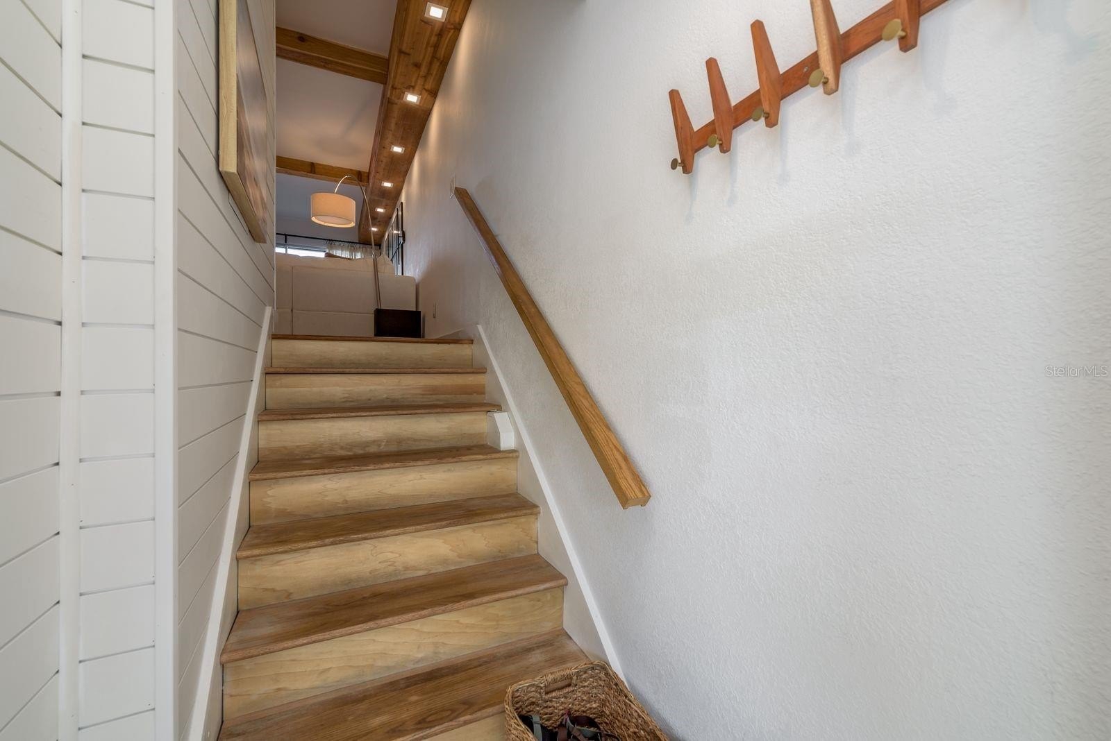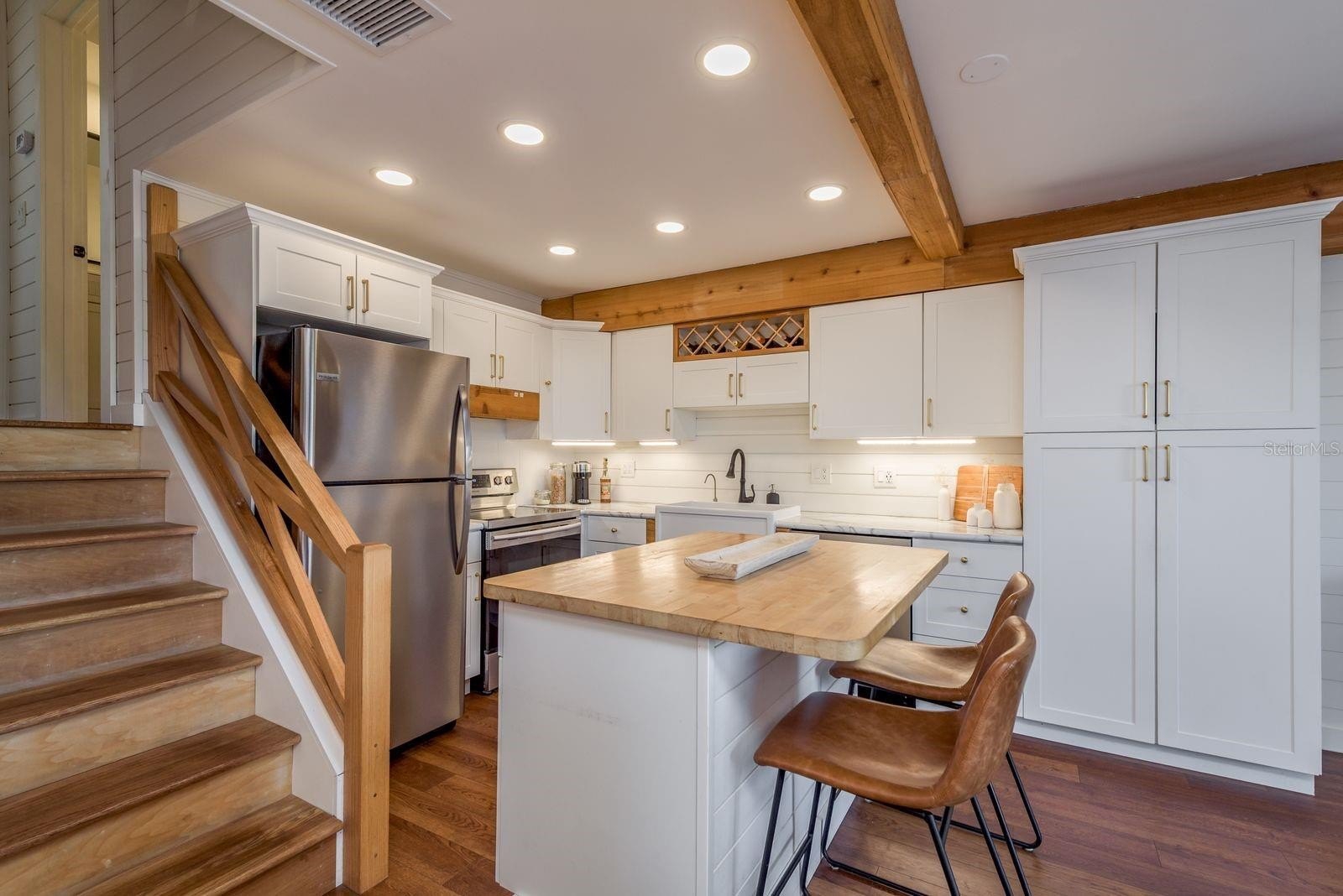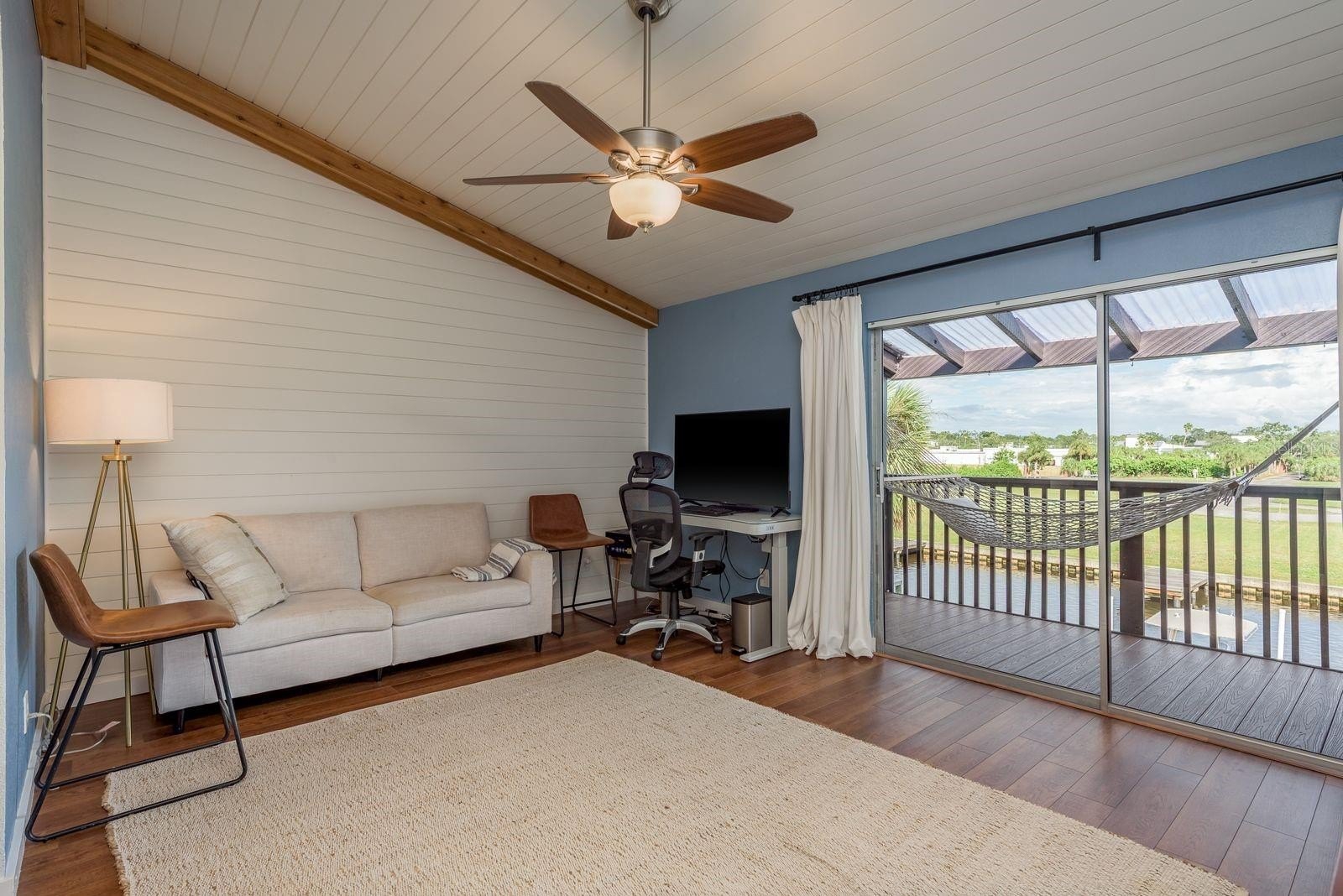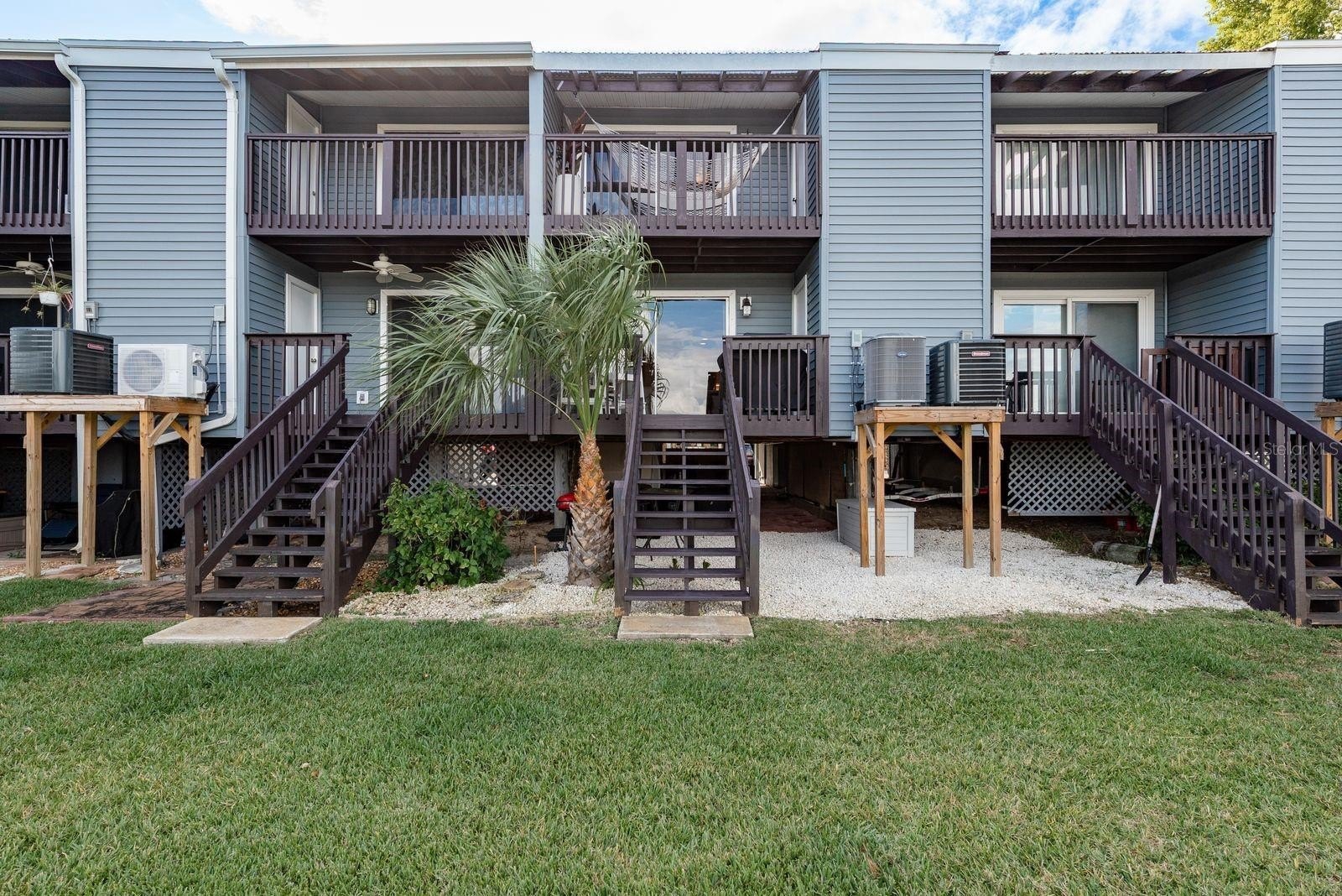 Inside, bright, modern finishes include vaulted ceilings with wood beams, shiplap accents, recessed and under-cabinet lighting, a rolling kitchen island for any occasion, solid oak stairs, consistent luxury vinyl flooring, and tiled baths. Flexible living spaces feature a loft perfect for an office or guest room. Both balconies feature durable, maintenance free Trex decking! Your outdoor living possibilities are endless here too! On the lower-level patio, imagine unwinding in your private portable hot tub, watching the sun rest over the canal, and enjoy the fruits of your labors without the yard work!!