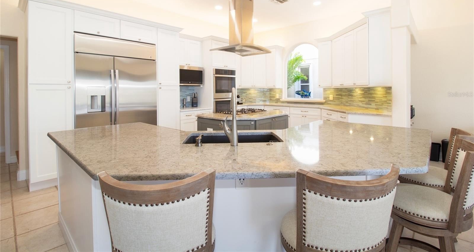 Experience the pinnacle of refined living in this architectural masterpiece, where modern sophistication meets coastal resilience. Fully upgraded and meticulously crafted to the highest standards, this tri-level estate is built to current flood elevation requirements, offering unmatched peace of mind and imperviousness to the elements—having remained completely unscathed by two recent storms. Upon entry, be captivated by the soaring 20-foot ceilings of the grand great room, a breathtaking space adorned with a custom-built mahogany bar, a temperature-controlled wine chiller, and seating for six—an entertainer’s dream. The chef’s kitchen is an epicurean sanctuary, featuring top-tier appliances, natural gas, and exquisite custom cabinetry, seamlessly flowing into the family room and breakfast nook. Here, a cozy gas fireplace and a wall of glass unveil mesmerizing views of the recently redesigned heated pool, complete with a sumptuous Jacuzzi, cascading waterfalls, and ambient lighting—a true oasis of relaxation. Beyond, a tropical, private retreat awaits. The deep-water dock, crafted from high-durability composite decking, boasts a lift and moorings for a 50-foot+ yacht—an unparalleled haven for the avid boater. Designed for versatility, this estate offers an adaptable floor plan: a ground-level suite, ideal as a fourth bedroom, executive office, or private den; two elegant guest suites on the mid-level; and, crowning the home, a magnificent top-floor primary retreat. This serene sanctuary showcases panoramic Intracoastal views, a spa-inspired bath with a jetted soaking tub, dual vanities, and an oversized glass-enclosed shower—a true indulgence in luxury. Ascend to the private loft, where a sprawling rooftop terrace invites you to savor golden sunsets with your favorite libations in hand. Whether hosting lavish gatherings or embracing tranquil solitude, this space is an epitome of elevated coastal living. Every detail of this exceptional home exudes sophistication and timeless allure, from its architectural lighting to its flawless craftsmanship. A rare fusion of elegance, comfort, and resilience, this estate is a statement of unparalleled luxury.