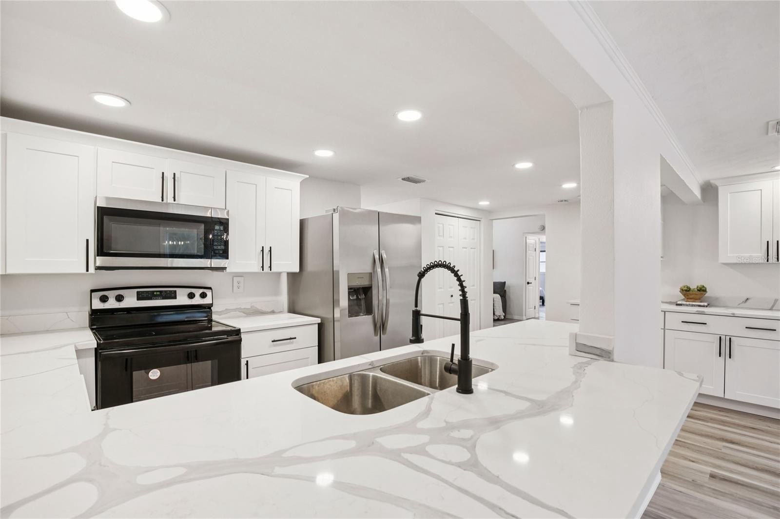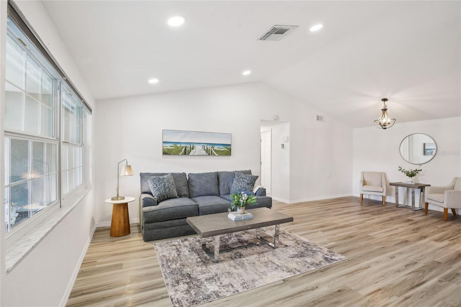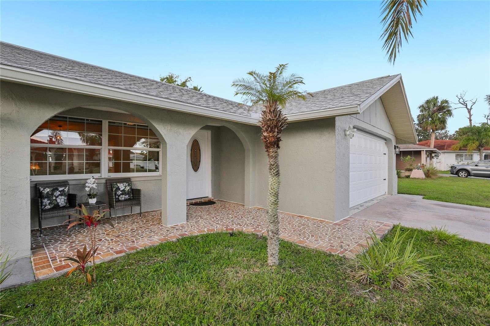 Welcome to your slice of paradise in the GOLF-CART friendly, WATERFRONT COMMUNITY of Gulf Harbors! This beautifully renovated 3-bedroom, 2-bathroom home offers 1,454 square feet of comfortable living. When you arrive, you’ll notice the lush tropical landscaping, archway details & gorgeous mosaic tile patio. Step inside and you’ll find a bright and airy OPEN LAYOUT with VAULTED CEILINGS, recessed lighting, NEW FLOORING, fresh paint, and stylish updates throughout. The kitchen is a standout with GORGEOUS QUARTZ COUNTERTOPS, stainless steel appliances and plenty of cabinetry and countertop space, perfect for entertaining or a quiet night in. The spacious primary bedroom abounds in natural light, and the additional two bedrooms are perfect for guests or a home office. All bedrooms are outfitted with Levolor light blocking window shades. Both bathrooms have been tastefully redone with MODERN FIXTURES and TIMELESS TILEWORK. Out back, enjoy your fully fenced, lush yard with paver patio and NO REAR NEIGHBORS. All major systems have been recently updated giving you peace of mind: NEW ROOF (2023), NEW HVAC (2023), NEW ELECTRICAL PANEL (2023), NEW WATER HEATER (2023). The Gulf Harbors Civic Association hosts neighborhood events throughout the year - joining is optional for a low annual fee, which also gives you access to a community BOAT RAMP to enjoy the Gulf waters. You can also join the Gulf Harbors Beach Club for just $200/year for your very own PRIVATE BEACH – a rare perk that gives you a spot to relax by the water, grill your fresh catch of the day and watch the sunset. This is more than just a home, it's the COASTAL LIFESTYLE you've always wanted.