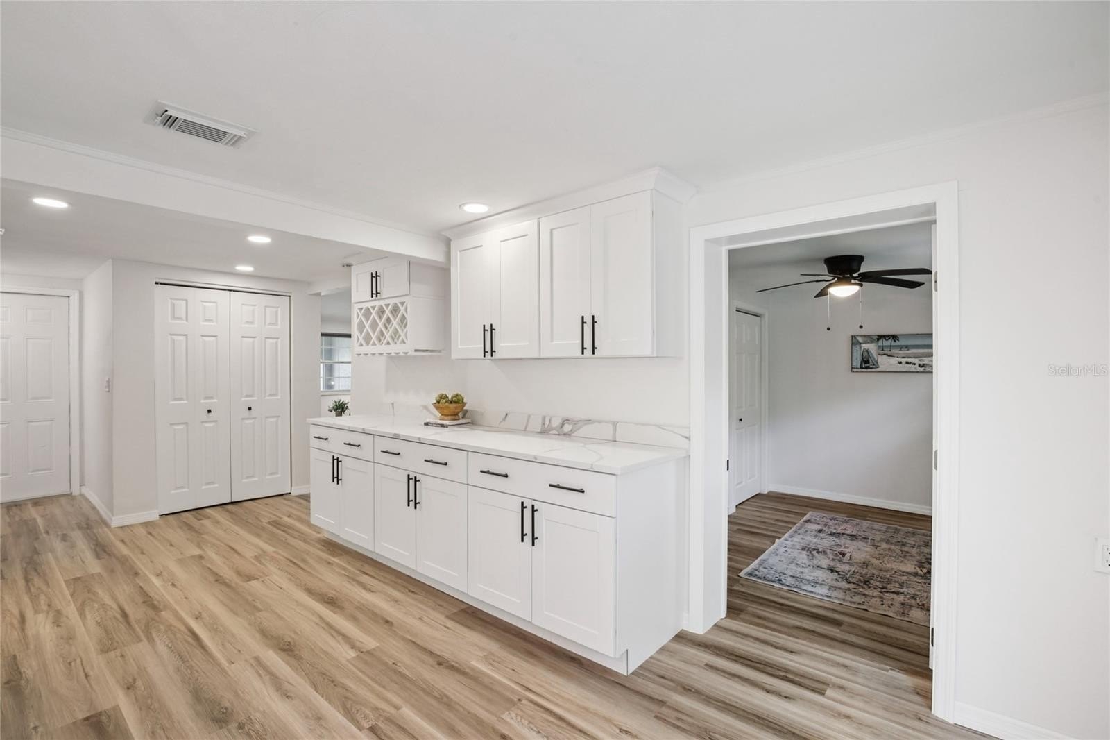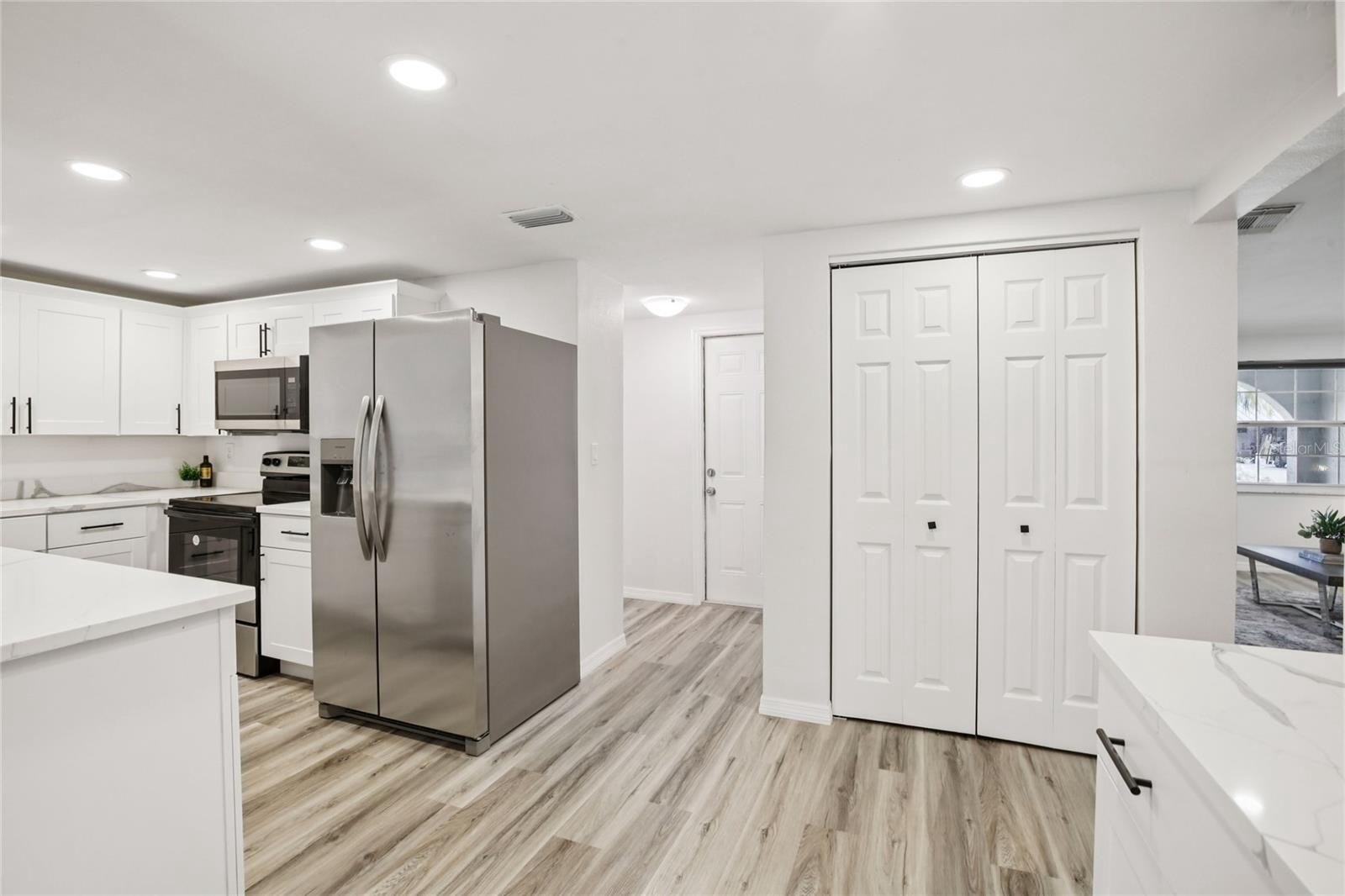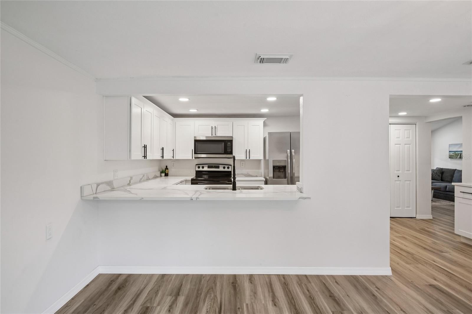 Welcome to your slice of paradise in the GOLF-CART friendly, WATERFRONT COMMUNITY of Gulf Harbors! This beautifully renovated 3-bedroom, 2-bathroom home offers 1,454 square feet of comfortable living. When you arrive, you’ll notice the lush tropical landscaping, archway details & gorgeous mosaic tile patio. Step inside and you’ll find a bright and airy OPEN LAYOUT with VAULTED CEILINGS, recessed lighting, NEW FLOORING, fresh paint, and stylish updates throughout. The kitchen is a standout with GORGEOUS QUARTZ COUNTERTOPS, stainless steel appliances and plenty of cabinetry and countertop space, perfect for entertaining or a quiet night in. The spacious primary bedroom abounds in natural light, and the additional two bedrooms are perfect for guests or a home office. All bedrooms are outfitted with Levolor light blocking window shades. Both bathrooms have been tastefully redone with MODERN FIXTURES and TIMELESS TILEWORK. Out back, enjoy your fully fenced, lush yard with paver patio and NO REAR NEIGHBORS. All major systems have been recently updated giving you peace of mind: NEW ROOF (2023), NEW HVAC (2023), NEW ELECTRICAL PANEL (2023), NEW WATER HEATER (2023). The Gulf Harbors Civic Association hosts neighborhood events throughout the year - joining is optional for a low annual fee, which also gives you access to a community BOAT RAMP to enjoy the Gulf waters. You can also join the Gulf Harbors Beach Club for just $200/year for your very own PRIVATE BEACH – a rare perk that gives you a spot to relax by the water, grill your fresh catch of the day and watch the sunset. This is more than just a home, it's the COASTAL LIFESTYLE you've always wanted.