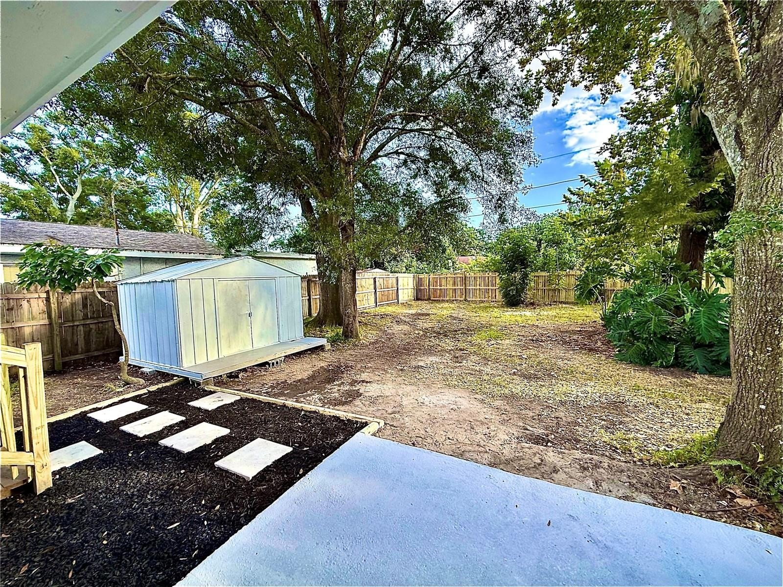 Enjoy Florida living at its best in the fully fenced backyard, complete with a storage shed and plenty of room for pets, gardening, or weekend gatherings.