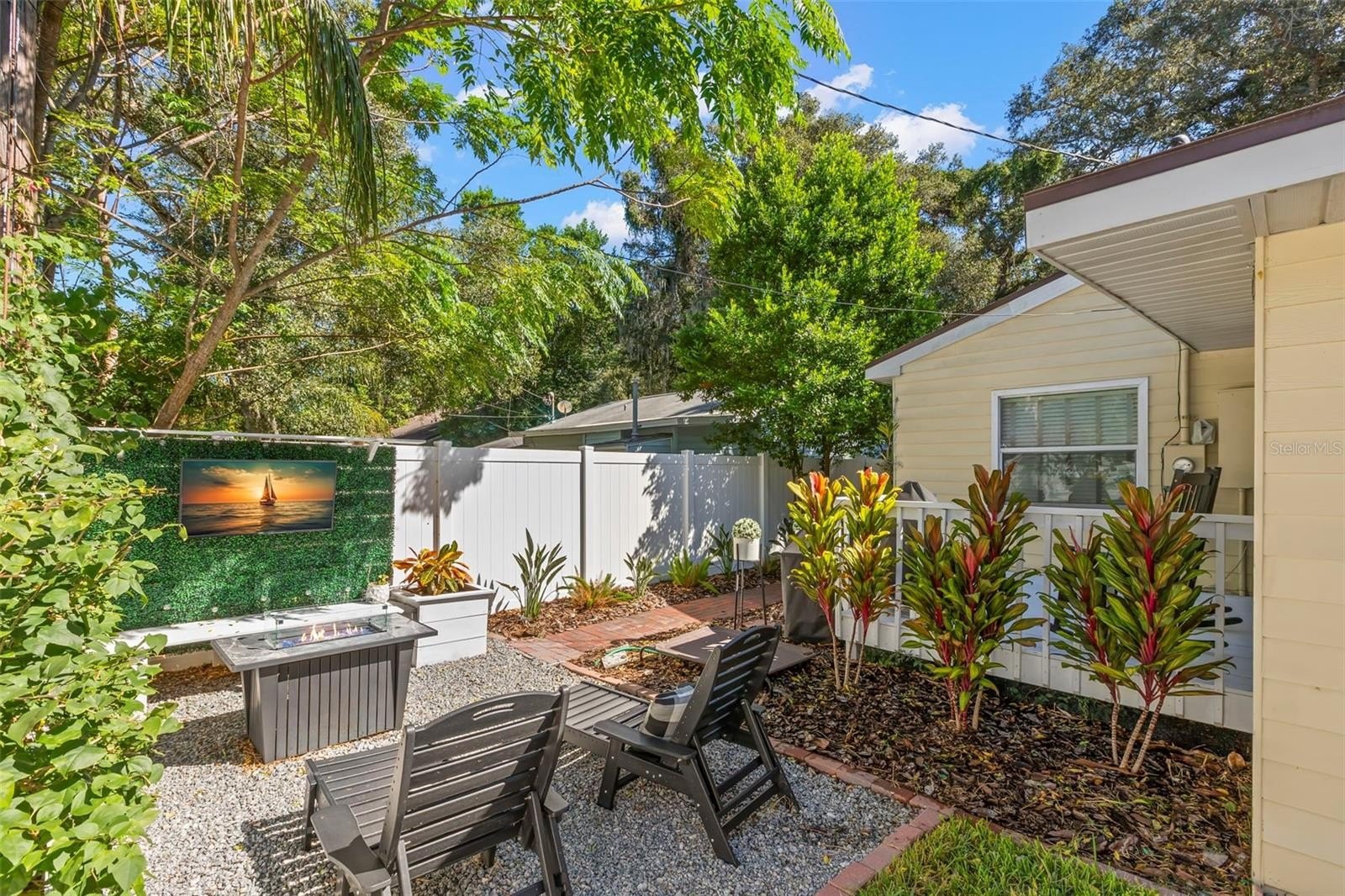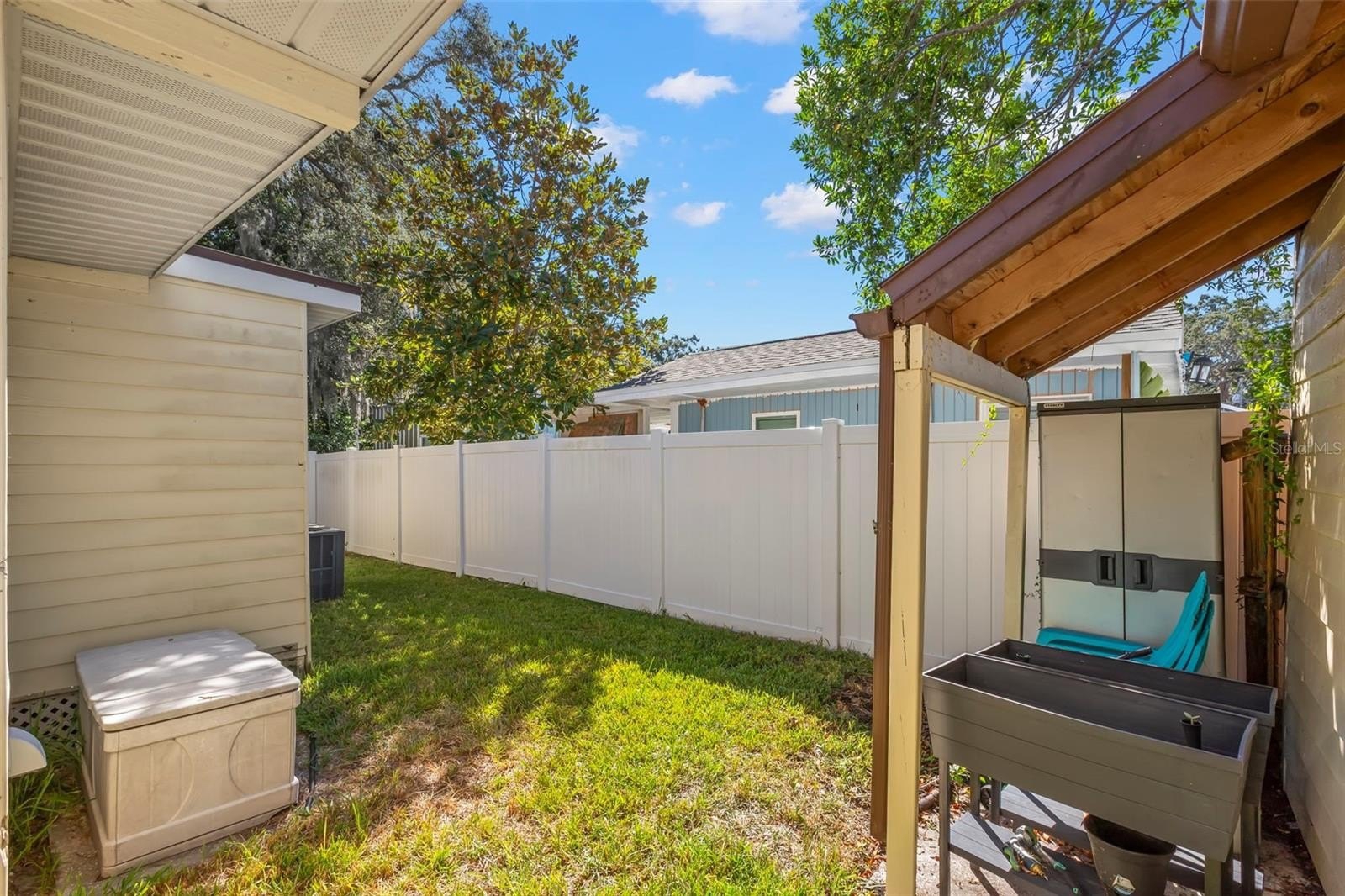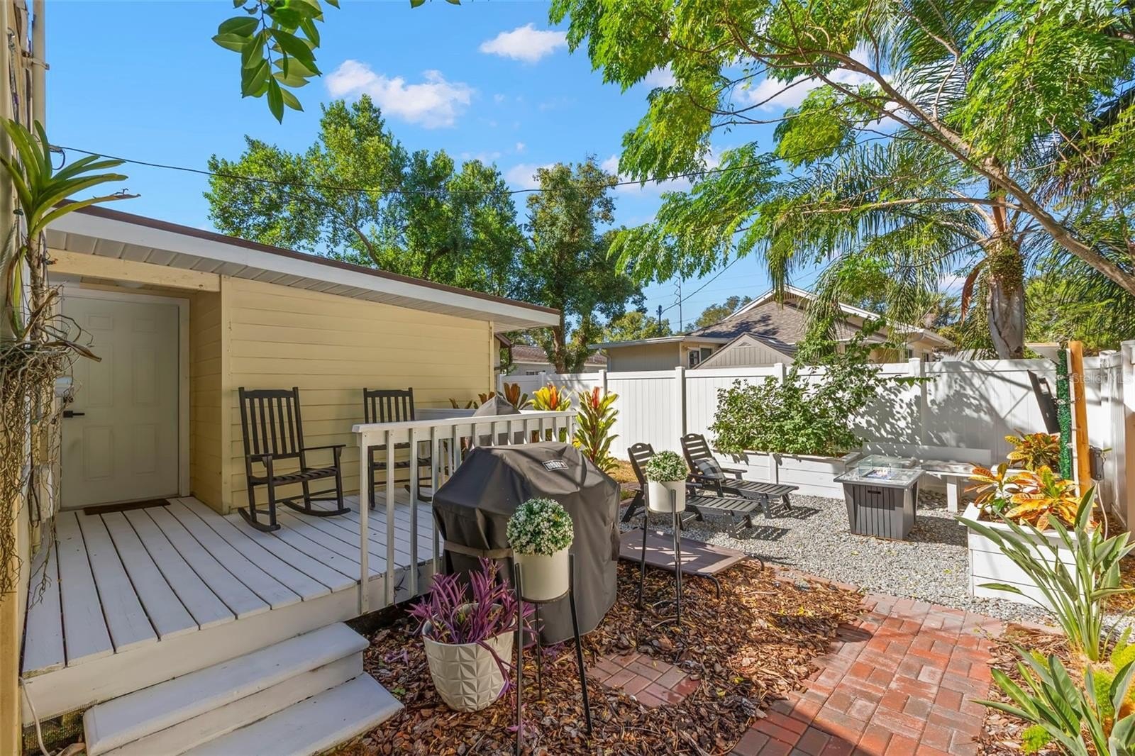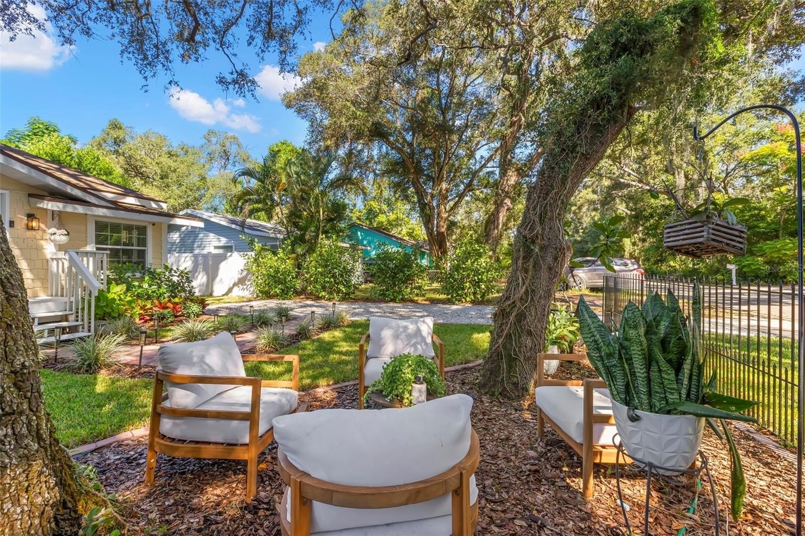 NO HOA AND NON-FLOOD ZONE! HUGE STORAGE SHED INCLUDED! LOCATED ONE BLOCK FROM DUNEDIN and only 5 MINUTES TO VIBRANT DOWNTOWN DUNEDIN, this FULLY UPGRADED 3-bedroom / 2-bath 1930's BUNGALOW perfectly blends HISTORIC CHARM with modern comforts. Tucked quietly at the end of the street, this home’s curb appeal shines with a BRICK PAVERED WALKWAY accented by landscape lighting, and a spacious front yard with classic wrought-iron fence separating the front yard from the street. Mature shade trees with vines create a storybook setting with room for outdoor seating and even a tree swing. A welcoming front porch and decorative glass front door set the tone. Inside, an inviting OPEN FLOOR PLAN filled with warmth and character showcases gorgeous TEXTURED WIDE-PLANK LAMINATE WOOD FLOORING throughout the main living areas. Timeless WOOD-TRIMMED WINDOW CASINGS on all windows add character and window blinds are installed throughout. The UPGRADED EAT-IN KITCHEN features MULTI-LEVEL WOOD CABINETRY, STAINLESS STEEL APPLIANCES and a pantry. The primary bedroom suite includes a BUILT-IN CLOSET SYSTEM with drawers and shelves and a modern EN SUITE BATH with a tiled step-in shower. Two additional bedrooms share a beautifully updated full bath with DECORATIVE WAINSCOTING, a tub/shower combo, and linen storage. The 3rd bedroom stands out with CROWN MOLDING, WAINSCOTING and a COZY WINDOW BENCH making the perfect reading nook! EVERY CLOSET THROUGHOUT THE HOME HAS BEEN THOUGHTFULLY CUSTOMIZED WITH BUILT-IN SHELVING for maximum organization. The OVERSIZED INTERIOR LAUNDRY ROOM offers extra space that can EASILY DOUBLE AS AN OFFICE/DEN, extra storage or additional closet. Step outside to a VINYL FENCED PRIVATE BACKYARD OASIS partially XERISCAPED with LUSH LANDSCAPING, BRICK PAVERED WALKWAYS, wooden benches, planters, and a huge detached storage shed with tall ceilings — perfect for bikes, tools, hobbies, or recreational gear. ADDITIONAL UPGRADES INCLUDE: NEW VINYL FENCE (2024), NEWER DOUBLE PANE WINDOWS, NEWER HVAC & ALL NEW DUCTWORK (2020), NEW TANKLESS WATER HEATER, NEW STAINLESS DISHWASHER & FRIDGE (2023), CUSTOM BUILT SHELVES IN GUEST BEDROOM CLOSETS, LINEN CLOSETS AND PANTRY, NEW SUBFLOOR IN PRIMARY SUITE, NEW TOILETS IN BATHROOMS, RESEALED TUB IN GUEST BATH, SIX-PANEL INTERIOR DOORS THROUGHOUT, RECESSED LIGHTING, WINDOW BLINDS THROUGHOUT, NEW PLUSH CARPETS IN BEDROOMS, NEW TILE FLOOR IN LAUNDRY ROOM and ROOF ONLY 6 YEARS OLD (2019)! TRANSFERRABLE TERMITE BOND WITH TERMINIX INCLUDED! Enjoy the Florida lifestyle JUST A COUPLE MINUTES FROM THE PINELLAS TRAIL and the WATERFRONT EDGEWATER DRIVE for DOLPHIN WATCHING and BREATHTAKING SUNSETS! 5 MINUTES TO DOWNTOWN DUNEDIN to enjoy SHOPS, RESTAURANTS and EVENTS! 15 MINUTES TO THE BEAUTIFUL GULF BEACHES OF HONEYMOON ISLAND AND CLEARWATER BEACH! This home checks every box — location, charm, upgrades, and outdoor living — all wrapped in the heart of Dunedin’s coastal community. Welcome home!