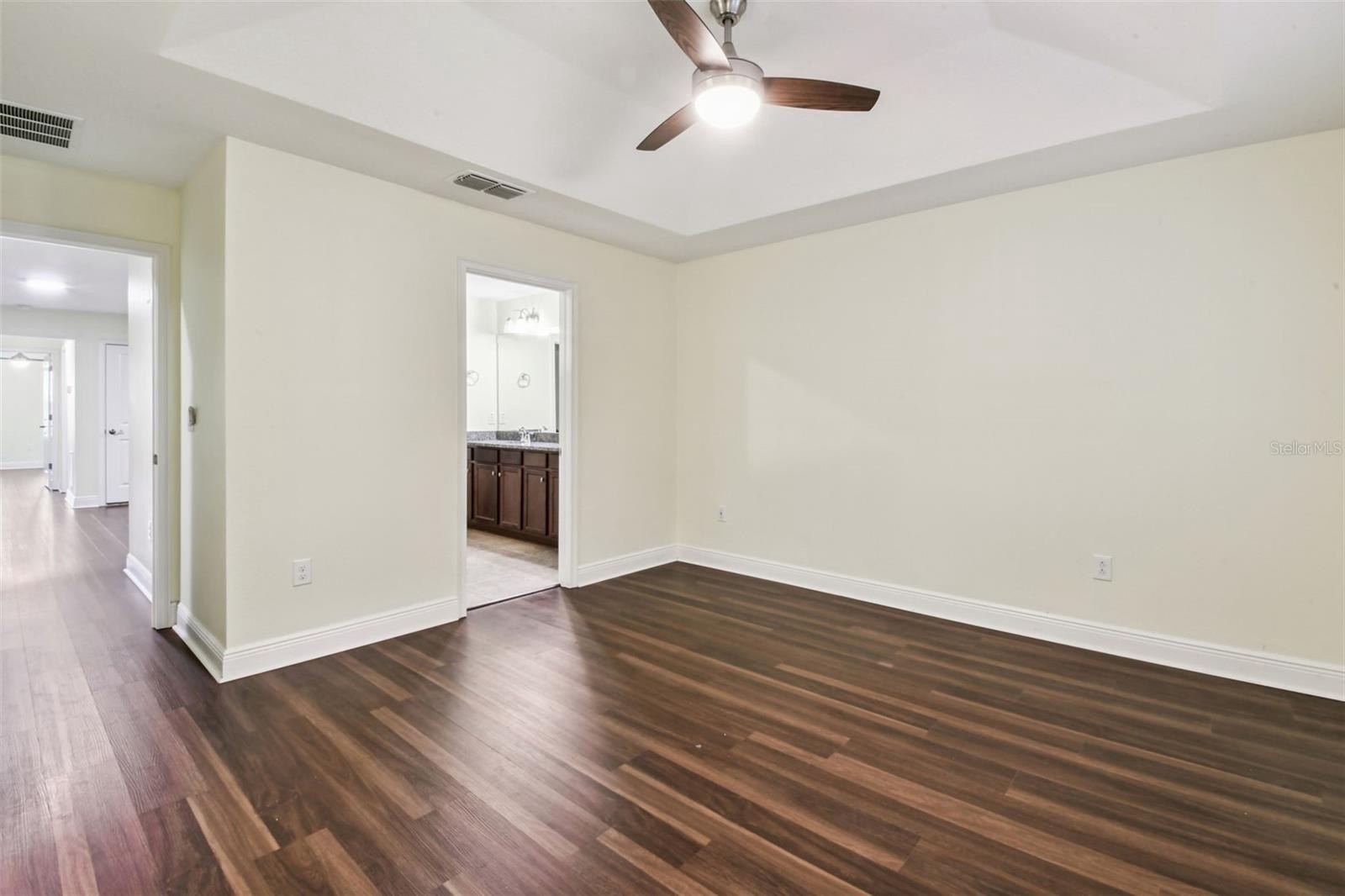 Welcome to your dream home where comfort, style, and convenience meet! This 3-bedroom, 2.5-bath townhome features an open-concept layout with a modern kitchen showcasing granite countertops, tile backsplash, stainless steel appliances, and an island. The spacious living area opens to an enclosed patio with serene views. Upstairs offers a loft, laundry room, and a private primary suite with tray ceiling, dual walk-in closets plus an extra third, and a luxurious bath with dual vanities and glass shower. Laminate flooring throughout the second floor—no carpet! Enjoy maintenance-free living and a sparkling community pool just steps away. Conveniently located near the Veterans Expressway, shopping, dining, and top-rated schools in Lutz. East Facing.