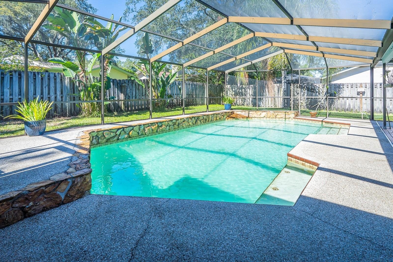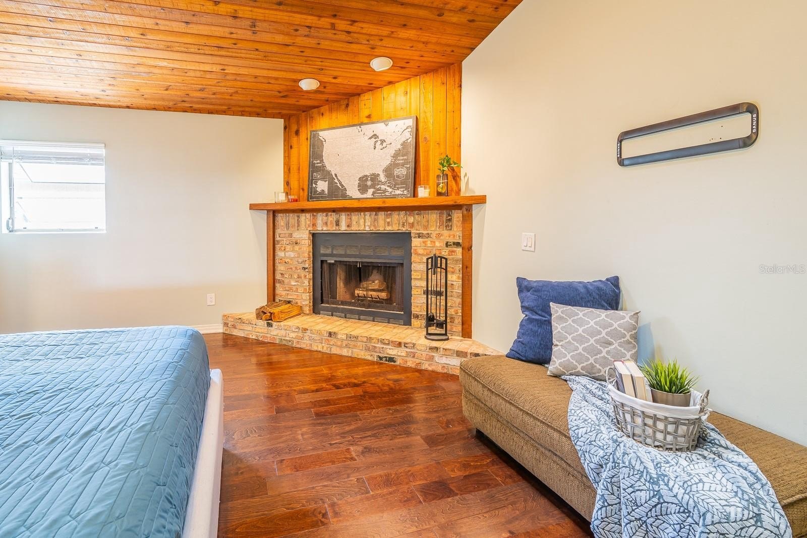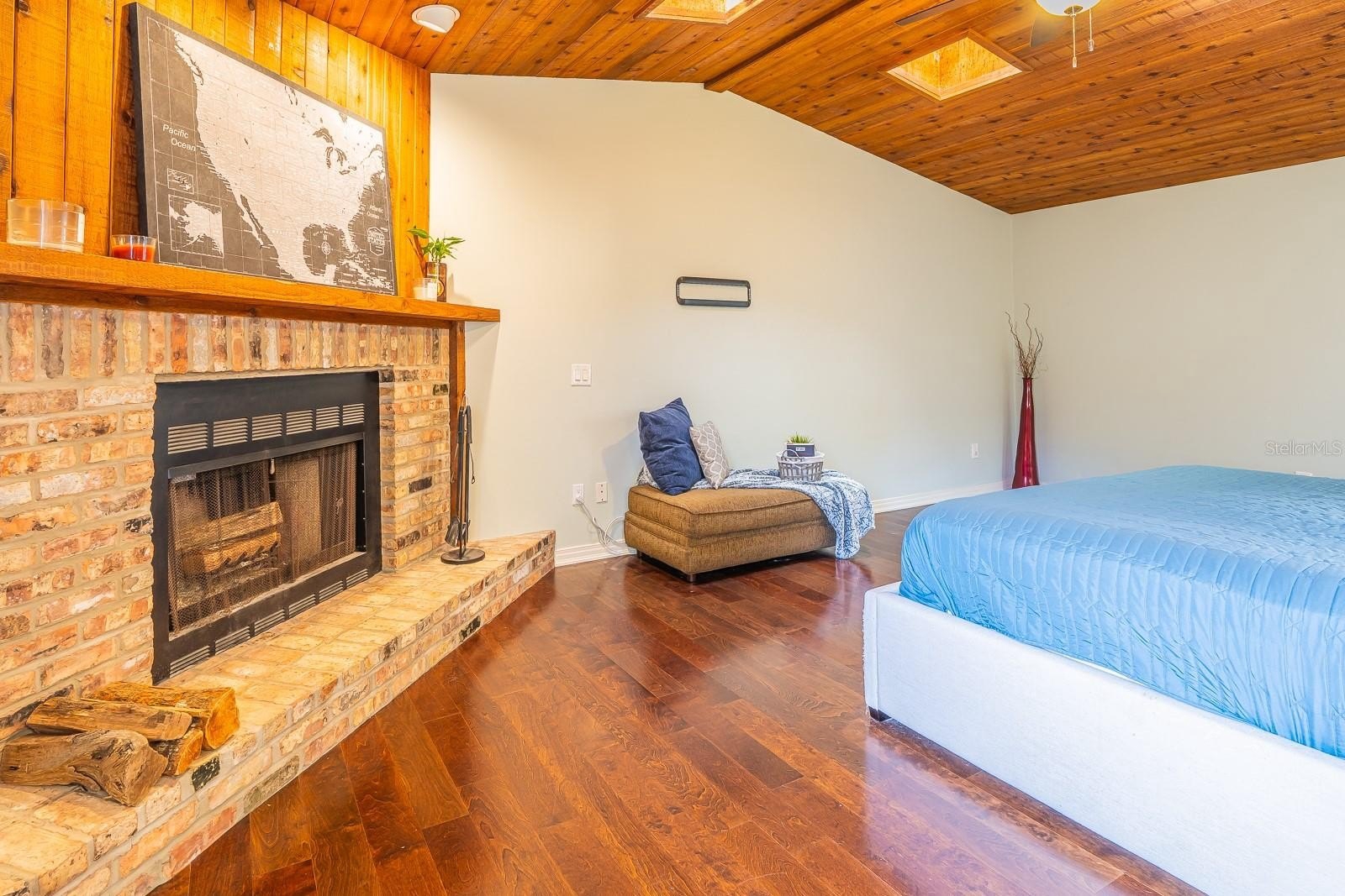 Welcome to Northwood Estates, one of Clearwater’s most established and sought-after communities, where timeless architecture meets relaxed Florida living. Recently painted on the exterior, this beautifully maintained two-story home blends warmth, light, and character in every detail. Inside, you’ll find soaring cedar-vaulted ceilings, rich hardwood floors, and expansive windows that flood the home with natural light. The open, airy layout offers defined yet connected spaces, including a grand family room framed by a dramatic sky window that seems to bring the outdoors in, creating a peaceful and welcoming atmosphere. The chef-inspired kitchen combines style and function with granite countertops, stainless steel appliances, a glass-tile backsplash, and a beamed ceiling crowned with elegant molding. A formal dining room and dedicated office provide ideal spaces for both connection and productivity. The primary suite is a true sanctuary, featuring a stunning wood-burning fireplace, a large walk-in closet, and a spa-like bathroom with dual sinks, a makeup vanity, and a walk-in shower. Upstairs, two additional bedrooms and a spacious guest bath offer comfort and privacy, while the open hallway overlooks the family room below, enhancing the sense of light and openness. Step outside to your private backyard oasis with a covered patio, screened lanai, sparkling pool, and lush green space perfect for entertaining or relaxing. Additional highlights include A/C (2023), architectural roof (2015), newer pool pump, fresh exterior paint, and an oversized two-car garage with ample storage.