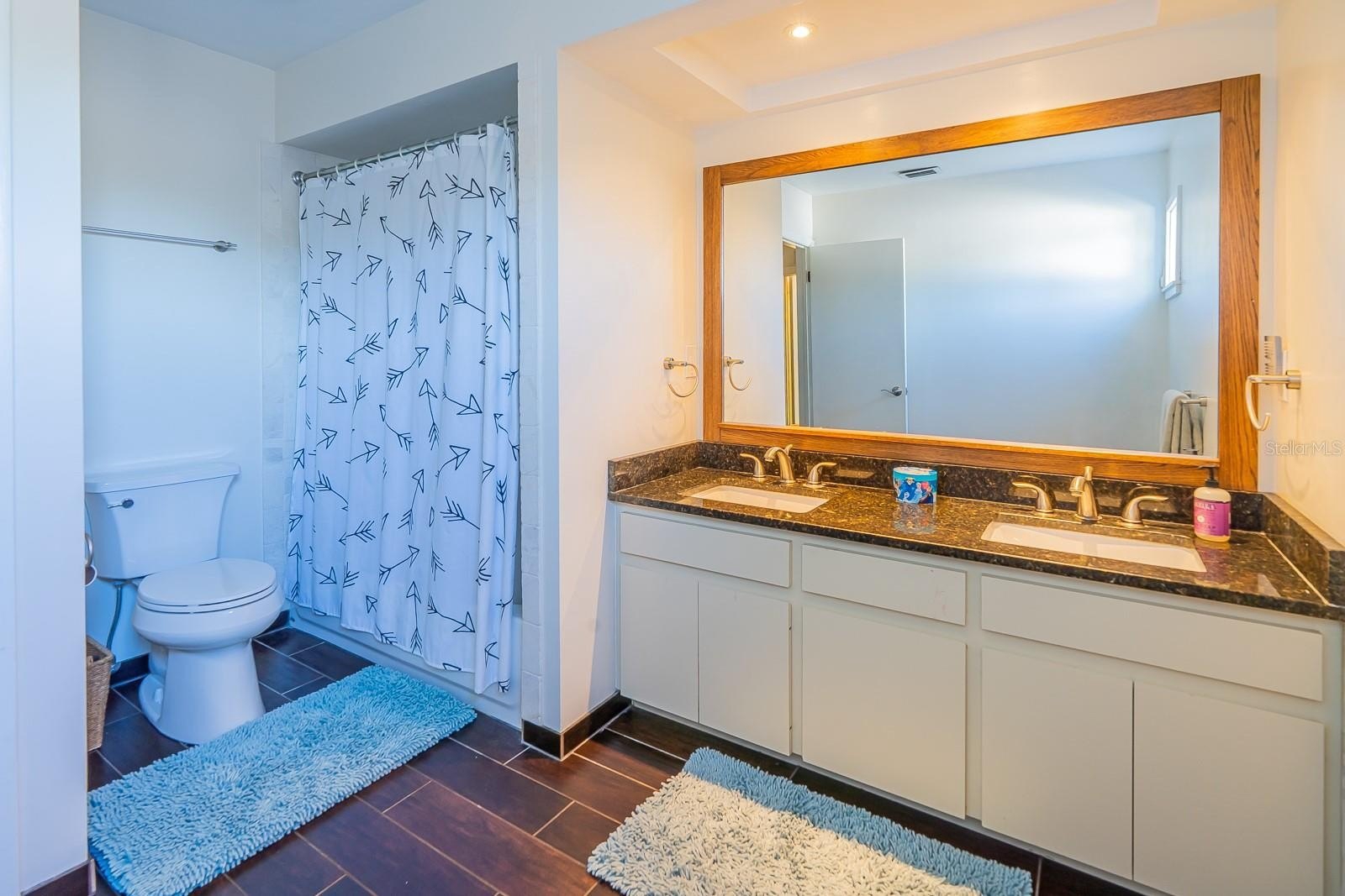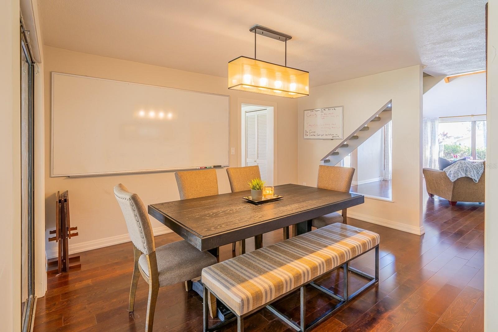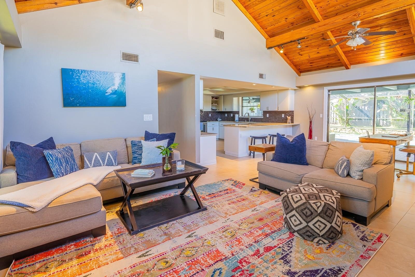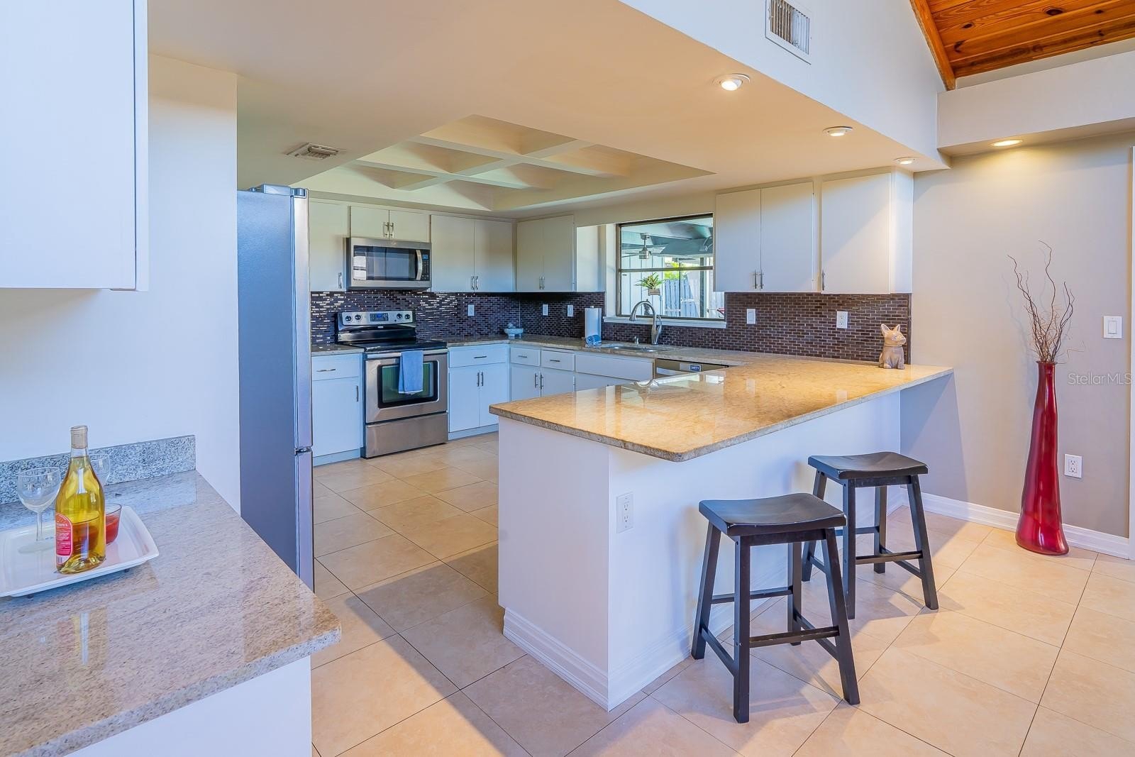 Welcome to Northwood Estates, one of Clearwater’s most established and sought-after communities, where timeless architecture meets relaxed Florida living. Recently painted on the exterior, this beautifully maintained two-story home blends warmth, light, and character in every detail. Inside, you’ll find soaring cedar-vaulted ceilings, rich hardwood floors, and expansive windows that flood the home with natural light. The open, airy layout offers defined yet connected spaces, including a grand family room framed by a dramatic sky window that seems to bring the outdoors in, creating a peaceful and welcoming atmosphere. The chef-inspired kitchen combines style and function with granite countertops, stainless steel appliances, a glass-tile backsplash, and a beamed ceiling crowned with elegant molding. A formal dining room and dedicated office provide ideal spaces for both connection and productivity. The primary suite is a true sanctuary, featuring a stunning wood-burning fireplace, a large walk-in closet, and a spa-like bathroom with dual sinks, a makeup vanity, and a walk-in shower. Upstairs, two additional bedrooms and a spacious guest bath offer comfort and privacy, while the open hallway overlooks the family room below, enhancing the sense of light and openness. Step outside to your private backyard oasis with a covered patio, screened lanai, sparkling pool, and lush green space perfect for entertaining or relaxing. Additional highlights include A/C (2023), architectural roof (2015), newer pool pump, fresh exterior paint, and an oversized two-car garage with ample storage.