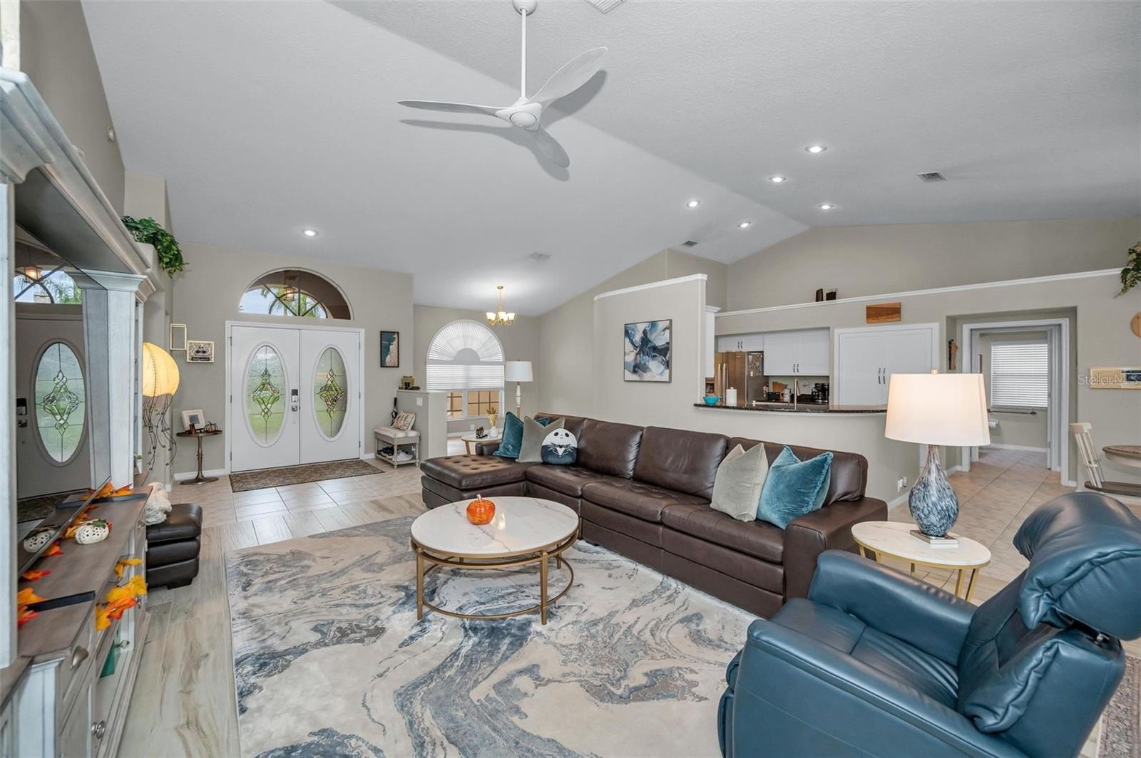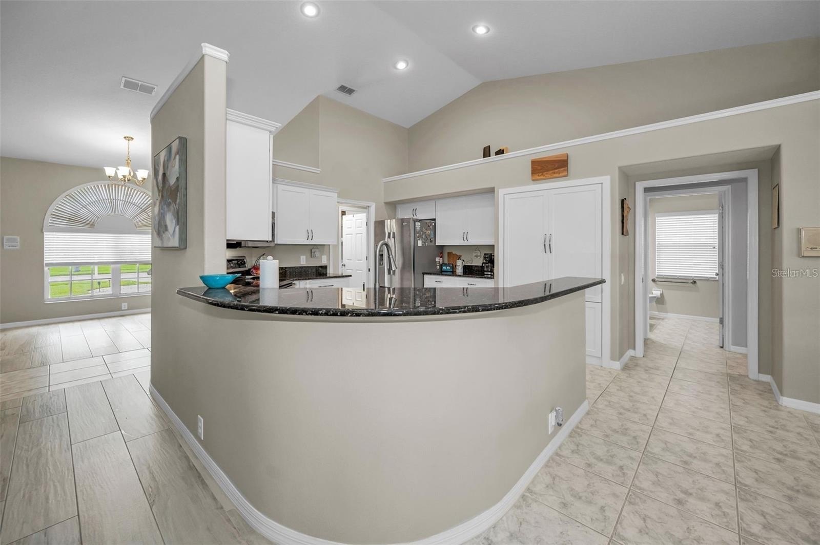 Welcome to this stunning 3-bedroom, 2-bathroom pool home perfectly situated on a peaceful dry pond. Step inside to find a spacious open floor plan with all ceramic tile flooring—no carpet throughout! The updated kitchen features stainless steel appliances, ample cabinetry, and a modern design ideal for everyday living or entertaining.