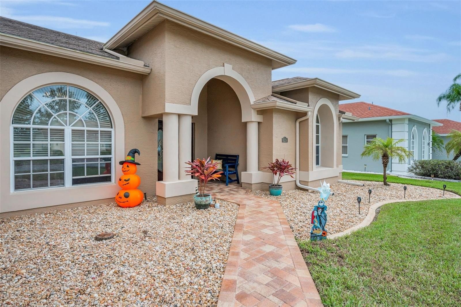 Enjoy a warm welcome each day from the charming front porch and inviting entryway, creating the perfect first impression. Outside, unwind in your sparkling pool and on the expansive paver pool deck, ideal for lounging or hosting gatherings. The oversized paver driveway provides plenty of parking and curb appeal.
