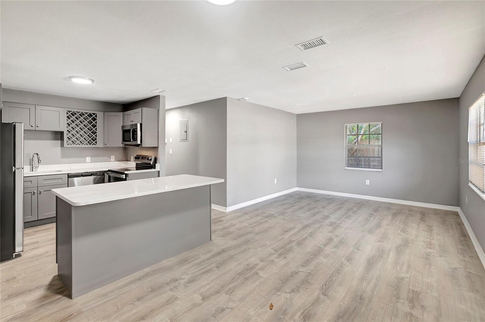 TASTEFULLY UPDATED DREAM HOME! Open floor plan, many NEW updates!! New Roof and AC in 2025! THIS HOME IS TURNKEY, MOVE IN READY!!!! Fresh Paint inside and out!! The cook in your house will appreciate the large kitchen featuring a brand new Stainless Steel appliance package, and all wood cabinets with custom Quartz countertops. The open floor plan makes this home great for entertaining. New life lock waterproof laminate, and Ceramic Tile flooring through out. New carpet in the bedrooms! Bathrooms have been updated with new vanities, updated lighting and plumbing fixtures as well as custom tile shower surround. New water heater in 2025! Great curb appeal and beautiful interior make this home move in ready! Large private lot makes this home perfect for entertaining. Low Taxes and No HOA make this an affordable option! This home has all you need for that laid-back Florida lifestyle.