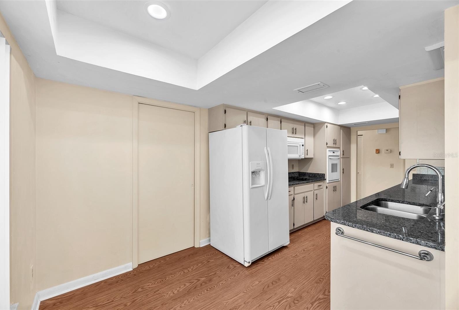 Step inside to find a bright, open layout with spacious living and dining areas that flow seamlessly into a weatherproof back porch—perfect for relaxing year-round or entertaining guests. The home also features storm shutters for added security and protection during Florida’s stormy seasons.
