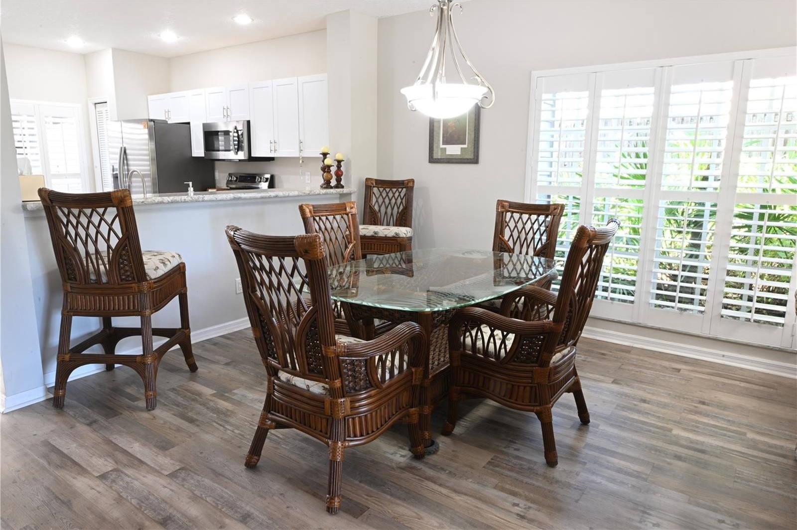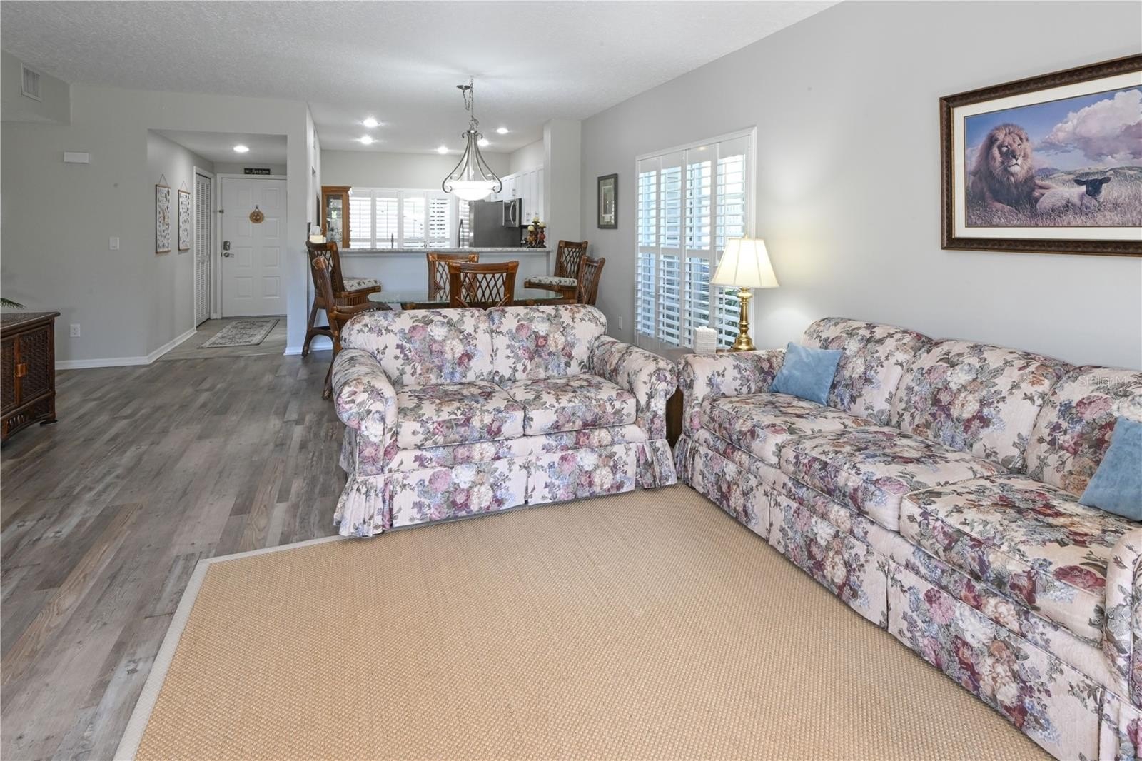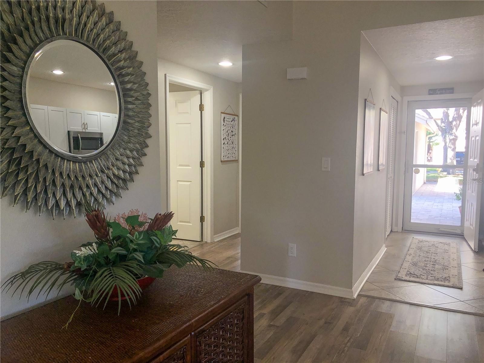 Beautifully Updated 2BR/2BA DOWNSTAIRS corner condo in Shipwatch! Welcome to Shipwatch, an upscale 56-acre gated community offering resort-style living along the Intracoastal Waterway. This sought-after end-unit residence has been beautifully updated throughout and features stylish finishes, abundant natural light, and a bright open floor plan. Step inside to find wood-look vinyl floors, plantation shutters on all windows, and solid countertops in then kitchen and baths. The kitchen shines with Shaker-style cabinetry, smudge-proof stainless-steel appliances, and updated sinks and fixtures in both bathrooms. All new plumbing fixtures and electric service. The ceramic tile shower with frameless glass door adds a touch of modern luxury. Enjoy your morning coffee or evening cocktail in one of the lovely outdoor spaces — the private courtyard, garden area, off the dining room, which overlooks the lush side yard. Additional features include: Large screened sunroom enclosed with patio doors. One-car garage with shelving. Extended driveway accommodating two extra cars. Larson storm door at entry for added comfort and security. Shipwatch offers exceptional amenities — two pools, two clubhouses, tennis and pickleball courts, nature trails, and two community day docks. Boat slips are available for rent or purchase. All of this just minutes from the Gulf beaches, local restaurants, and shops — your perfect coastal retreat awaits!